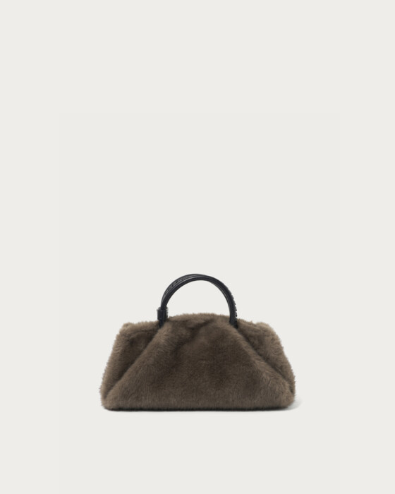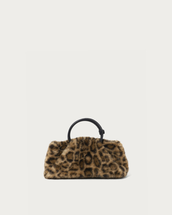 A square bag made with soft faux fur featuring longer fibers. While maintaining a sleek appearance, it also focuses on practicality with a wide gusset and a large opening. It comes with a detachable shoulder strap, allowing for convenient crossbody wear, offering a delightful 2-way option. Available in two colors: the trendy leopard print of the season and a versatile medium gray.