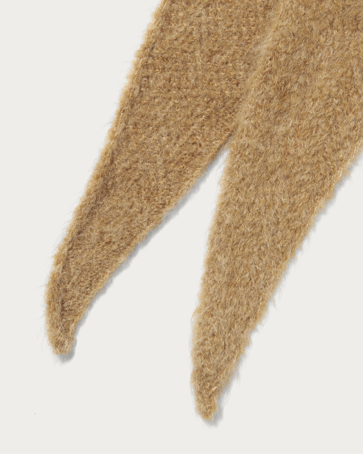 A knit scarf that instantly updates your usual outfit to a trendy look with just a simple addition. It's designed to be slightly compact so you can easily wear it indoors. We recommend pairing it with a jacket or a knit of the same color.