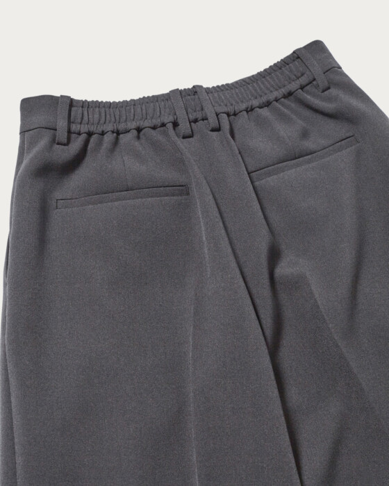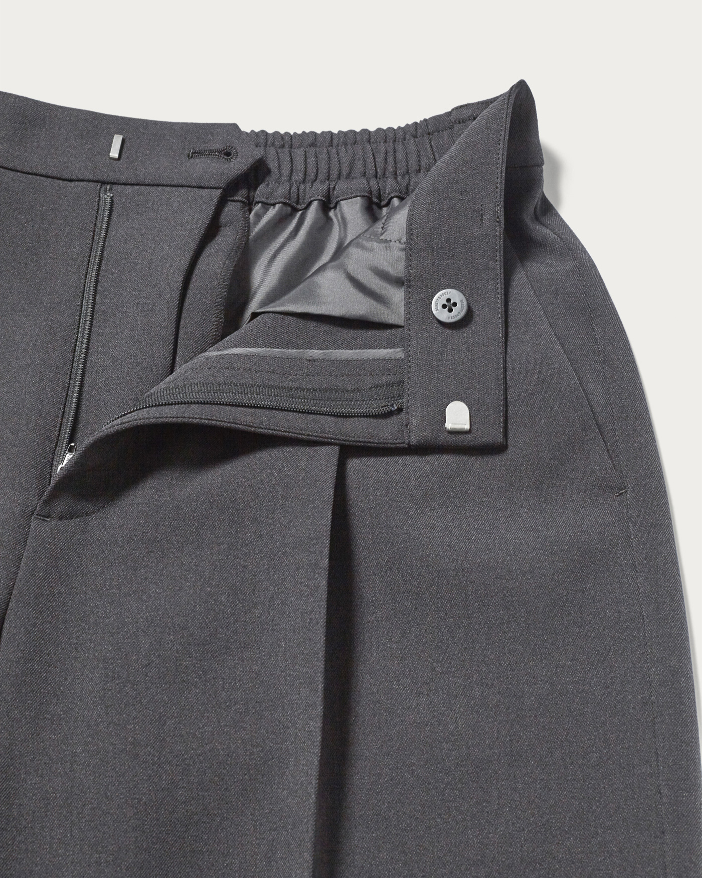 In the 25SS collection, the pants made from linen-like material have been updated this season to a clear, autumn-winter-like fabric using worsted-style polyester yarn. By twisting several types of yarn together, we have achieved a rich, deep color. With a blend of polyurethane, the material offers a plush feel and just the right amount of stretch, ensuring exceptional comfort.