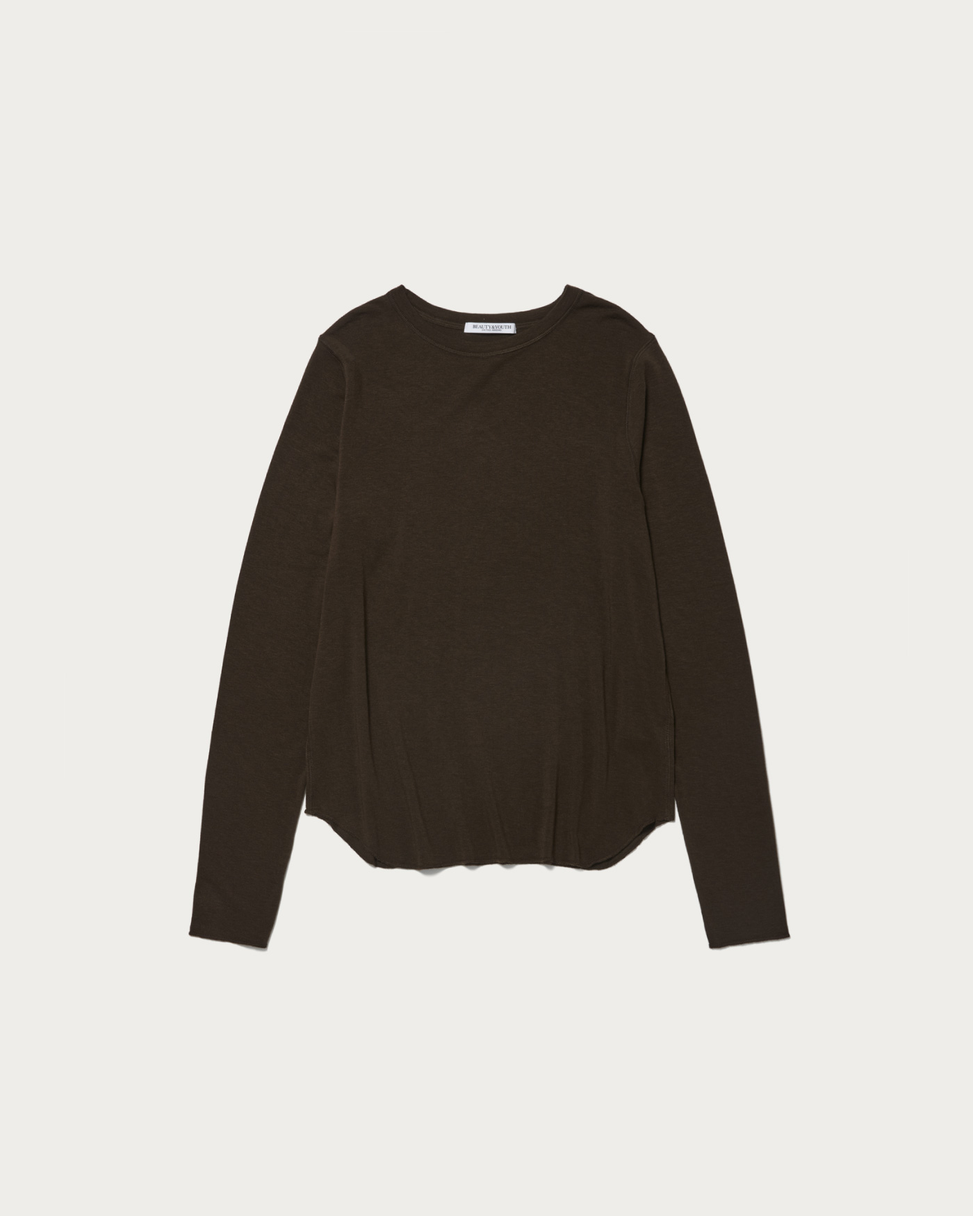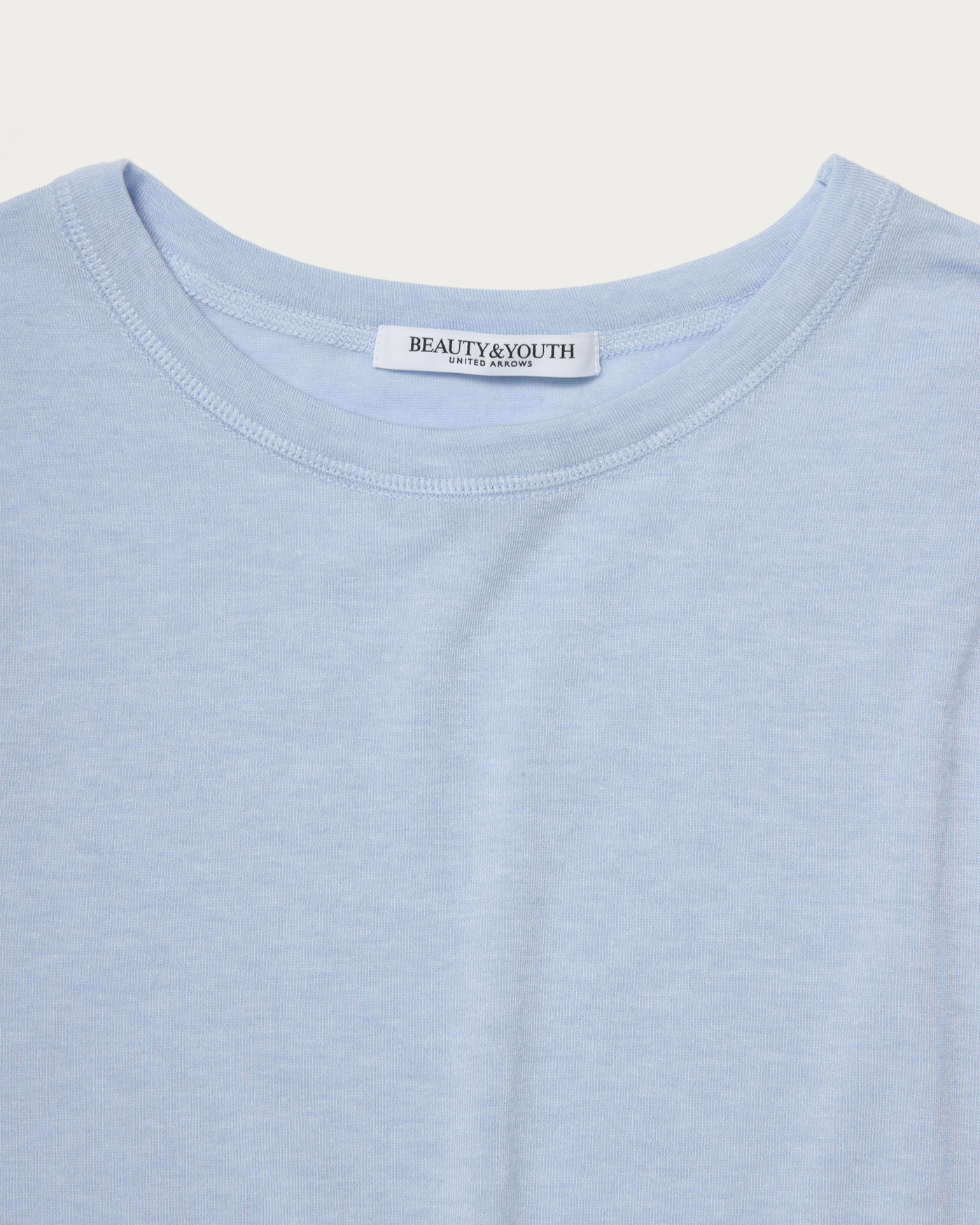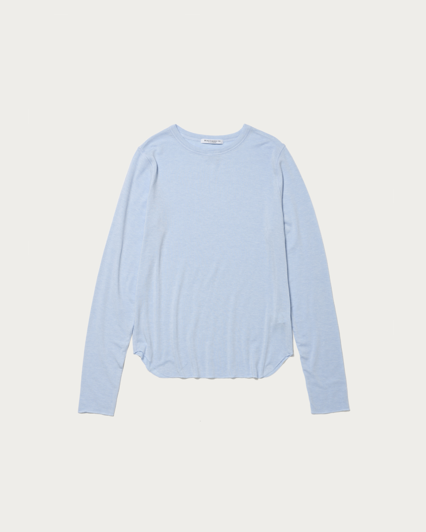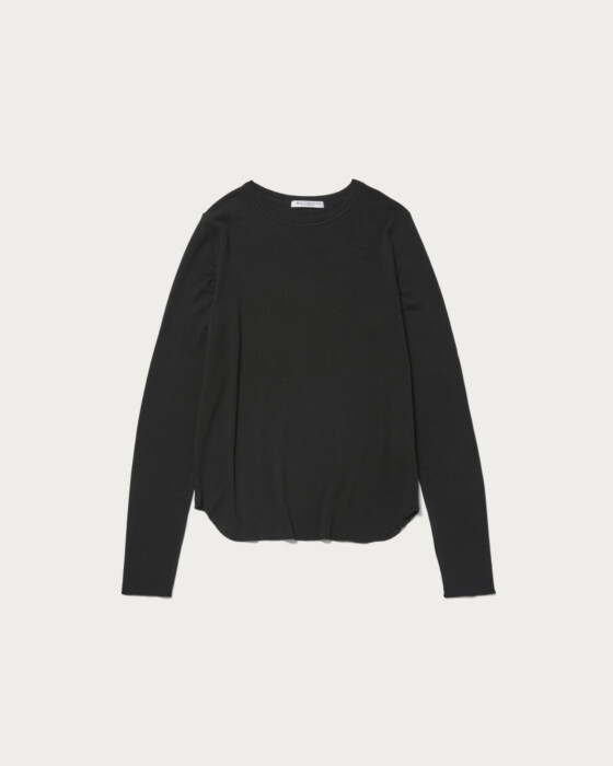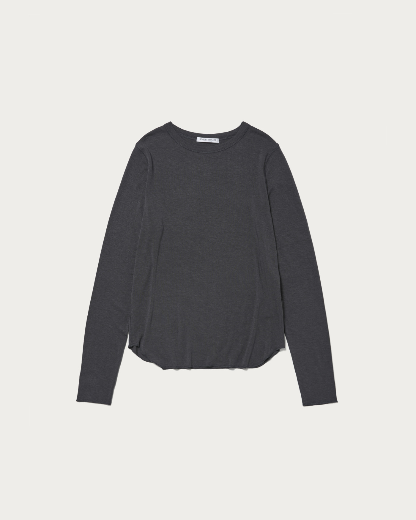 This cut-and-sew top is made from a lightweight cellulose blend material, offering a smooth and appealing texture. Its slightly oversized fit makes it perfect for layered styles. The subtle sheerness and round hem design enhance femininity and add a discreet presence to any outfit. Available in a wide range of nuanced colors that are easy to layer, it's recommended to wear two colors together, making it a must-have item in different shades. *Please note that the dark gray color is exclusive to our online store.