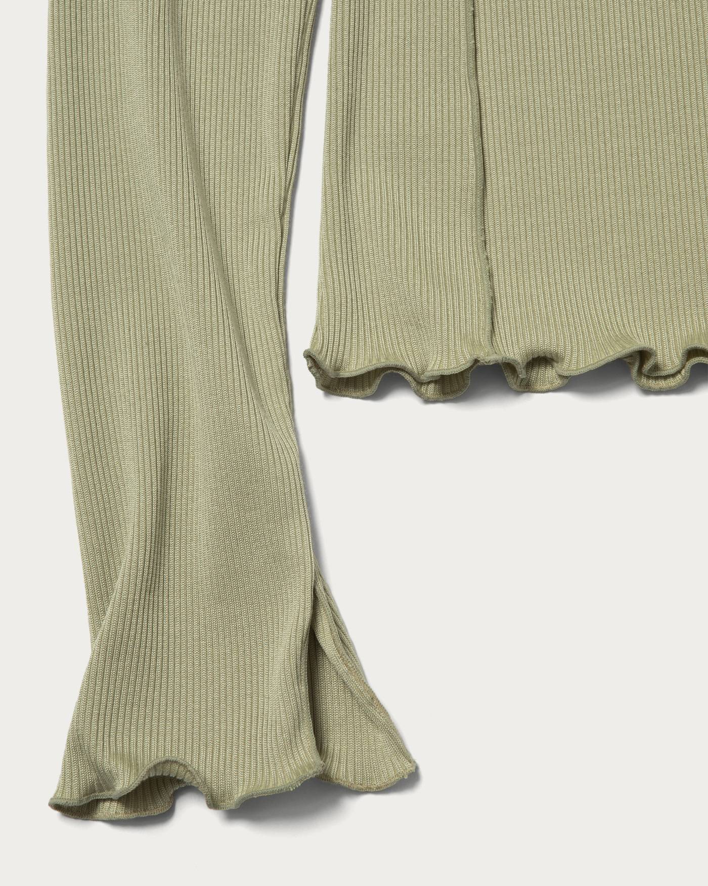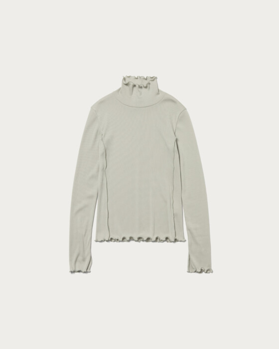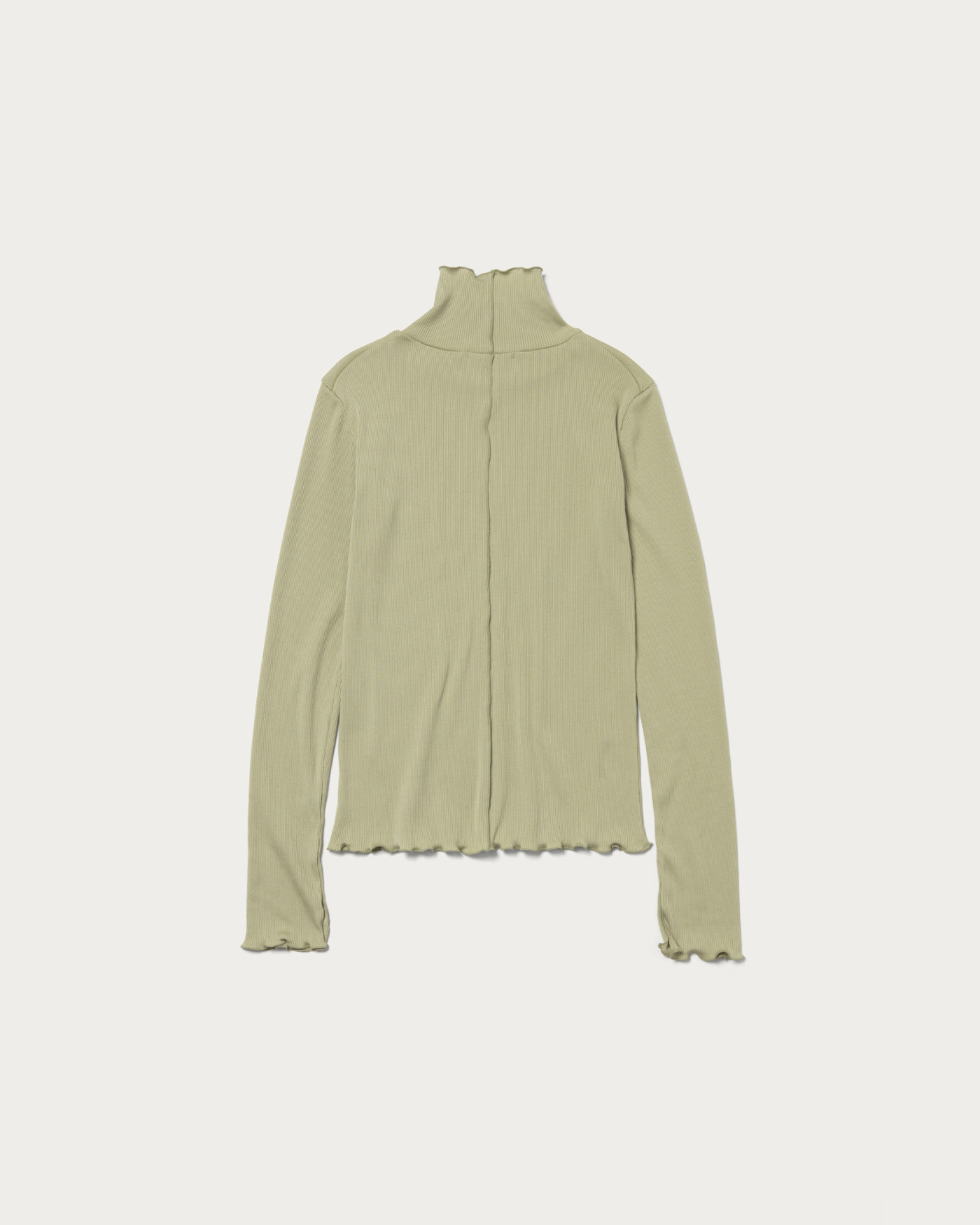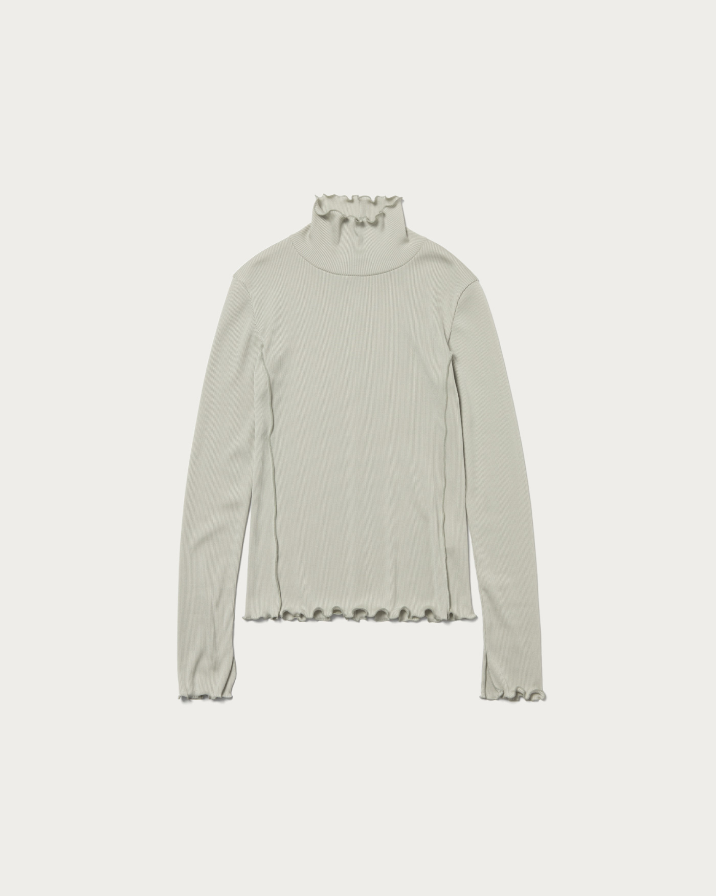 The slim-fit bodice is finished with tonal merrow stitching for a sophisticated look. The turtleneck and slightly longer sleeves make it a standout inner layer for fall and winter. The material is a bright plating ribbed knit with an elegant sheen, moderate thickness, and a smooth texture. It pairs perfectly with feminine outfits like dresses and jackets, as well as casual items like sweatshirts. This versatile piece works well in any setting or style, so consider getting it in multiple colors.