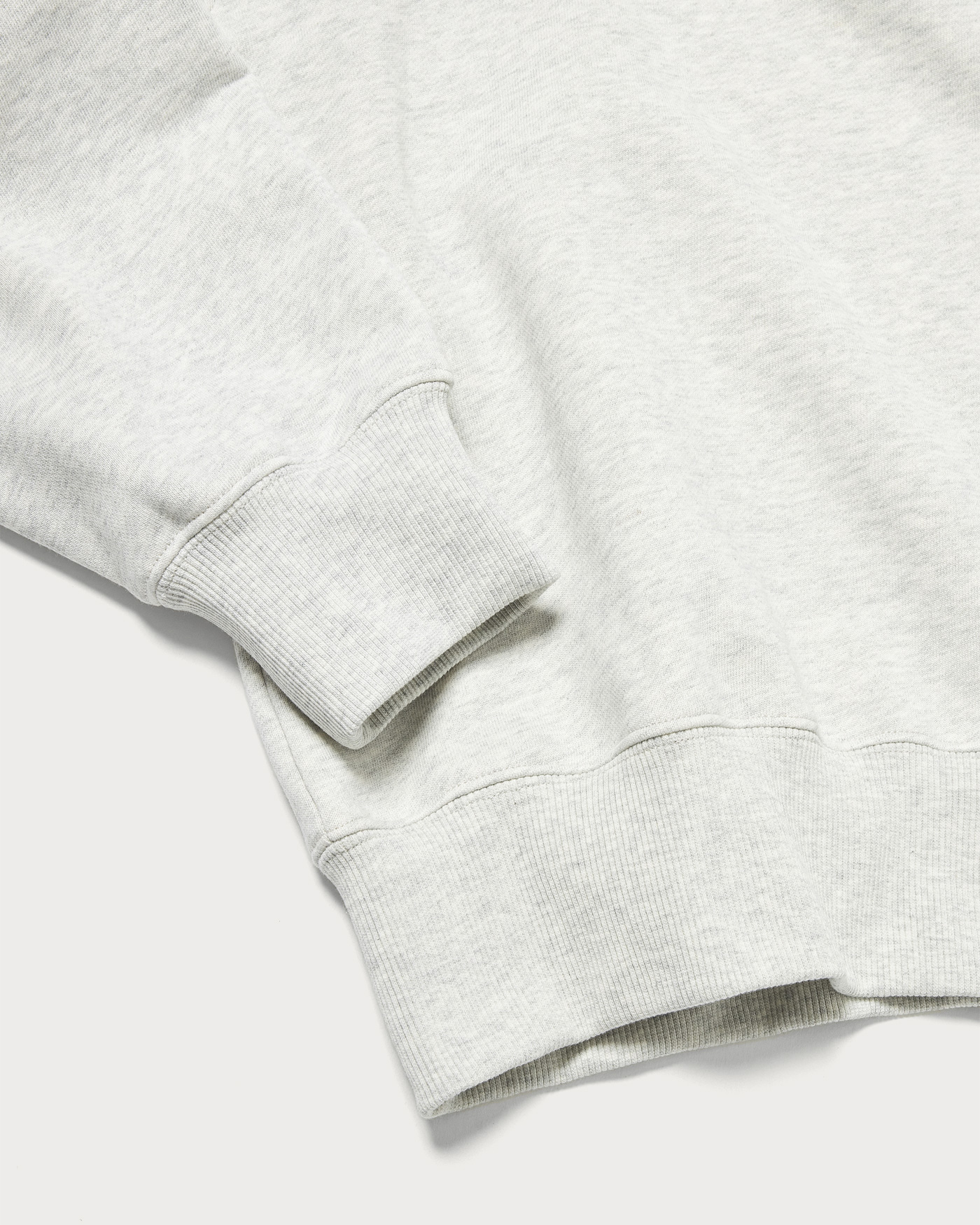 We have crafted a logo sweatshirt with a slightly narrower body and subtle embroidery, perfect for adults. It pairs well with smart slacks or items like half pants and boots. It's also recommended as an inner layer under outerwear. Enjoy an elegant casual style with this piece.