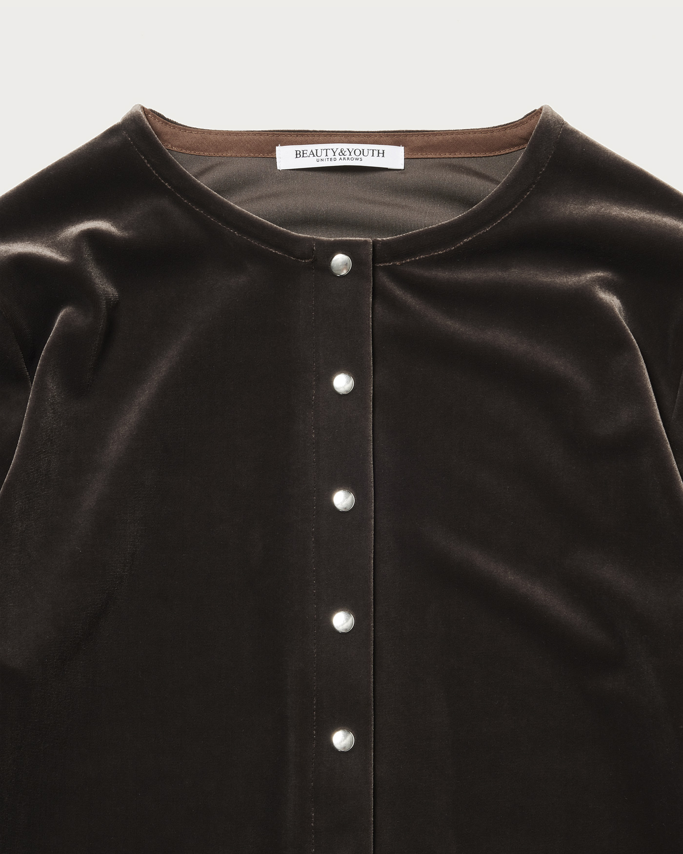 Continuing from last year, we have prepared cardigans made from trendy velour material. We've updated them to suit the current mood even better. We recommend pairing them with items like slacks or loose silhouette bottoms. This cute piece also makes a statement when used as an inner layer under a jacket.