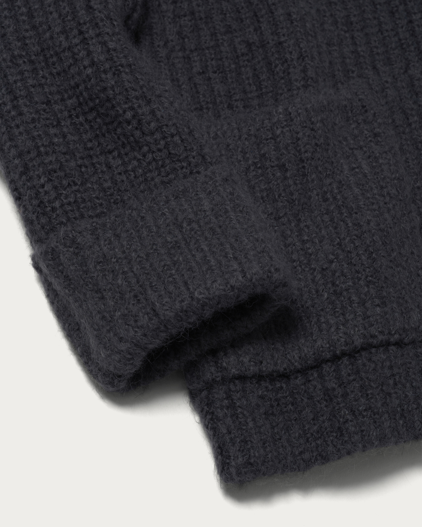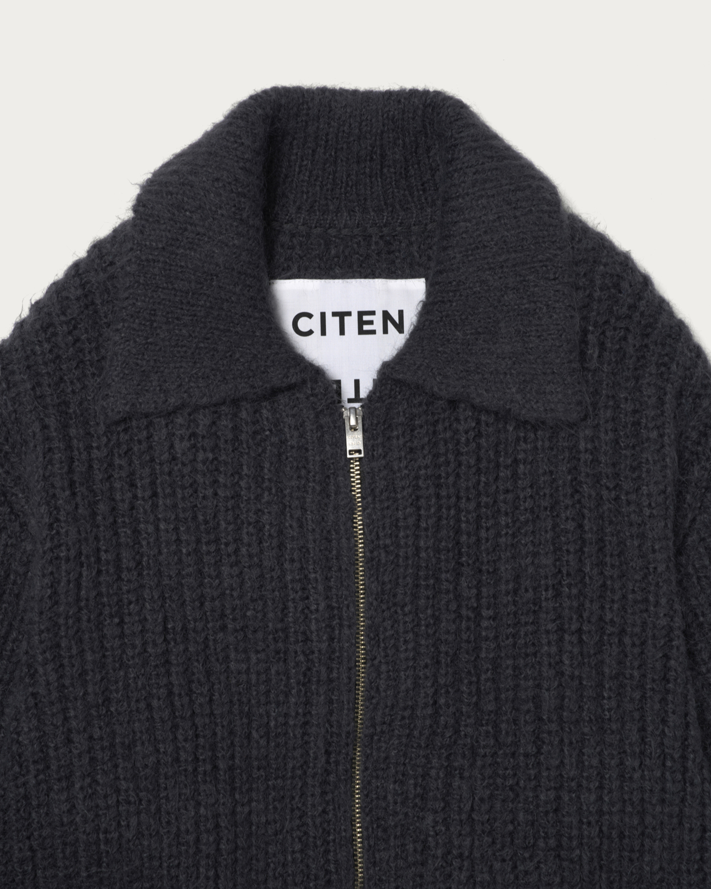 This item combines the casualness of a blouson with the elegance of knitwear, featuring a polo collar and zip design. With a relaxed silhouette, you can simply throw it over a shirt or T-shirt like a cardigan to complete your styling. The design elevates simple styling to a more sophisticated look, making it perfect as outerwear during seasonal transitions and as an inner layer under coats in winter. Enjoy its versatility throughout the fall and winter seasons.