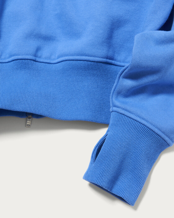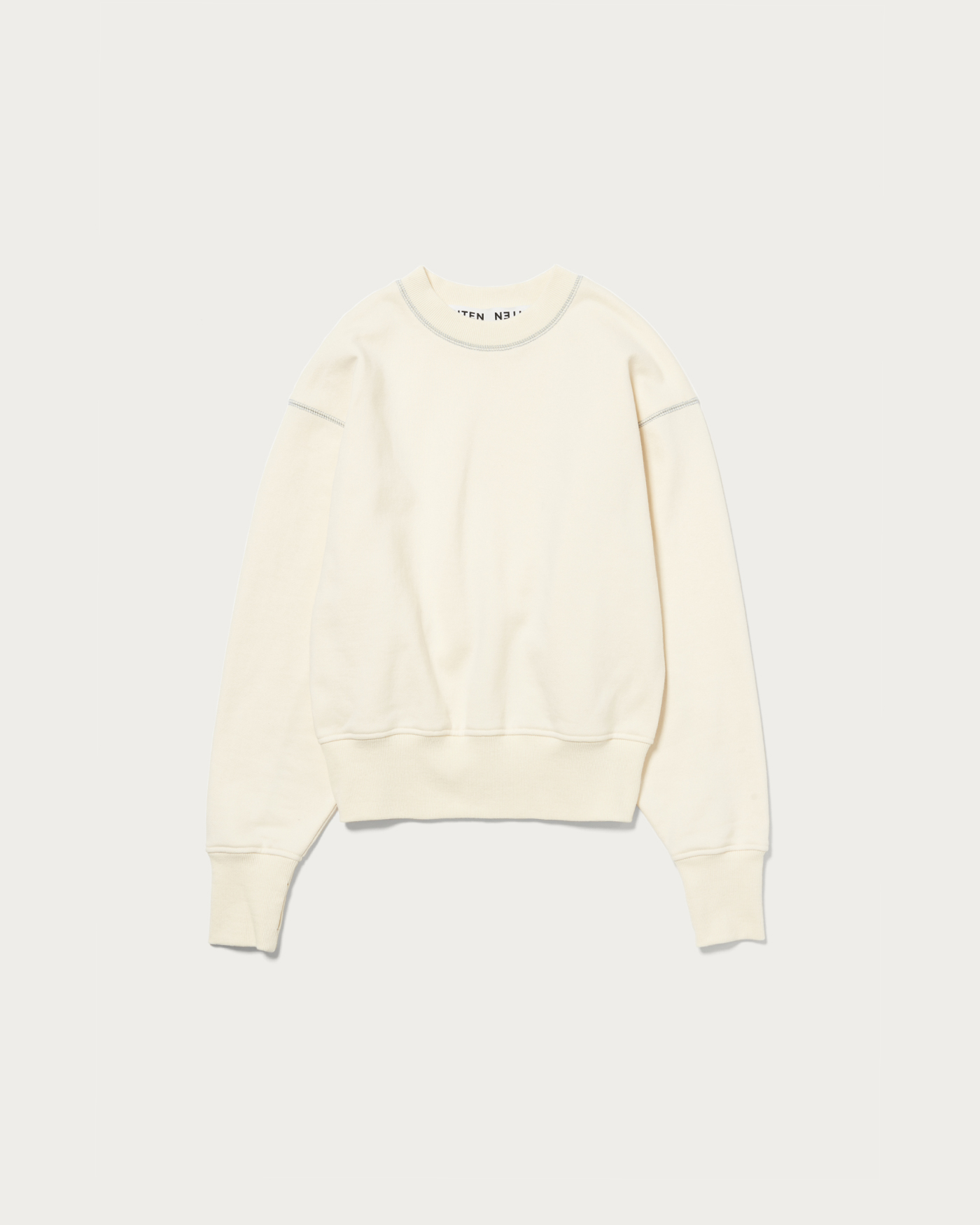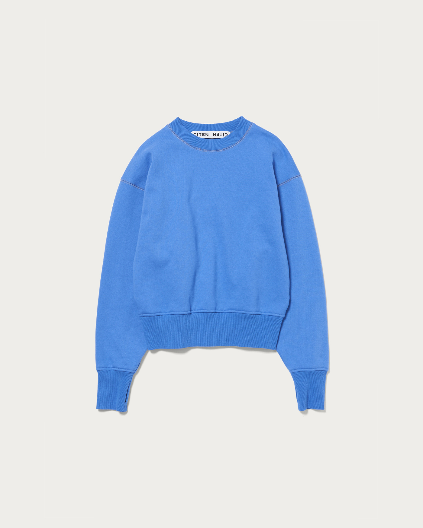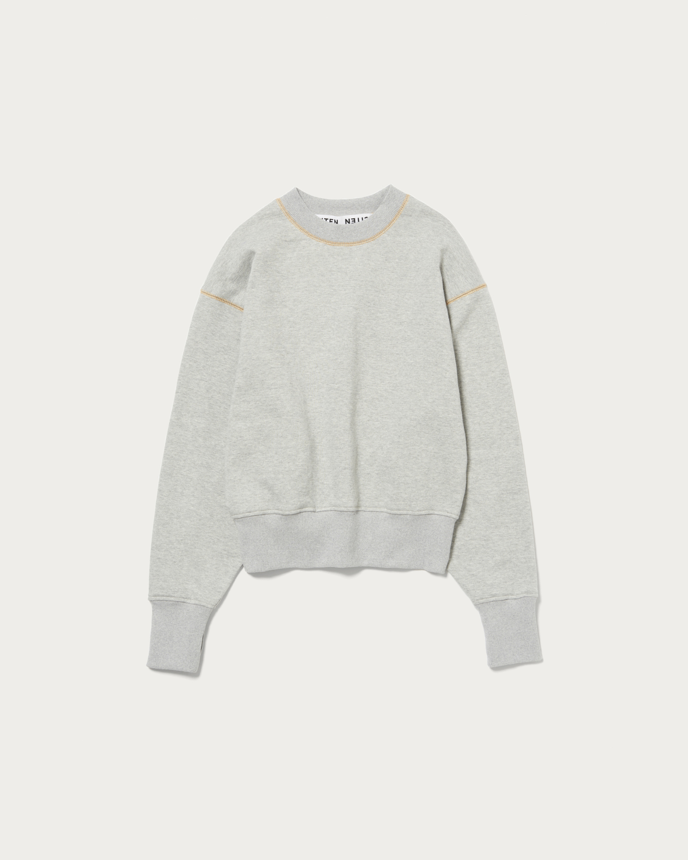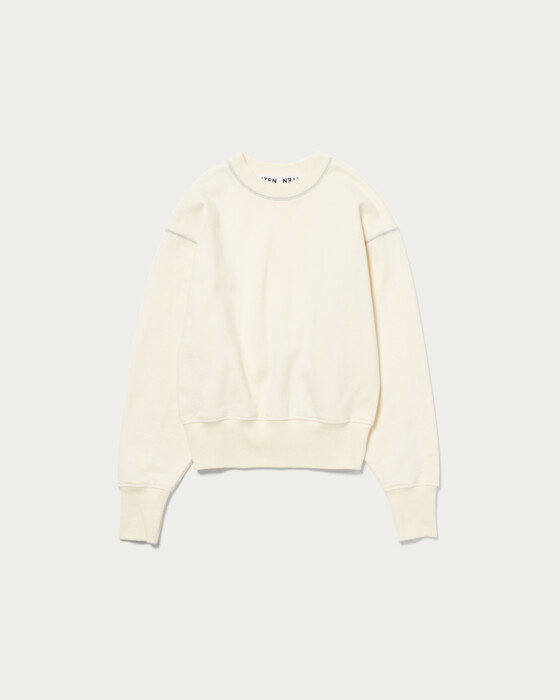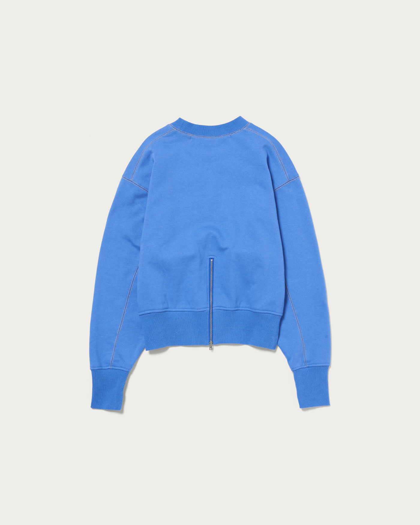 A piece with voluminous sleeves and color stitching as accents. The zipper at the back hem allows you to change the silhouette, adding a playful touch to the sleek front and back style. It's convenient for daily wear and offers a versatile design that expands your styling options.