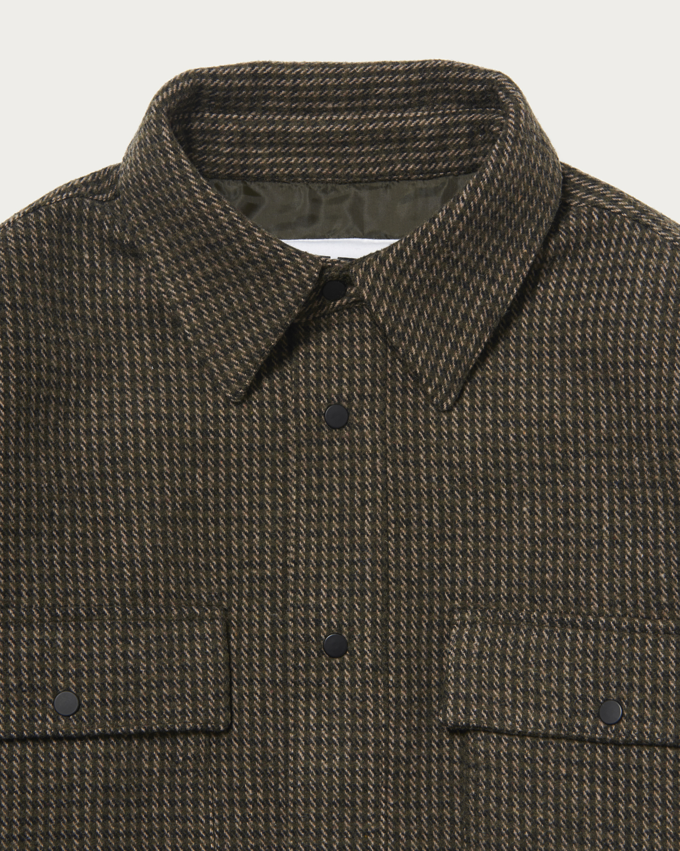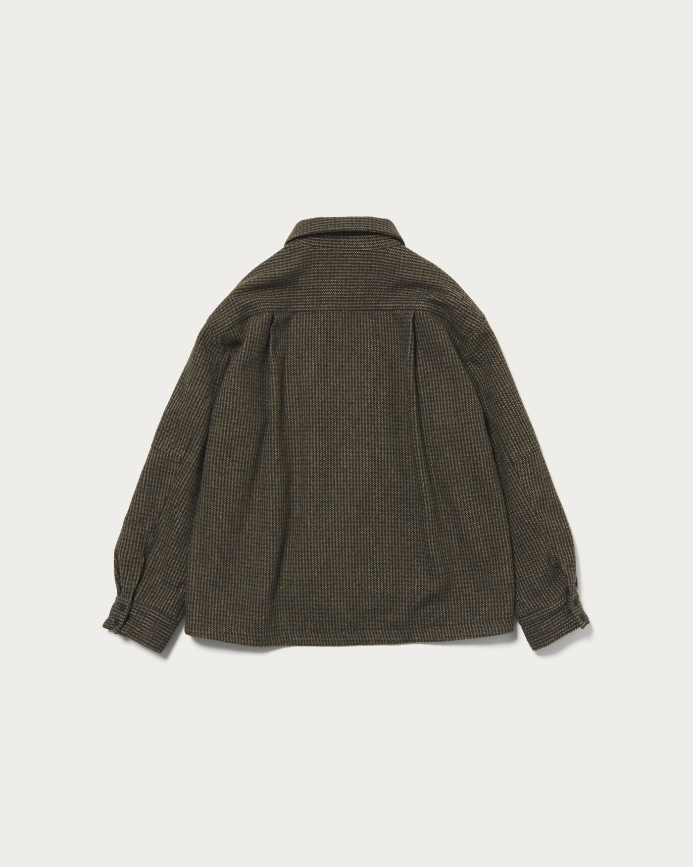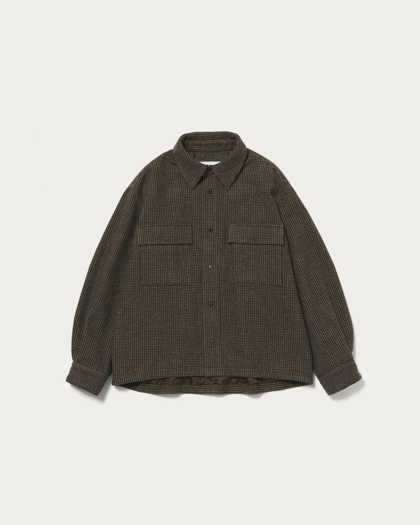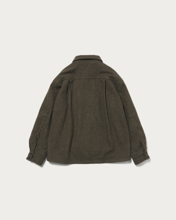 The check jacket features a color mini-check material as its highlight. Despite its relaxed sizing, the slightly compact shoulder width ensures a sleek fit without looking bulky. The sleeves have a slightly rounded shape, giving a sophisticated look just by wearing it. The small dot buttons add a touch of elegance to the casual style.