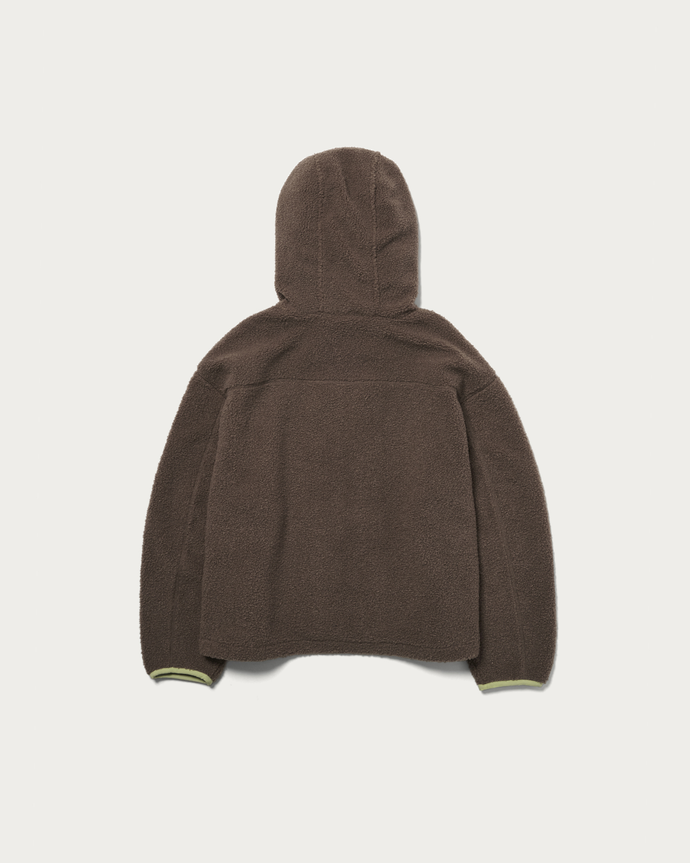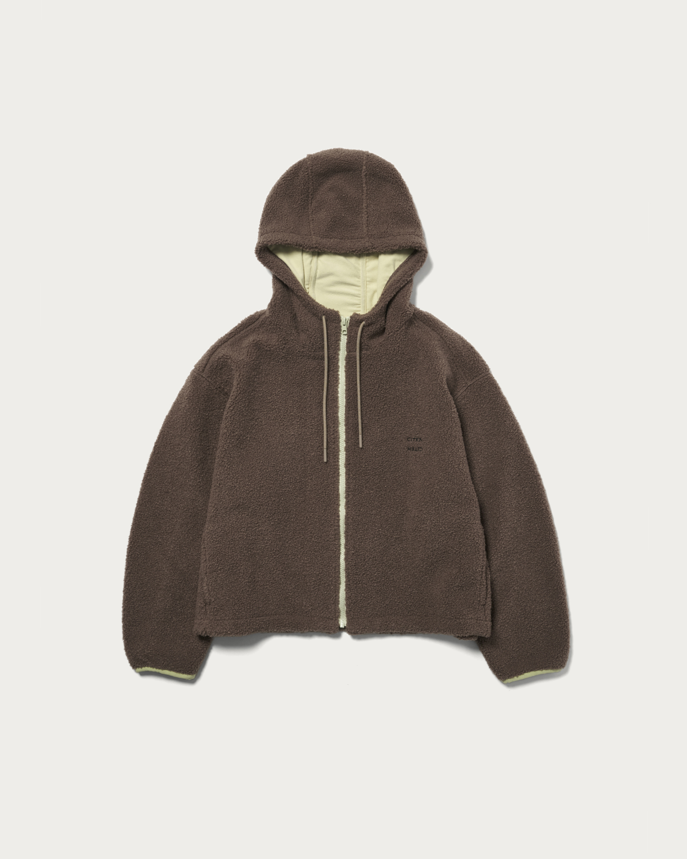 The hoodie jacket features contrasting colors on the hood lining and piping, making it a standout piece. We've focused not only on its adorable appearance but also on ensuring a comfortable fit. The generously sized hood and a silhouette that isn't too loose enhance femininity and create a relaxed mood. The hem is equipped with a drawstring, allowing you to adjust the silhouette according to your mood or the bottoms you pair it with, which is a delightful feature.