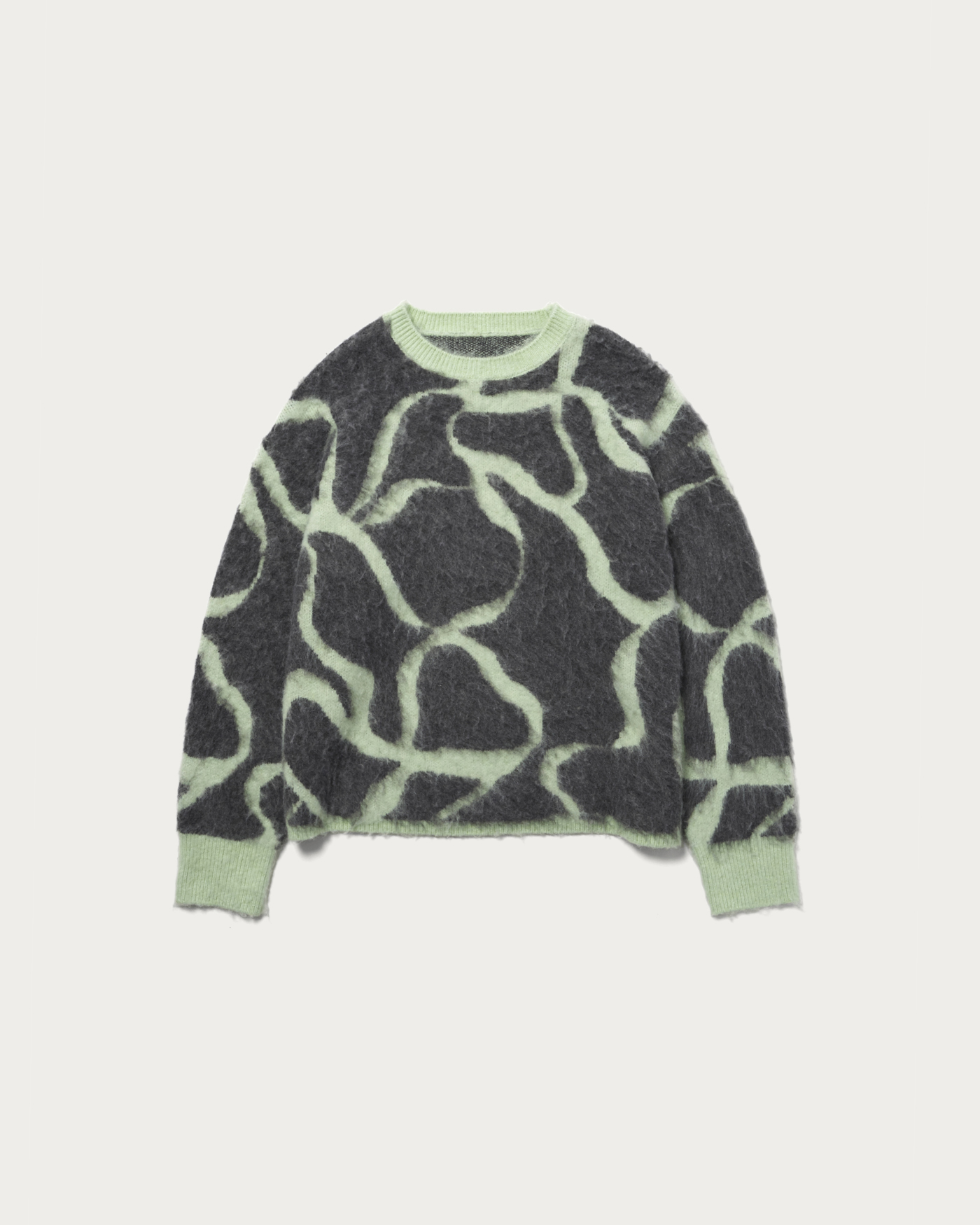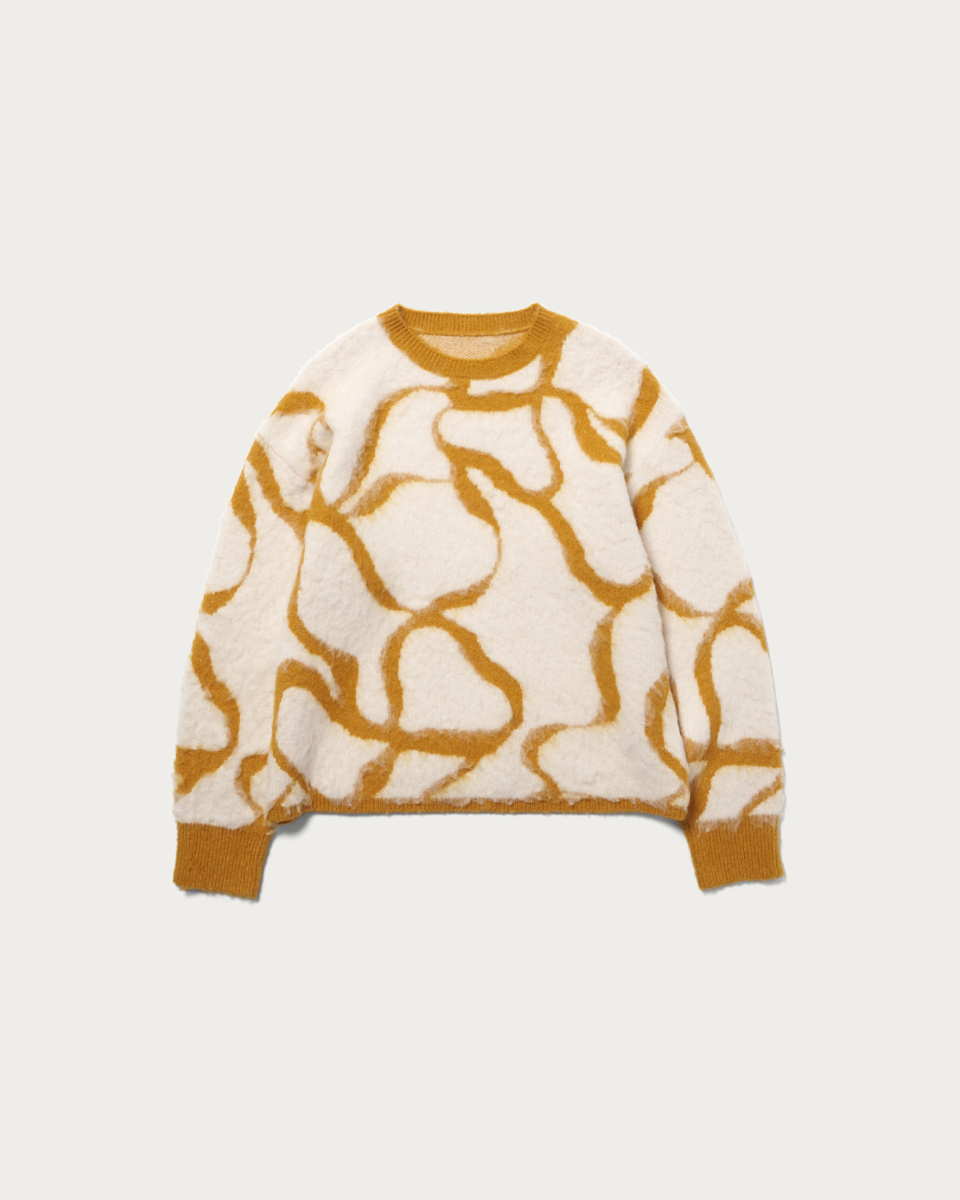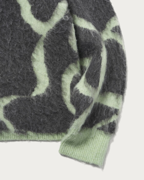 The original graphical pattern and the fluffy, brushed texture of the material are captivating features, offering a soft feel and a menswear-inspired sizing that stands out. It has a relaxed fit with just the right length, making it not too loose and easy to pair with any bottoms, which is a delightful point. Depending on the items you pair it with, you can enjoy a wide range of styles from casual to feminine. The soft texture makes it a perfect piece for the upcoming season.