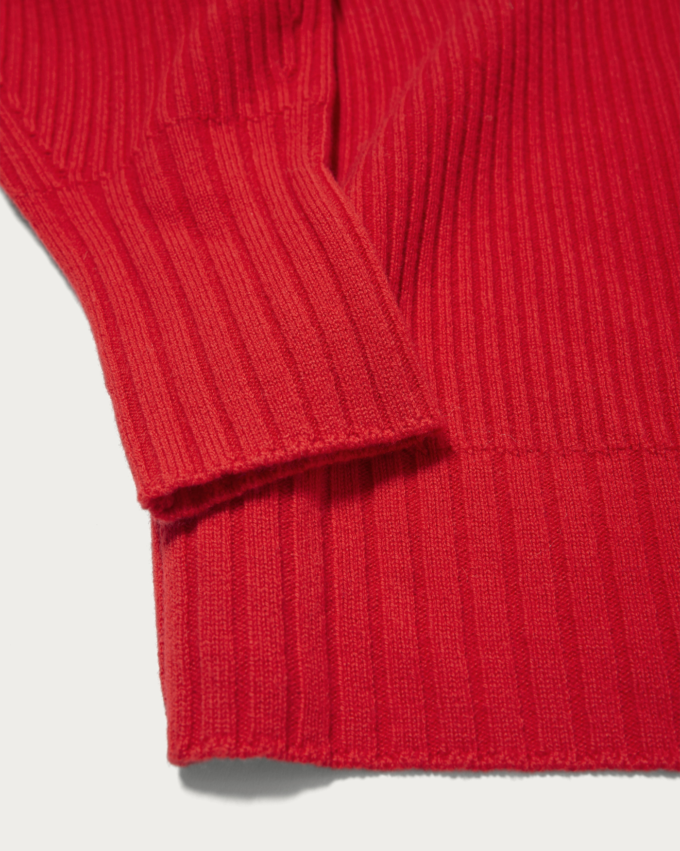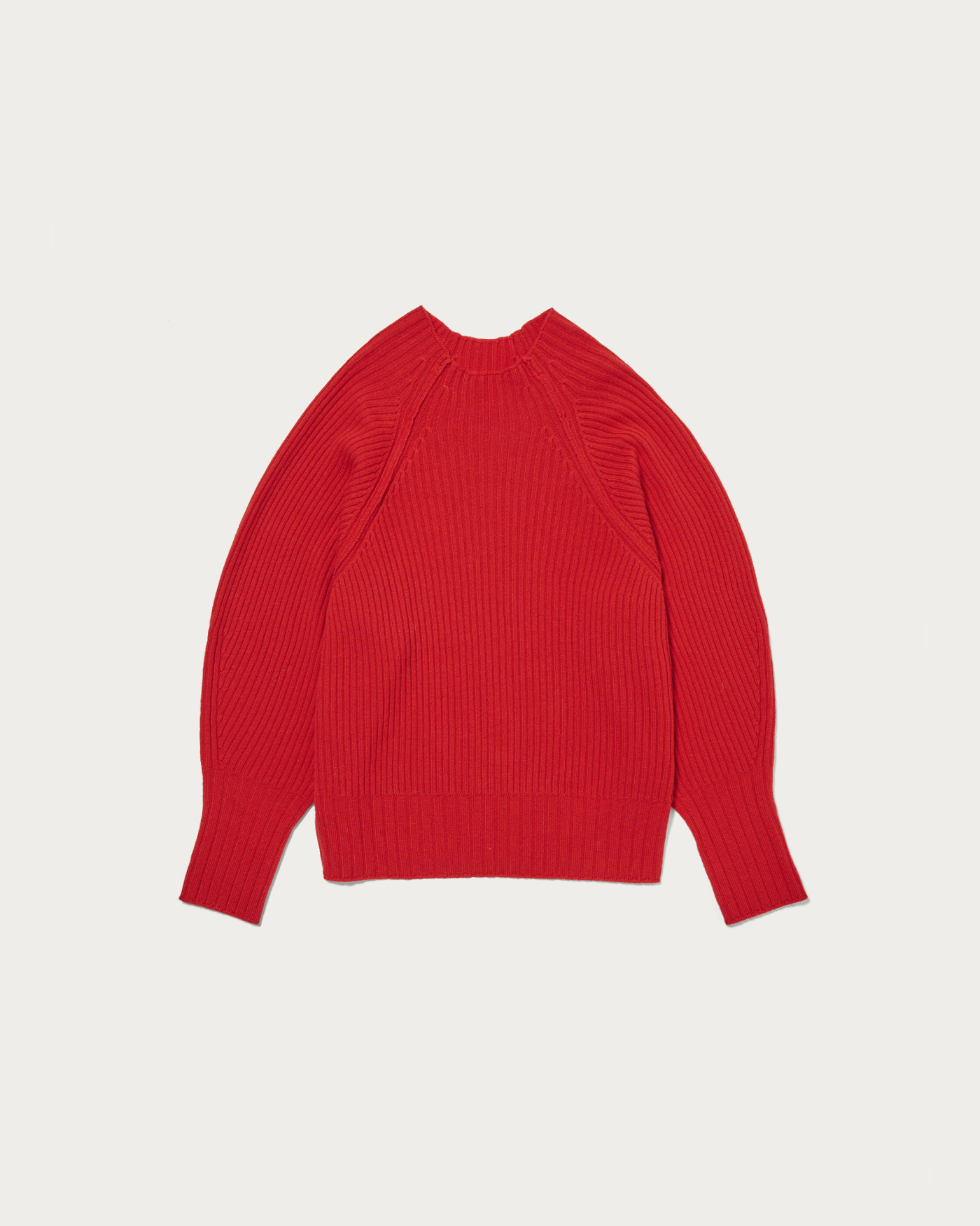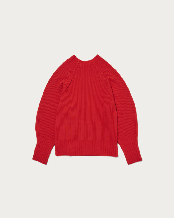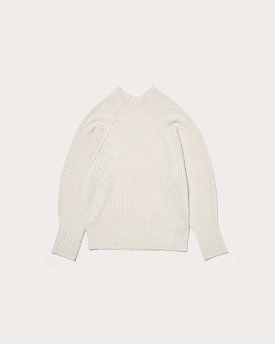 A ribbed knit that shines in a wide range of settings. While simple, the bottle neck adds just the right touch of casual flair. The outlining design also serves as a subtle point of interest. Made from 100% wool yarn, which is popular every season. The thick ribbed knitting ensures it doesn't convey a conservative image, allowing for a more casual wear.