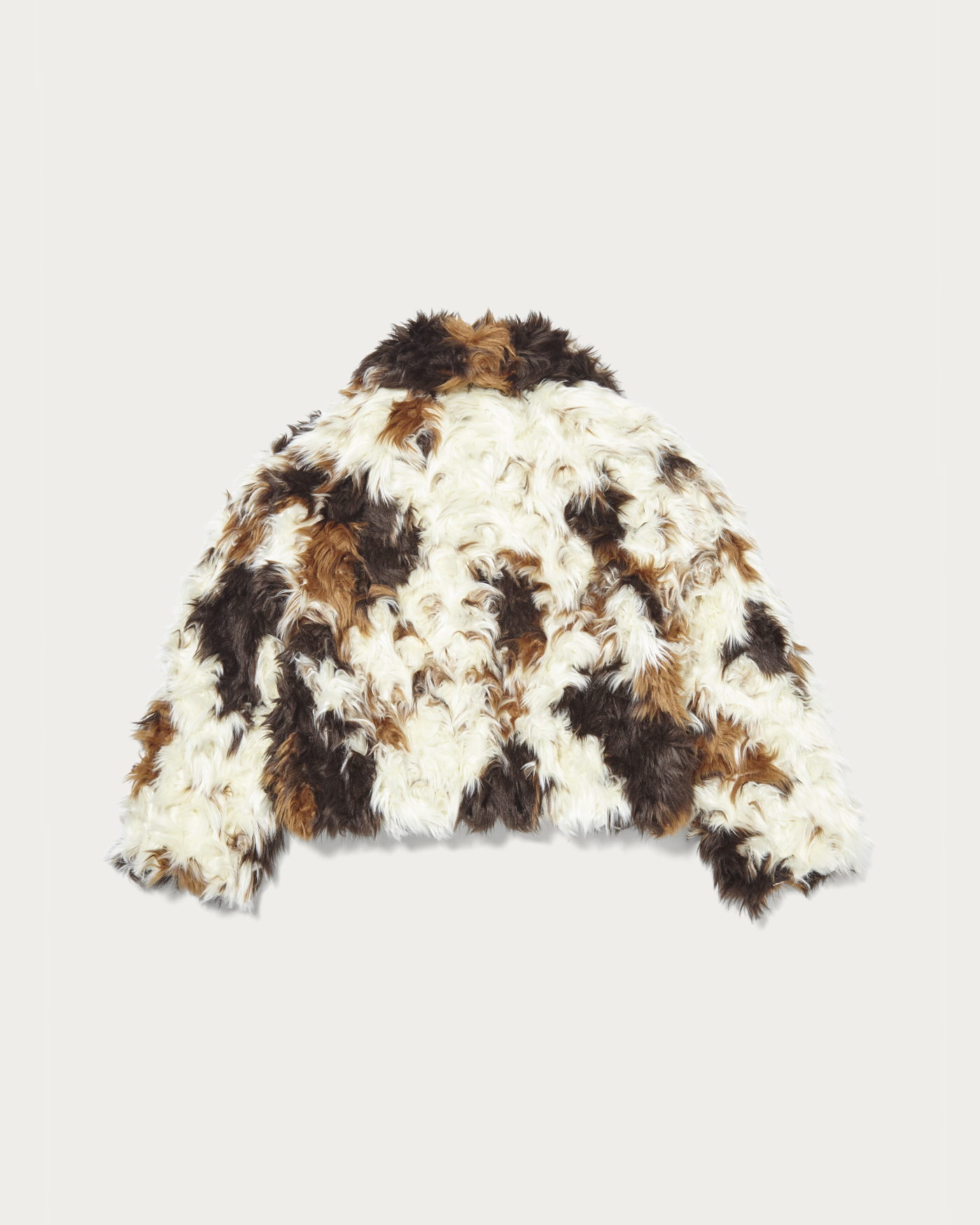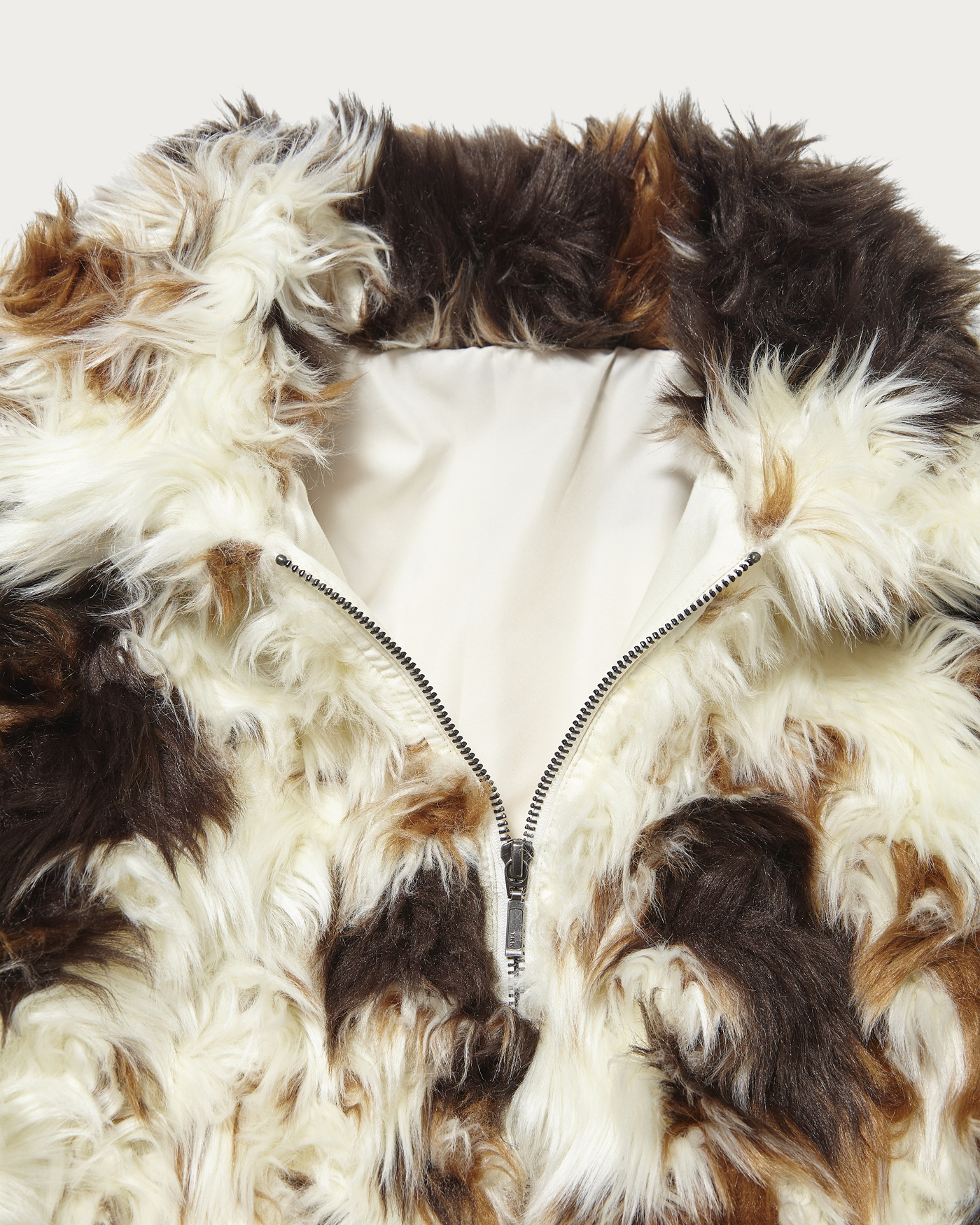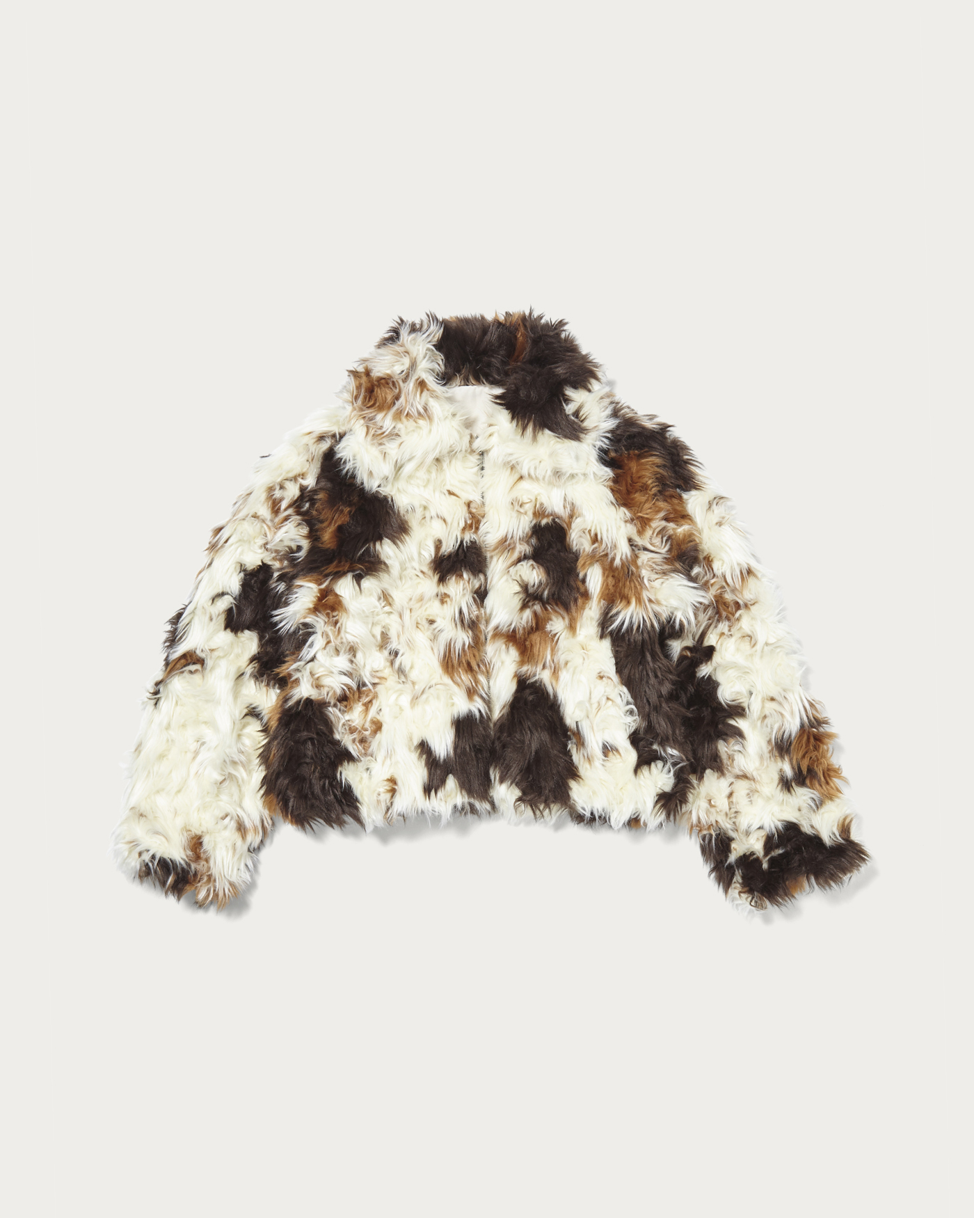 A blouson with animal print faux fur that becomes the centerpiece of your styling. The curly, voluminous fur stands out in simple outfits. It's recommended to pair it with dark denim for a casual look or with mini bottoms or tight silhouette bottoms to make the most of the blouson's volume.