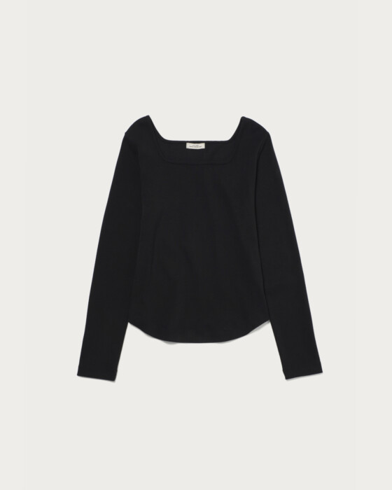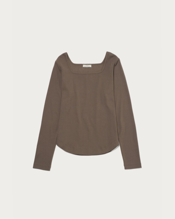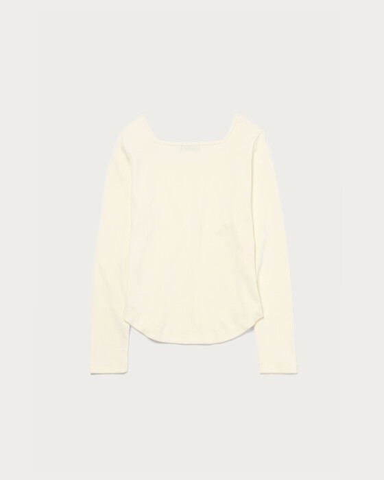 This is a pullover (PO) that focuses on a neckline designed to beautifully accentuate the décolletage. It is crafted to fit comfortably without being too tight, allowing it to be worn with ease on its own. The design is simple yet enhances femininity, making it suitable for a variety of occasions.