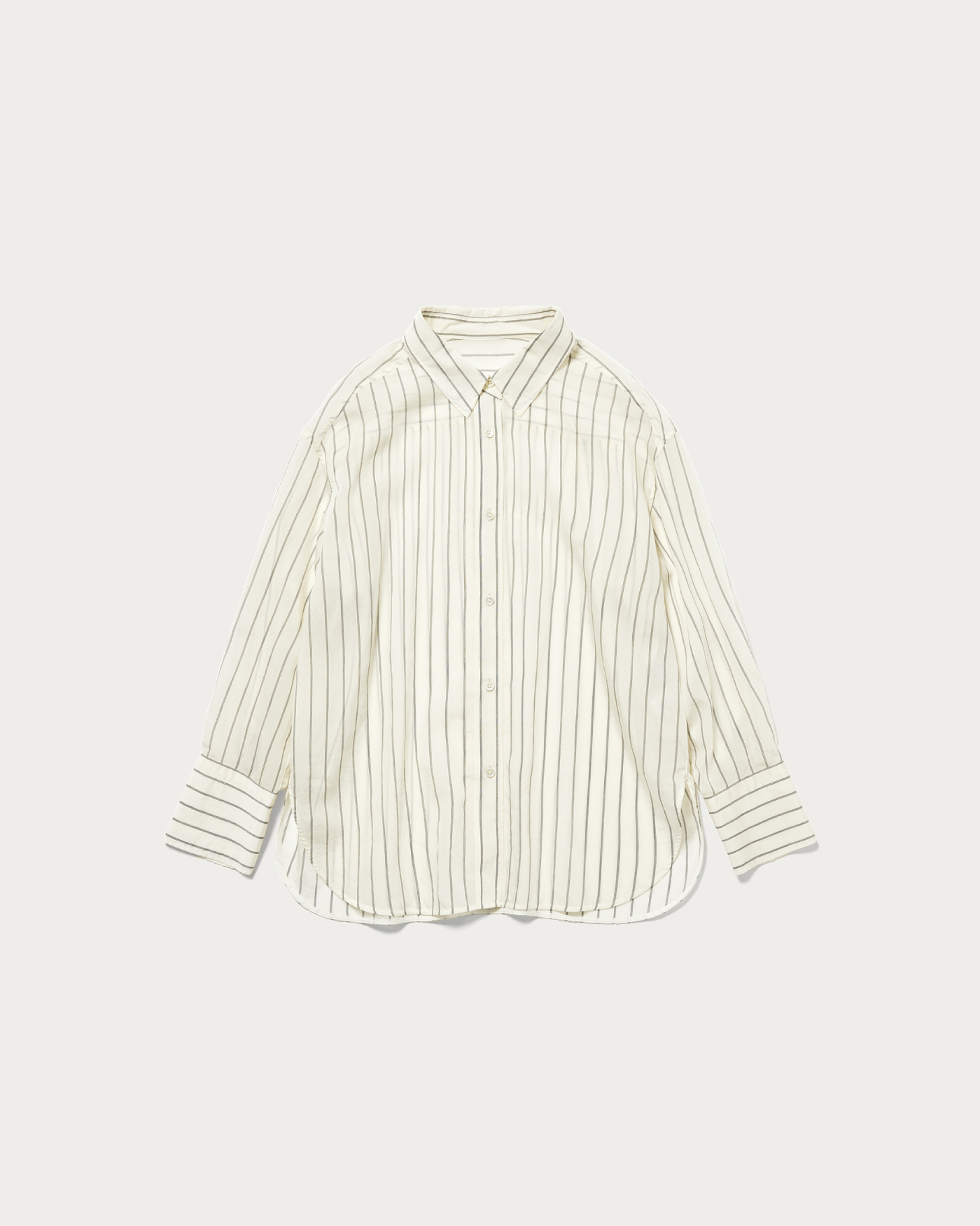 This season, we recommend a versatile shirt made from fibril material, perfect for wearing on its own or as a layered shirt. The wider placket, which serves as a subtle accent even when worn alone, features stitching on both edges. The cuffs are designed longer, making it a discreet point of interest even when layered.