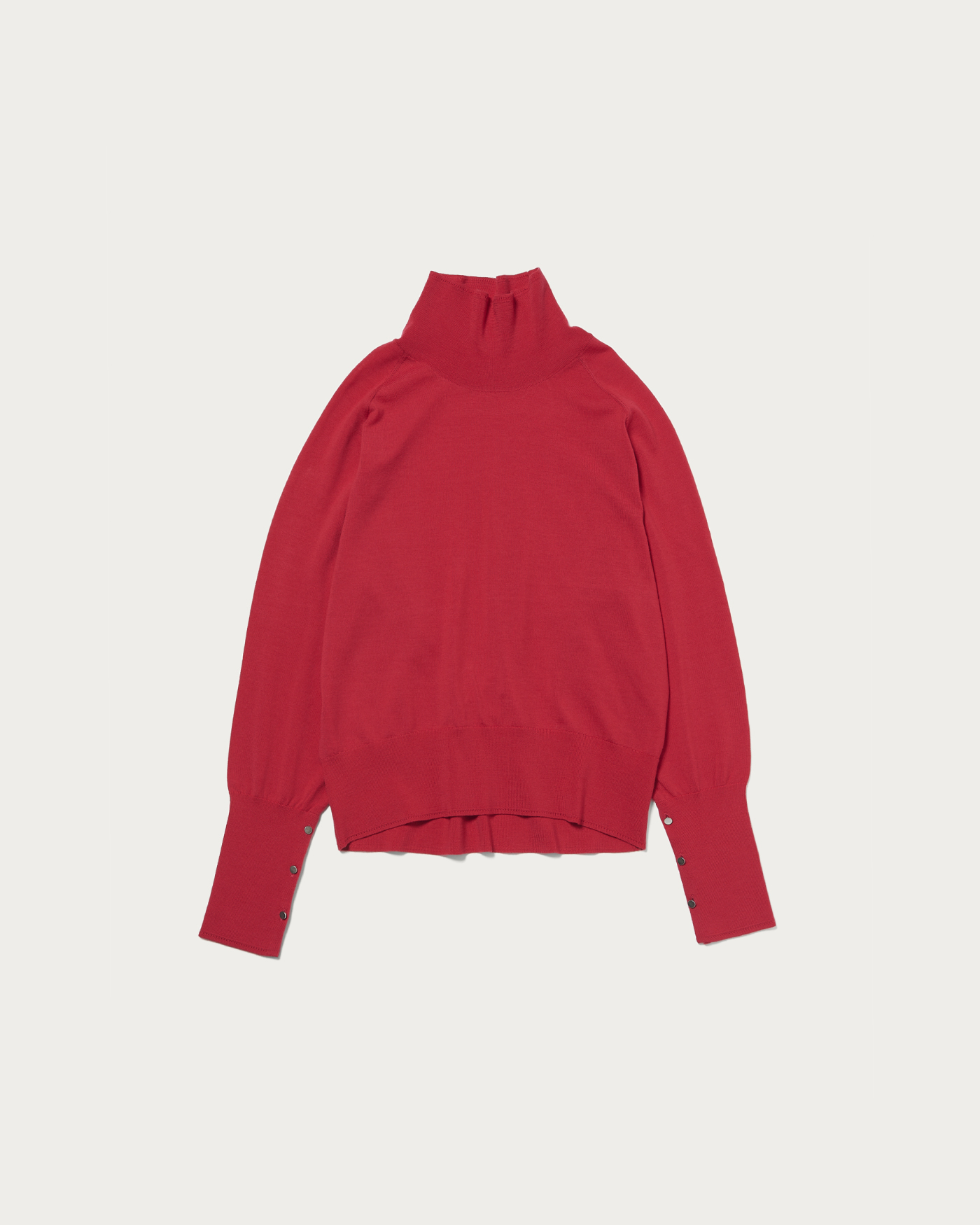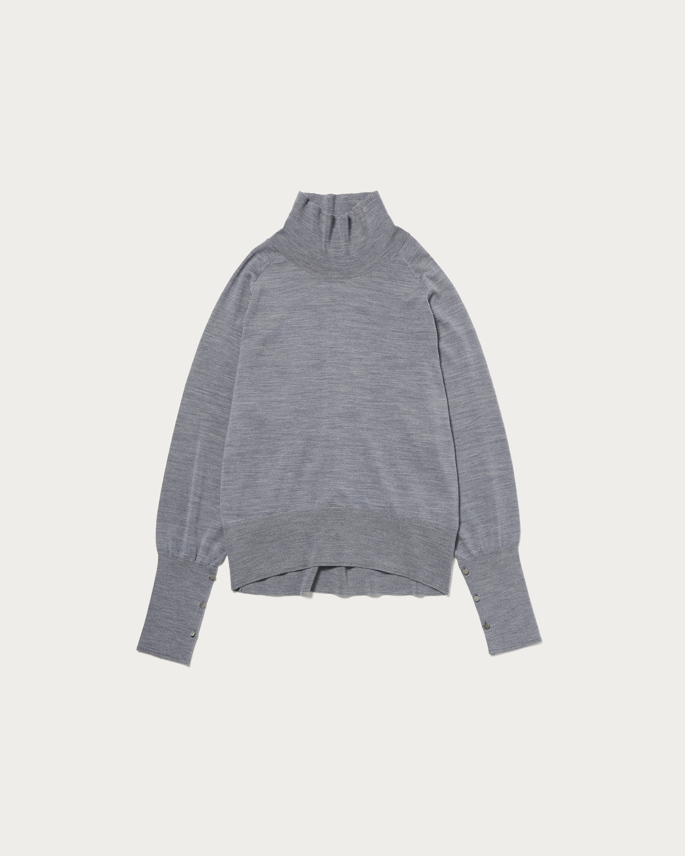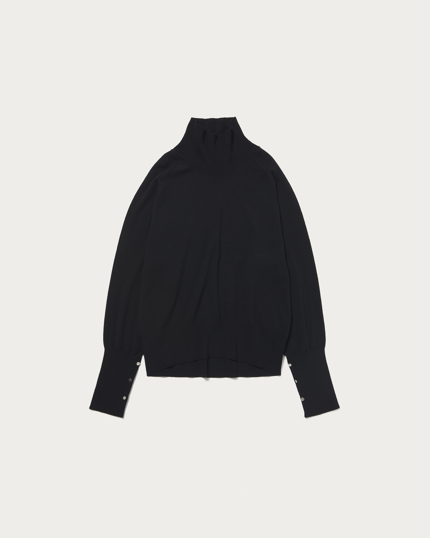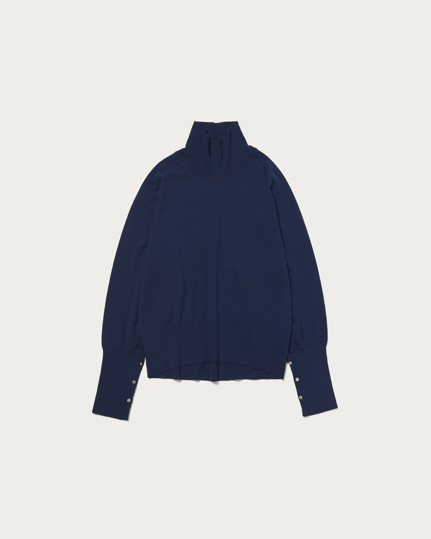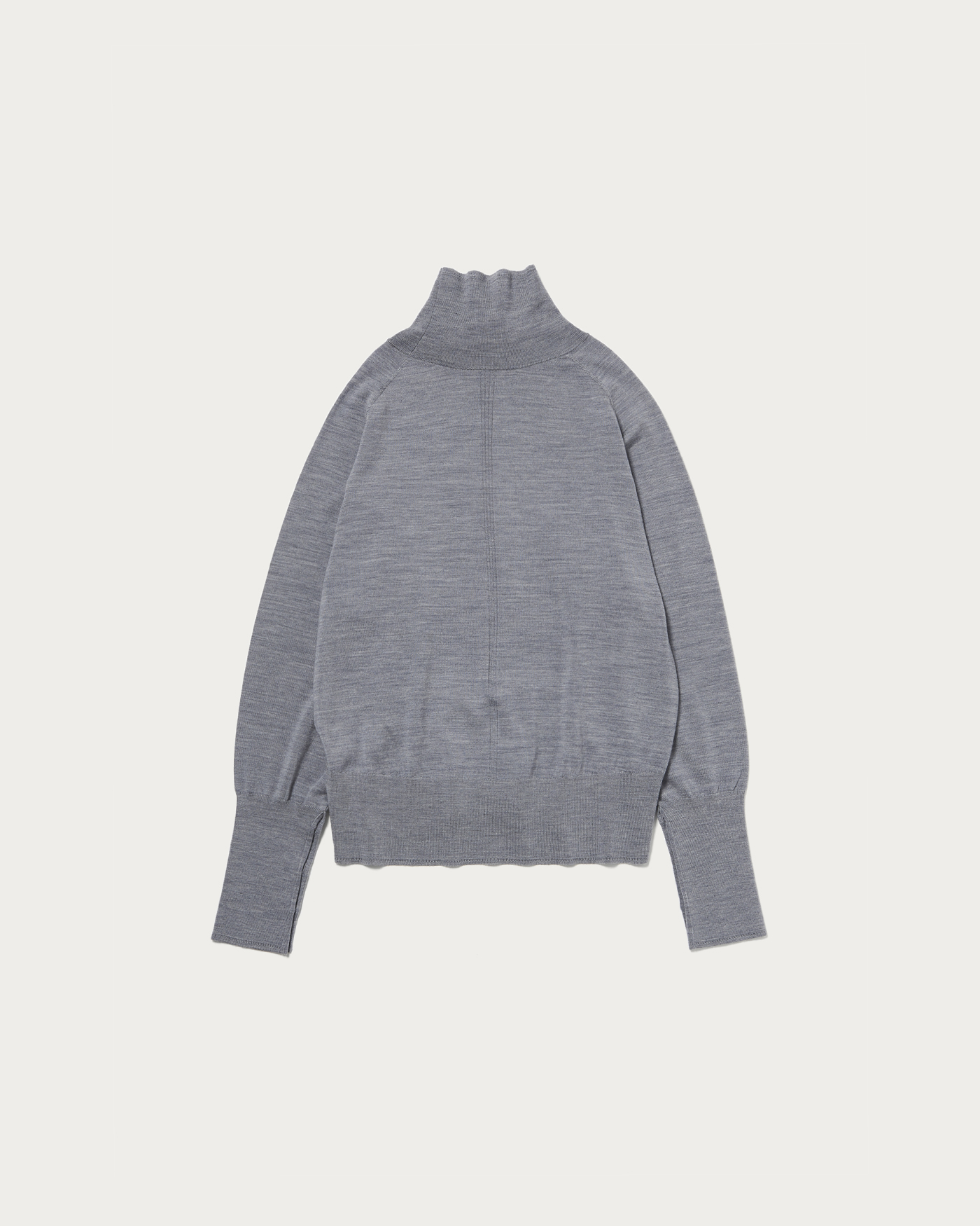 This high-gauge turtleneck knit features a moderate texture, making it perfect for long-season wear. It is crafted with meticulous attention to sizing, ensuring it can be worn alone or easily layered as an inner piece. This versatile garment adapts to a wide range of styles, regardless of the season.