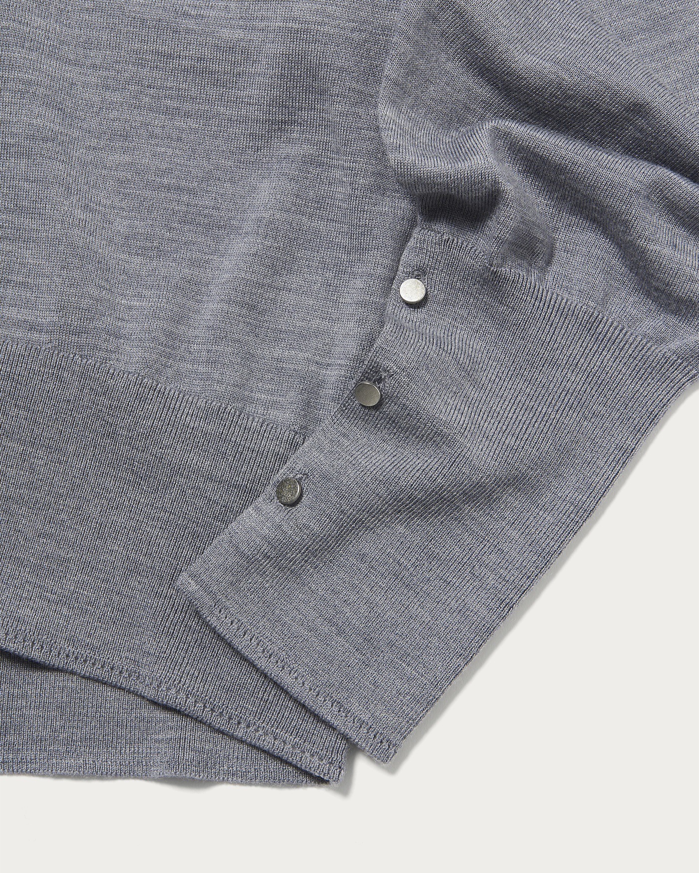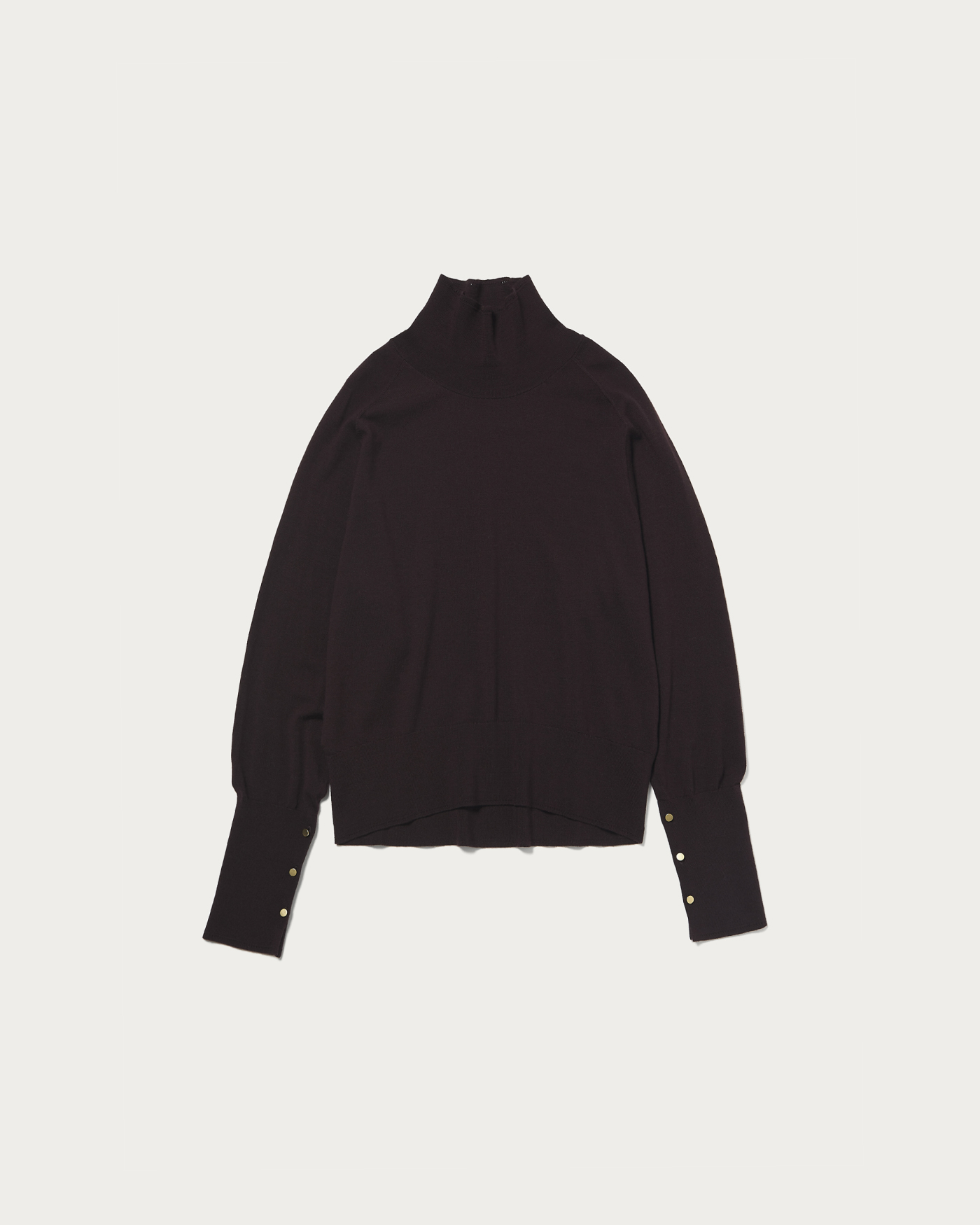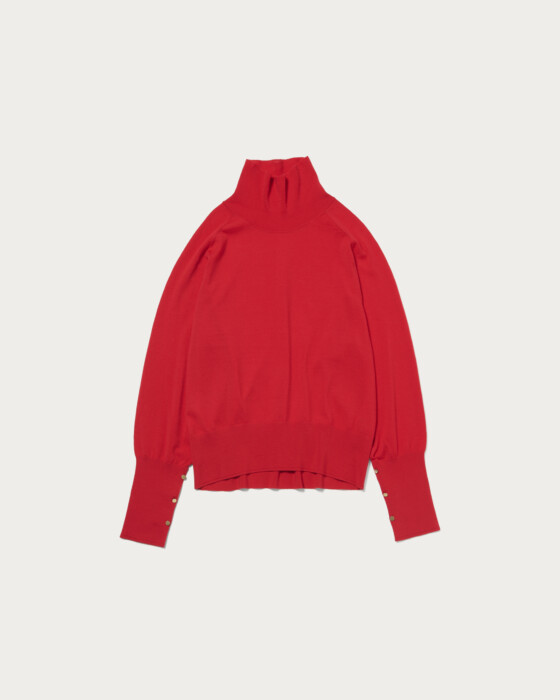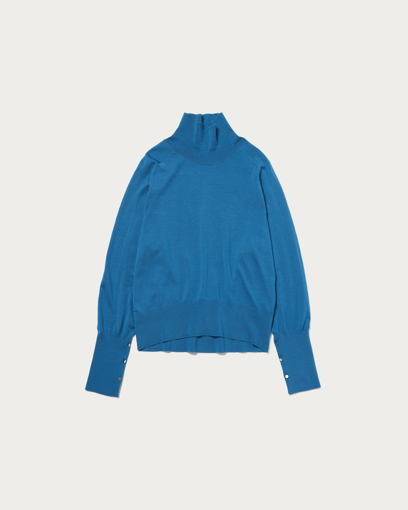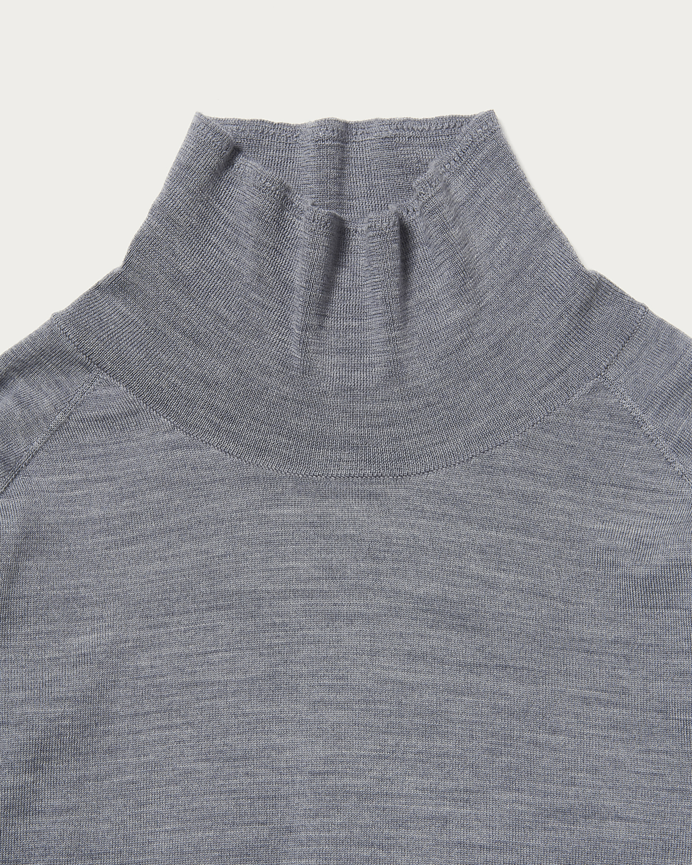 This high-gauge turtleneck knit features a moderate texture, making it perfect for long-season wear. It is crafted with meticulous attention to sizing, ensuring it can be worn alone or easily layered as an inner piece. This versatile garment adapts to a wide range of styles, regardless of the season.
