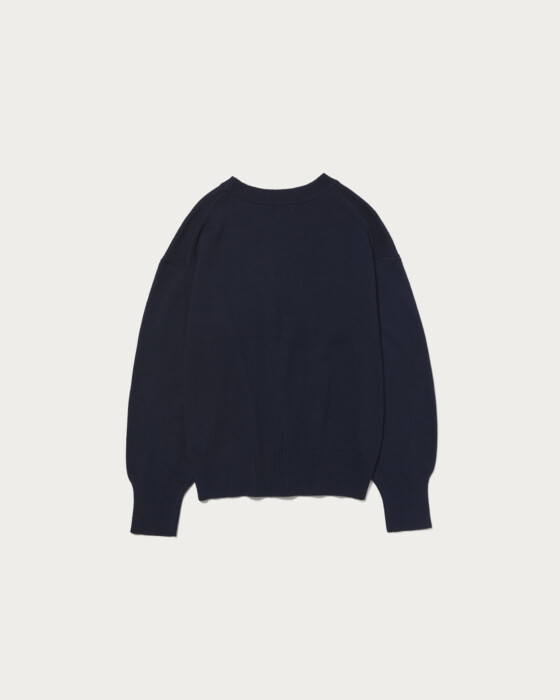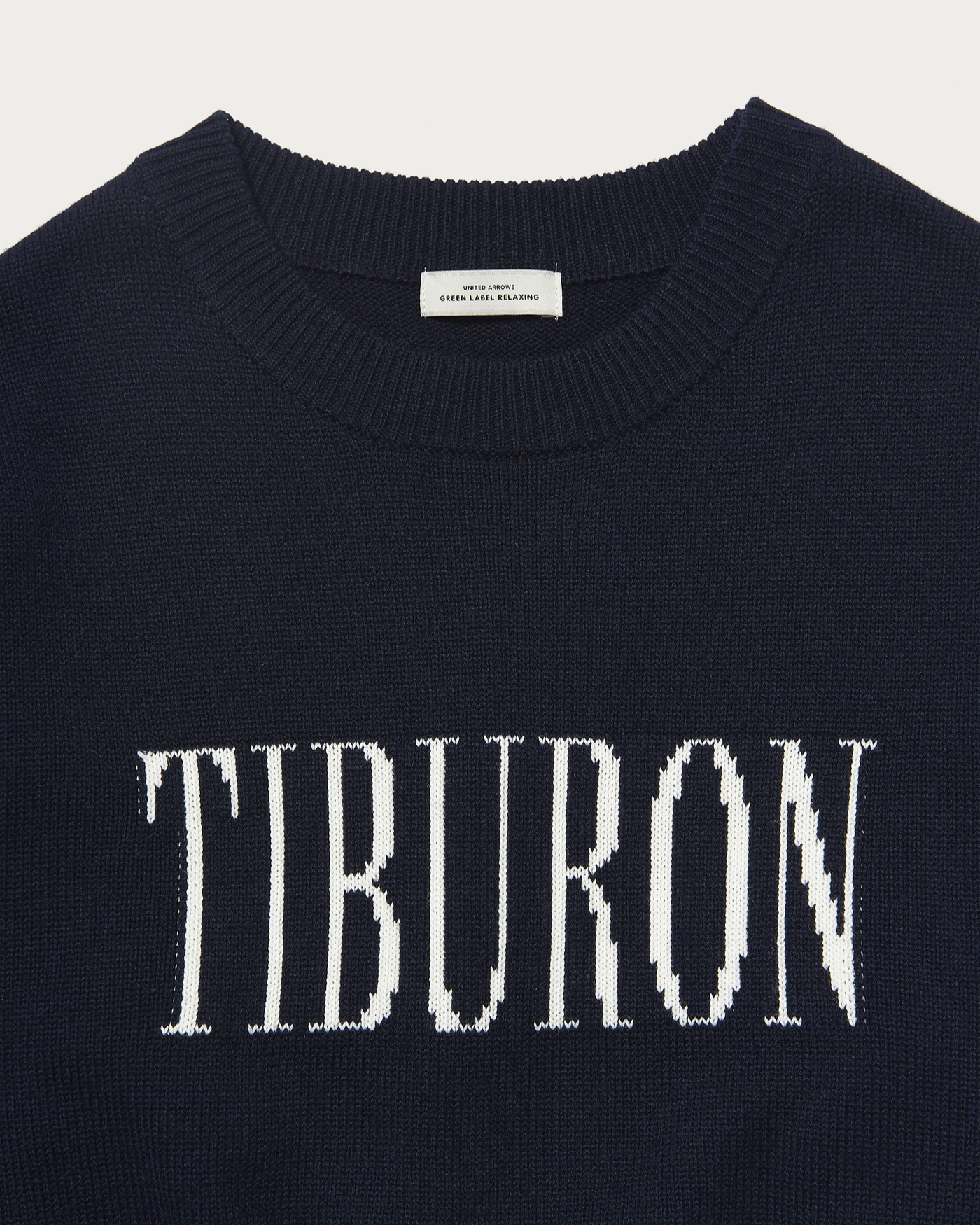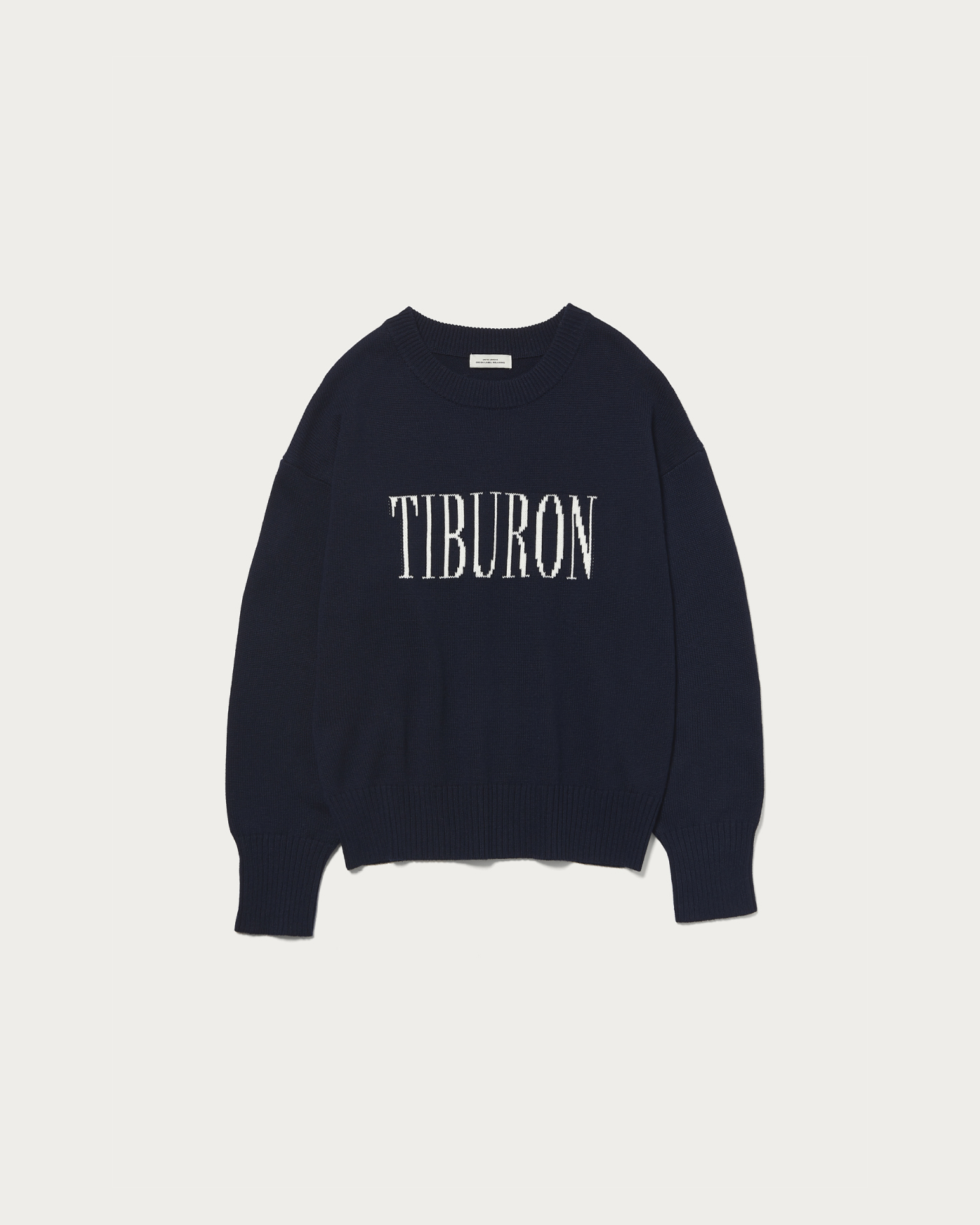 This is a jacquard logo knit with a strikingly large logo. The graphic design of "Tiburon" is inspired by the town of Tiburon in California, USA. It features a moderately relaxed silhouette, making it a great piece to wear as an inner layer under outerwear, allowing you to enjoy a casual vibe. It matches a wide range of styles and is suitable for any season.