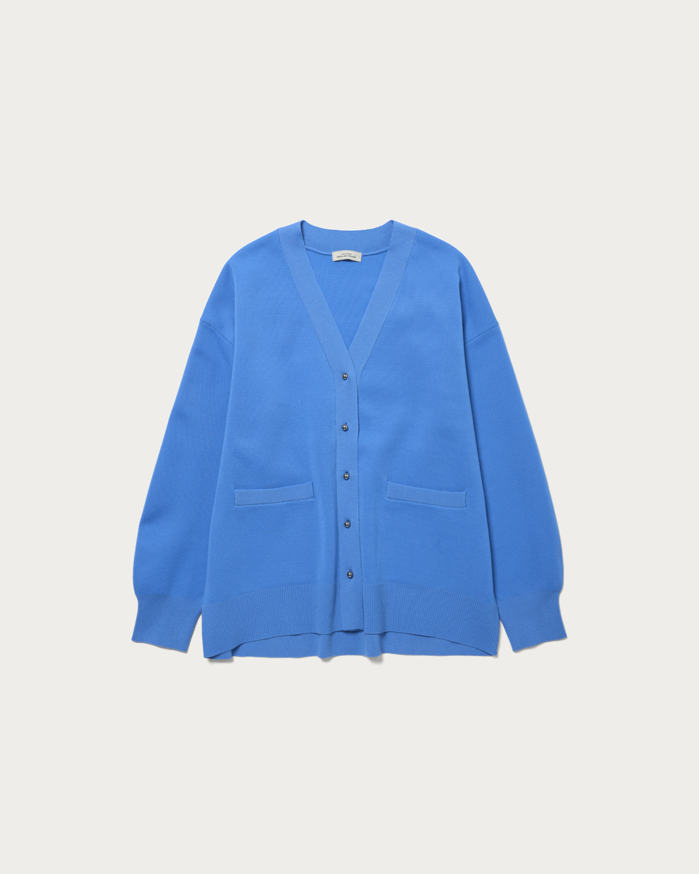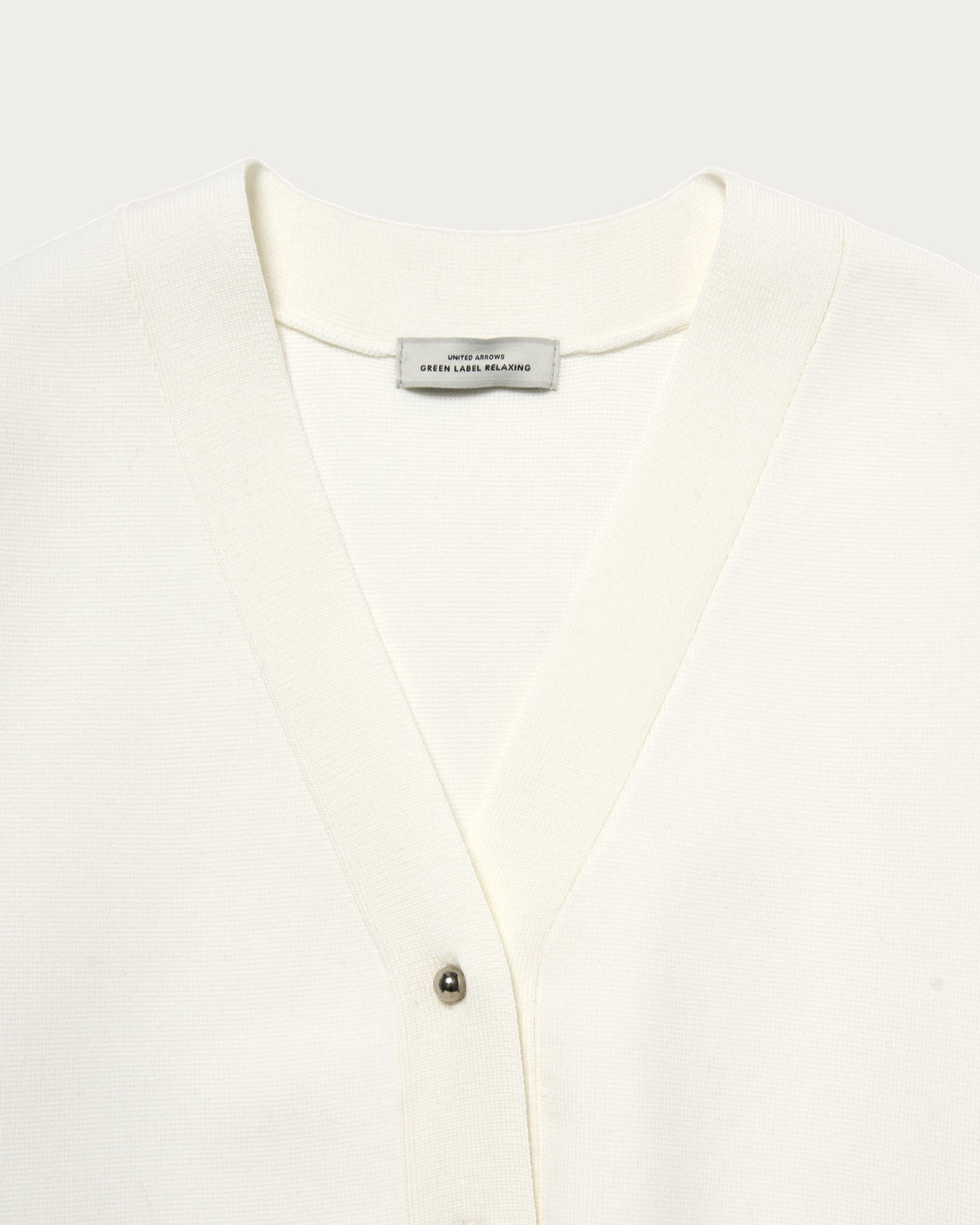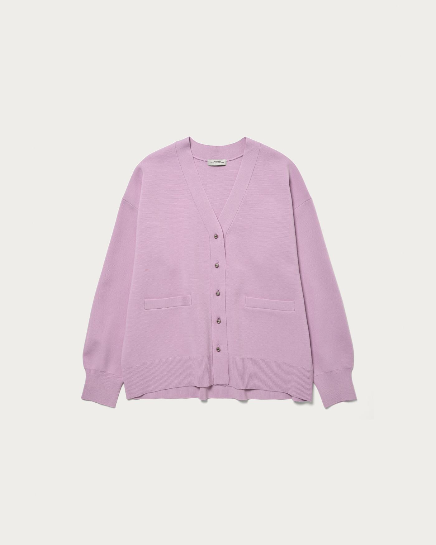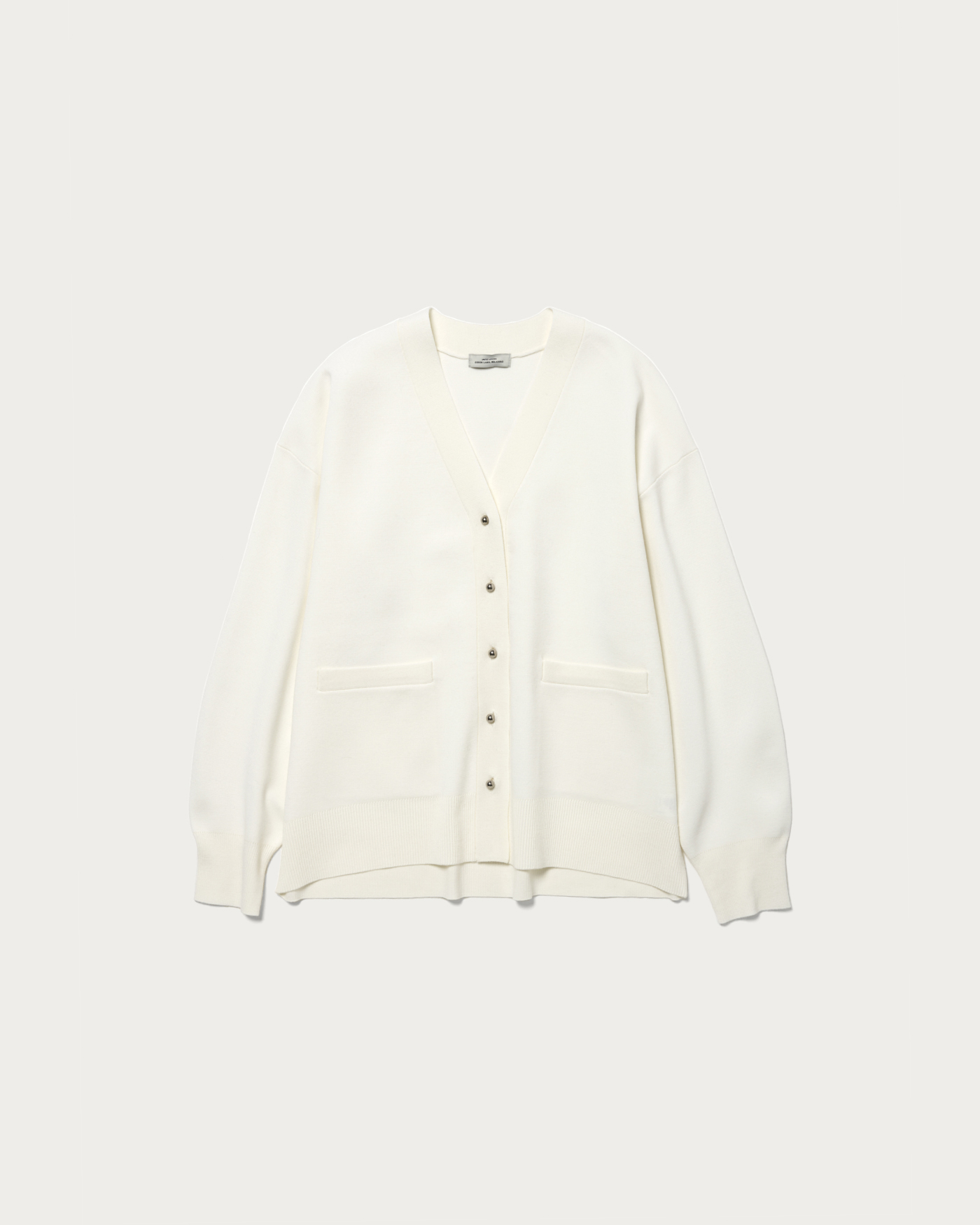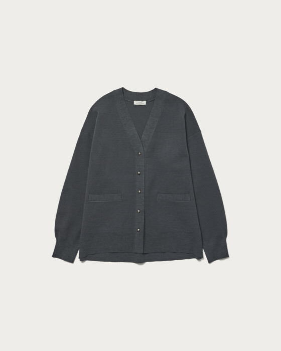 This V-neck cardigan features elegant metal-style buttons that add a stylish accent. The cuffs have a moderate volume, creating a subtly sophisticated look. With a simple yet detail-oriented design, this piece is versatile enough to be worn for both daily and polished styles.