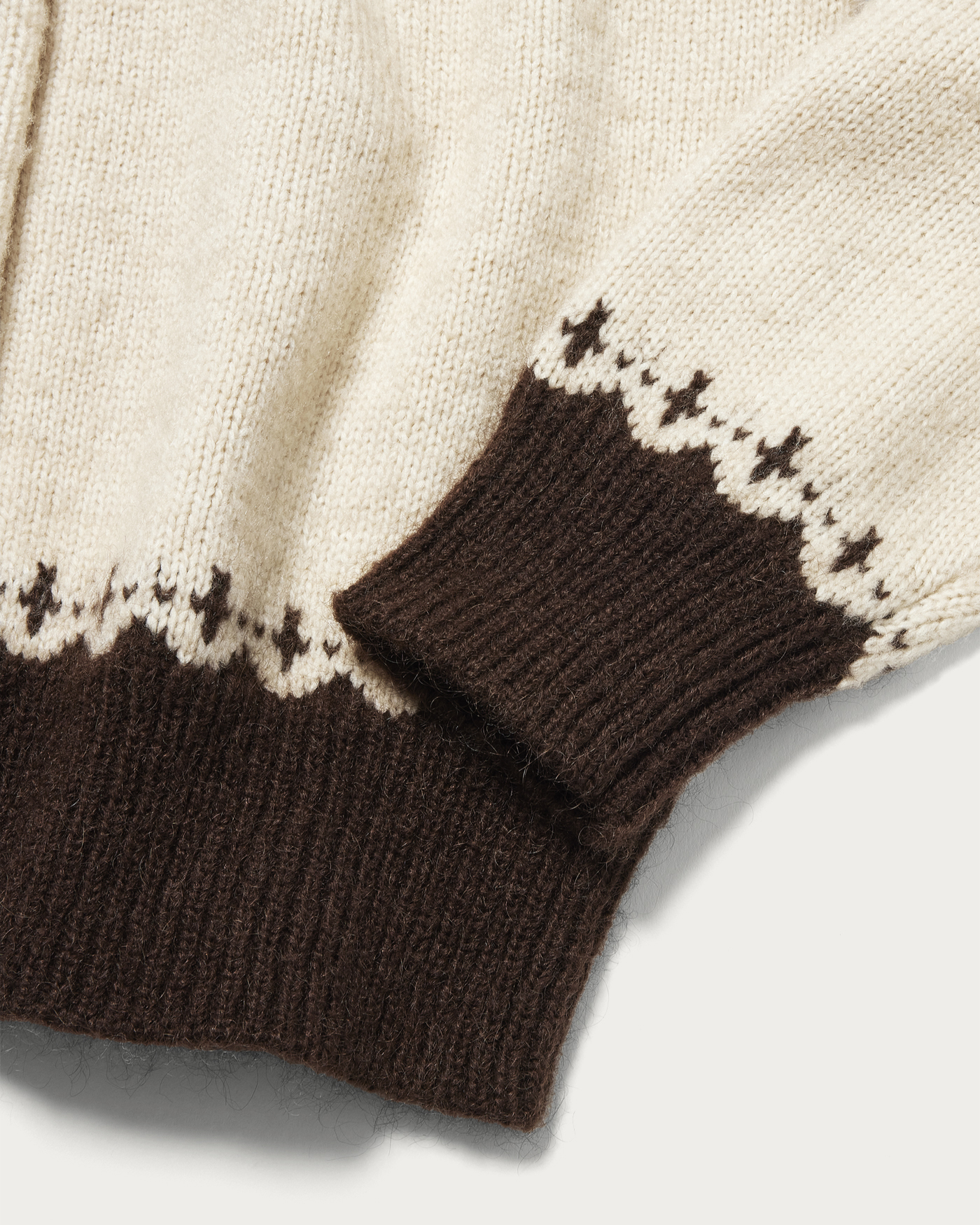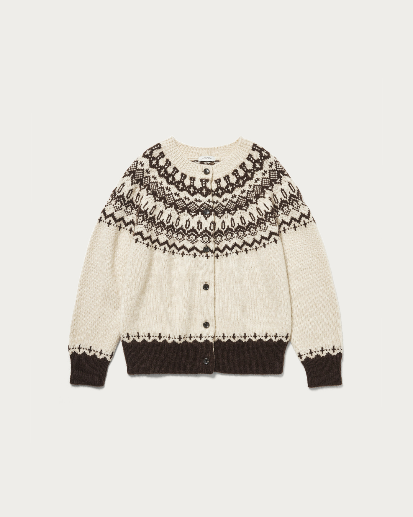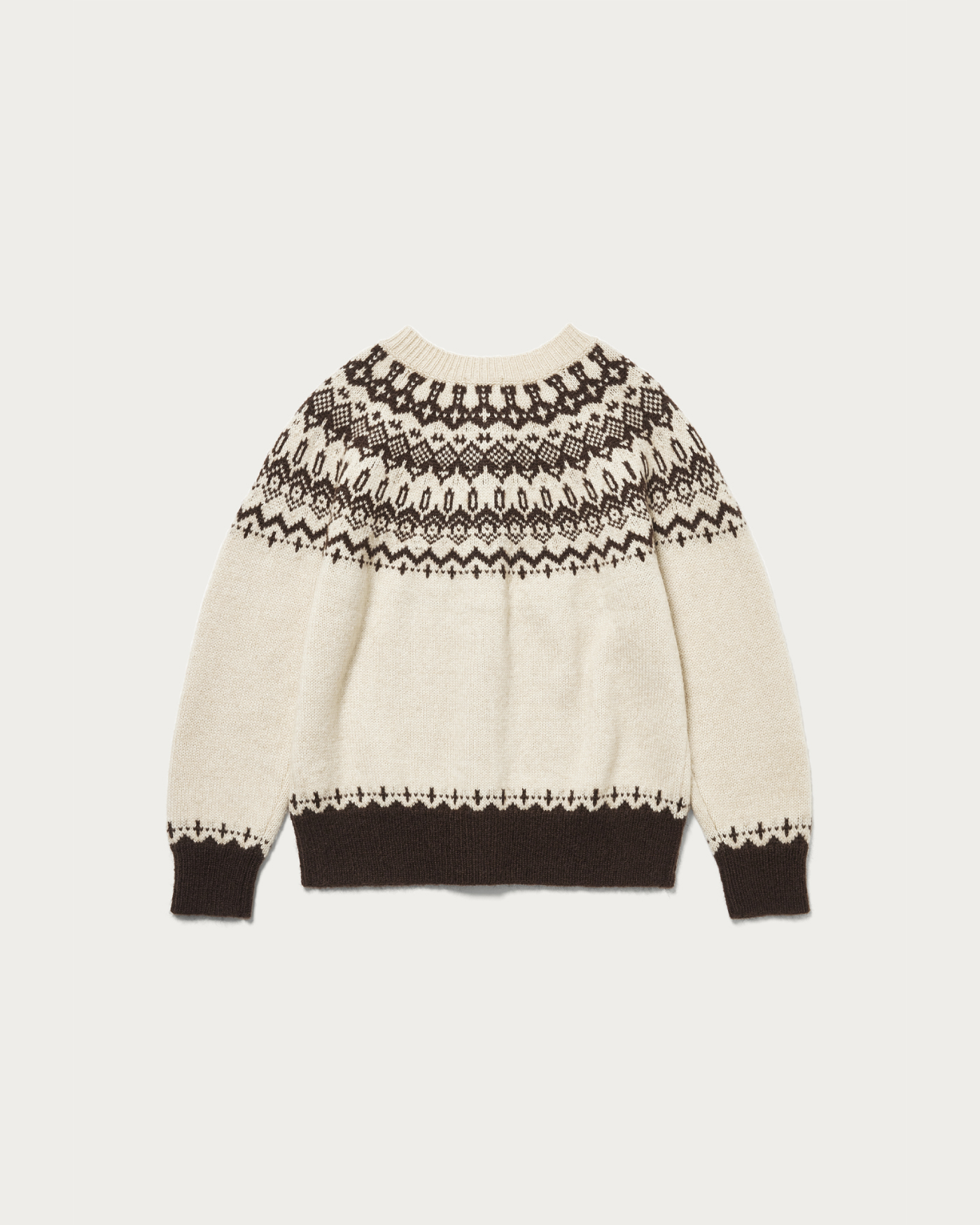 This piece features intricate patterns expressed in basic colors, resulting in a design that complements a polished style without being overly casual. It incorporates the Nordic pattern, which is gaining attention as this year's trend, offering both a sense of the season and elegance. It's easy to pair with a wide range of outfits, making it perfect for both everyday wear and special occasions.
