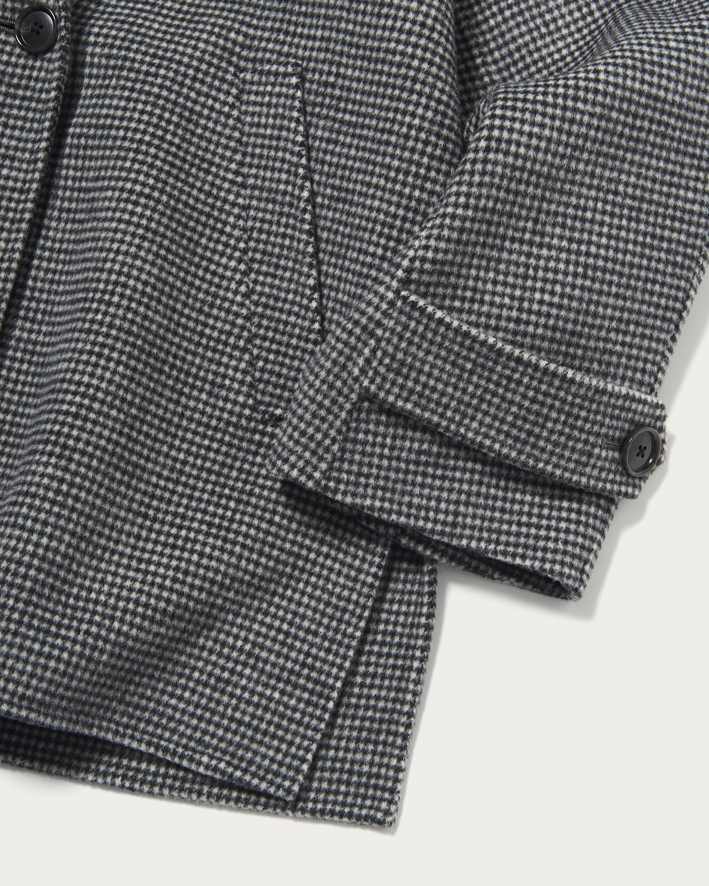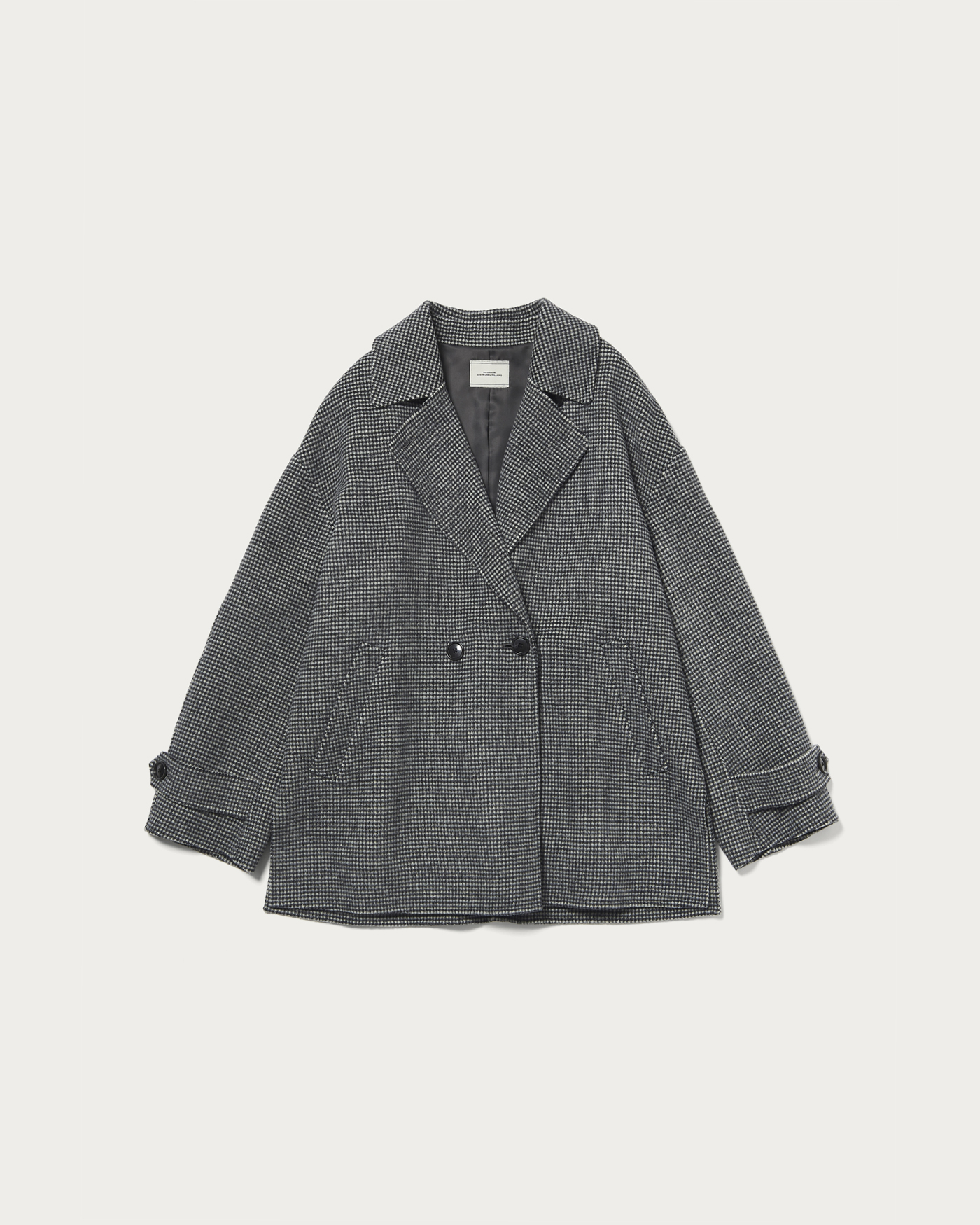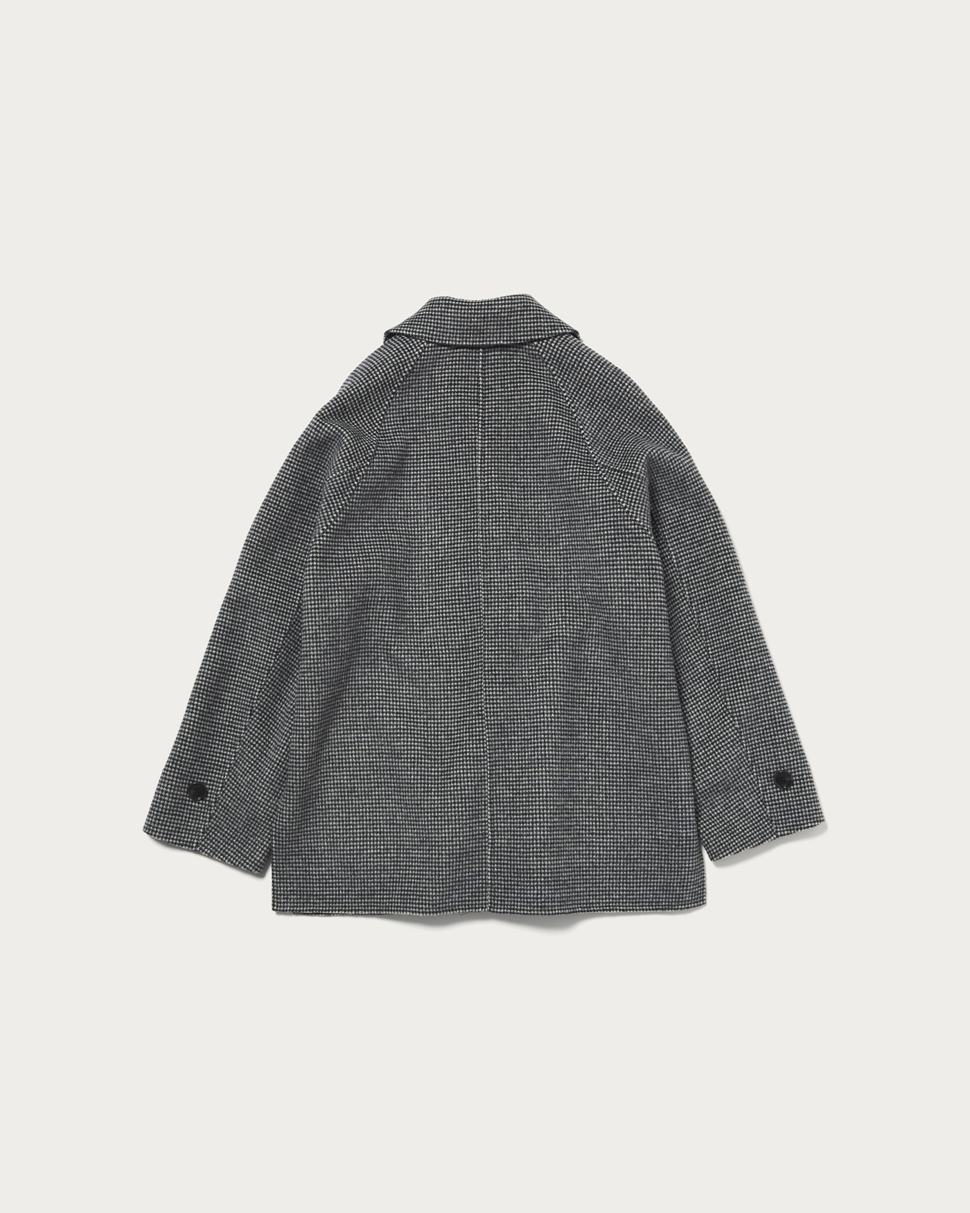 The use of mid-length reversible fabric ensures that, despite being a wool coat, it is not too heavy and can be comfortably worn from early in the season. While it features a tailored design, buttoning it up completely transforms it into a stand collar style, allowing you to enjoy different looks. This versatile piece is highly practical, offering a variety of styling options to suit different occasions and moods.