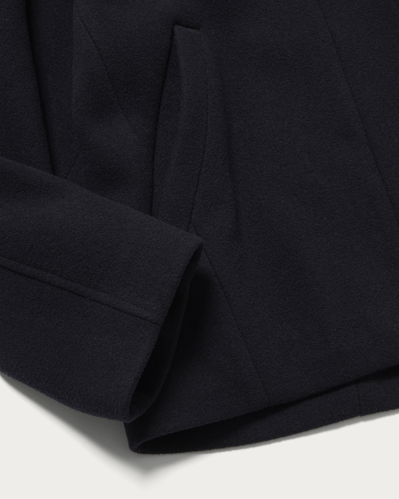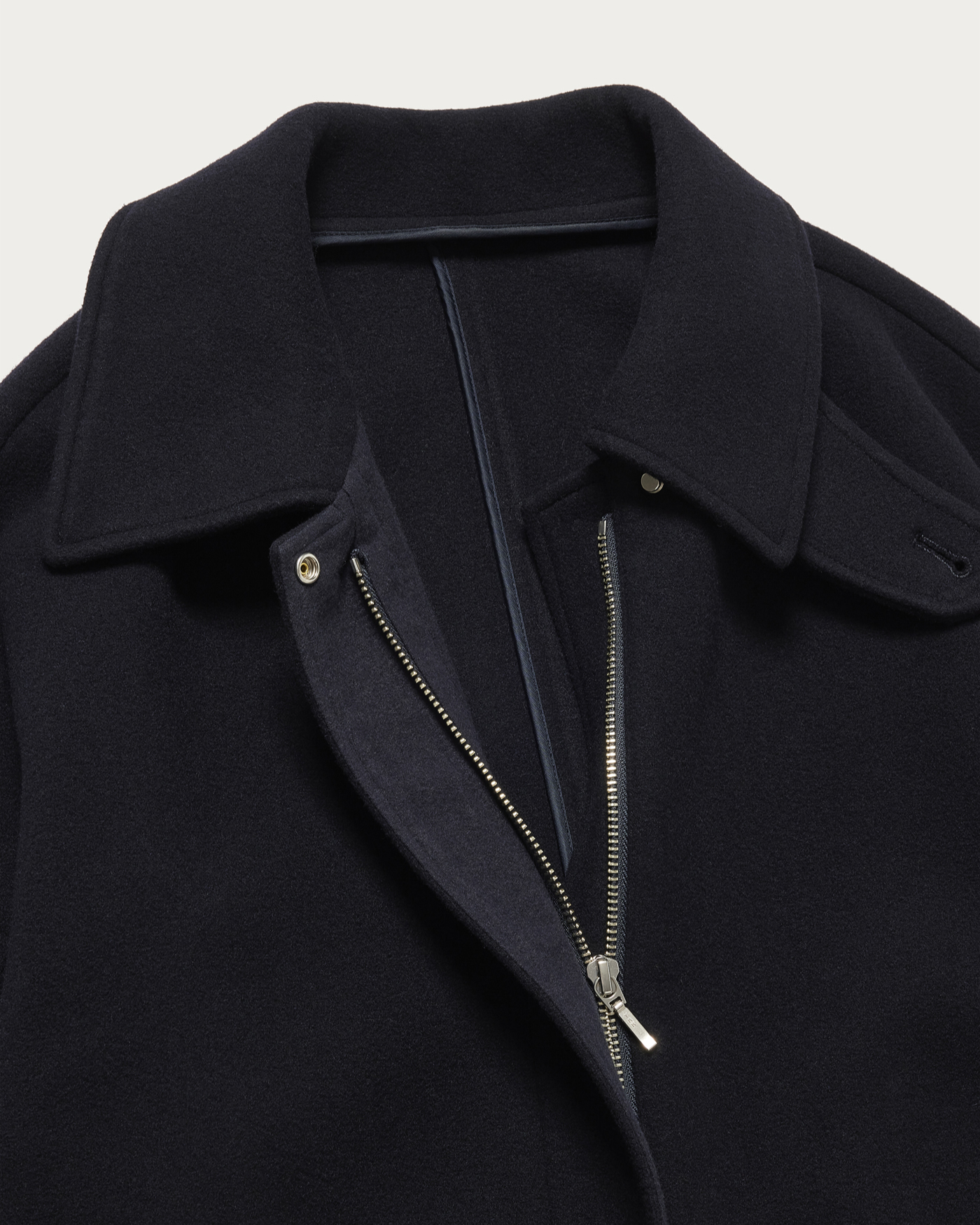 This season's wool blouson has been updated for easier wear by revisiting the balance of the silhouette's shape and the slightly longer length. The sleeves and body feature gentle, cocoon-like curves when viewed from the side, characterized by a natural form that isn't overly exaggerated. It is a refined design that also incorporates a sense of relaxation, resulting in a sophisticated yet comfortable piece.