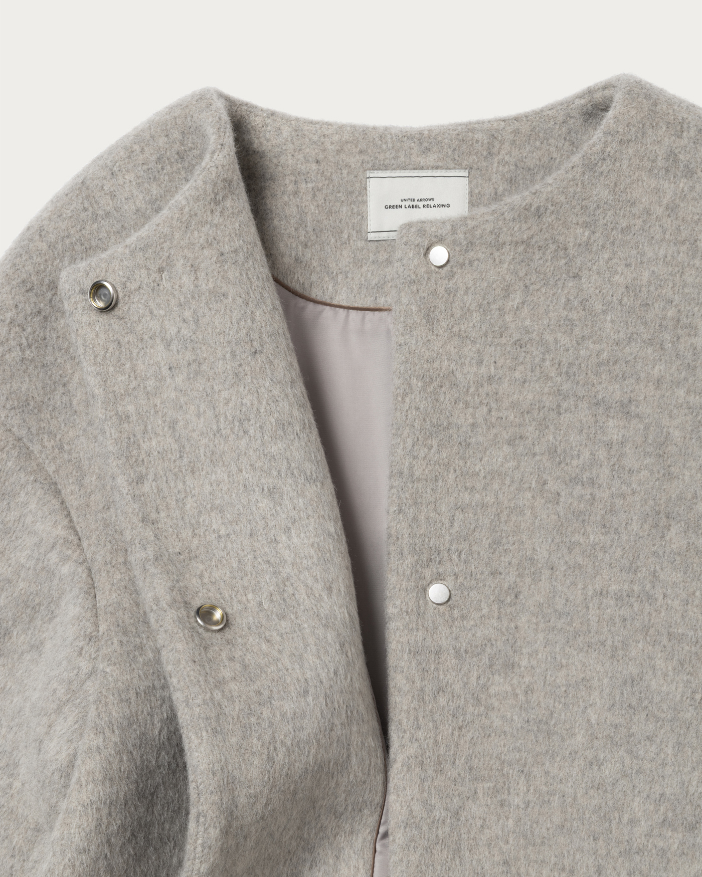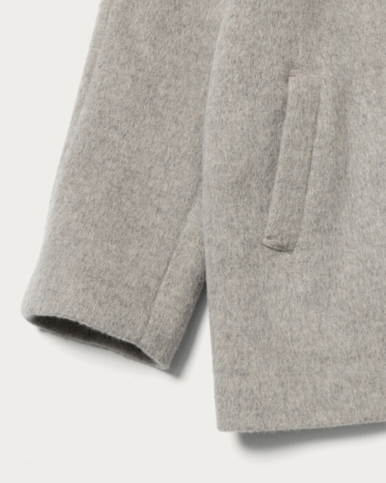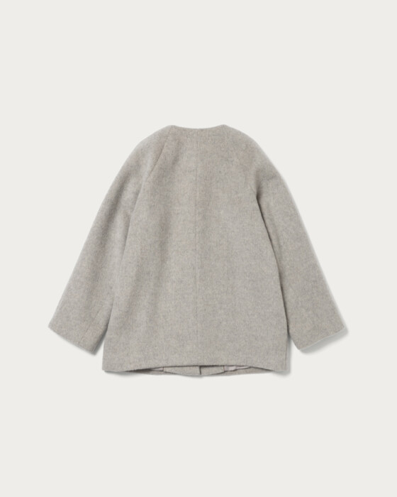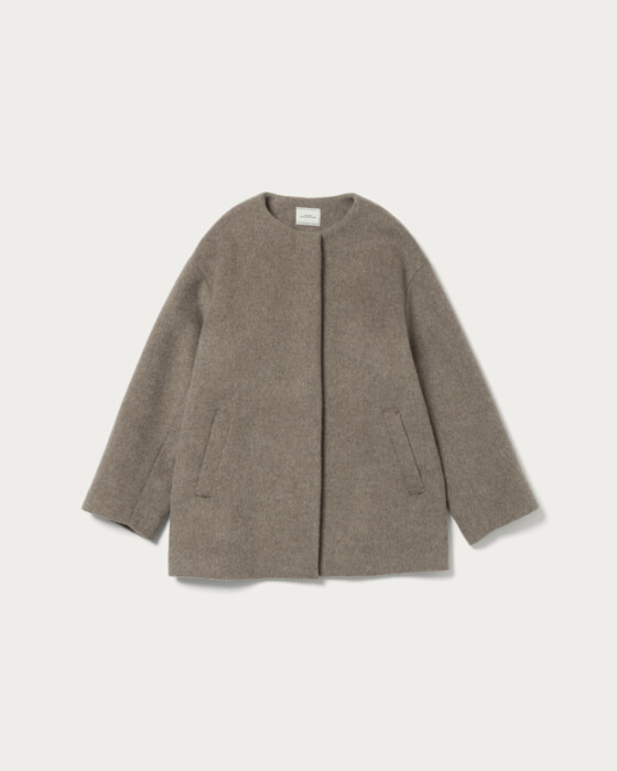 The mid-length coat, which strikes a perfect balance between structure and a polished look without being too rigid, is a versatile item that is easy to use for both on and off-duty occasions. Its sleek, collarless design makes it easy to pair with your existing scarves, allowing it to play a wide role in your seasonal wardrobe. Special attention has been given to the silhouette, crafted meticulously to highlight a sense of dimension. While it offers a sophisticated impression, it also ensures a comfortable, relaxed fit.