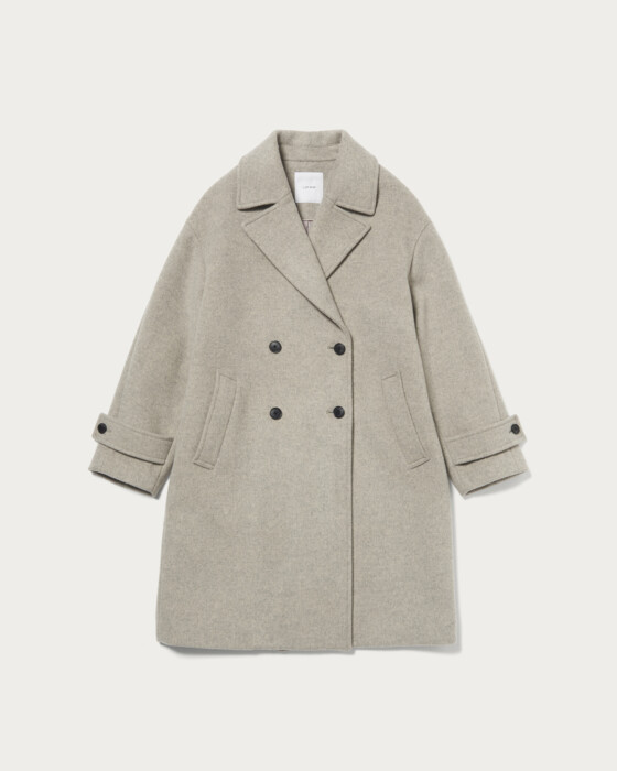 By reimagining the classic Chester coat with a double-breasted design, we've crafted a piece that can be styled casually. The moderately long length and oversized collar create a soft, feminine impression. Made from extra fine merino wool, known for its extremely fine fibers, this coat boasts a high-quality, soft, and supple texture. It combines a polished look with a relaxed feel, making it perfect for a wide range of occasions.