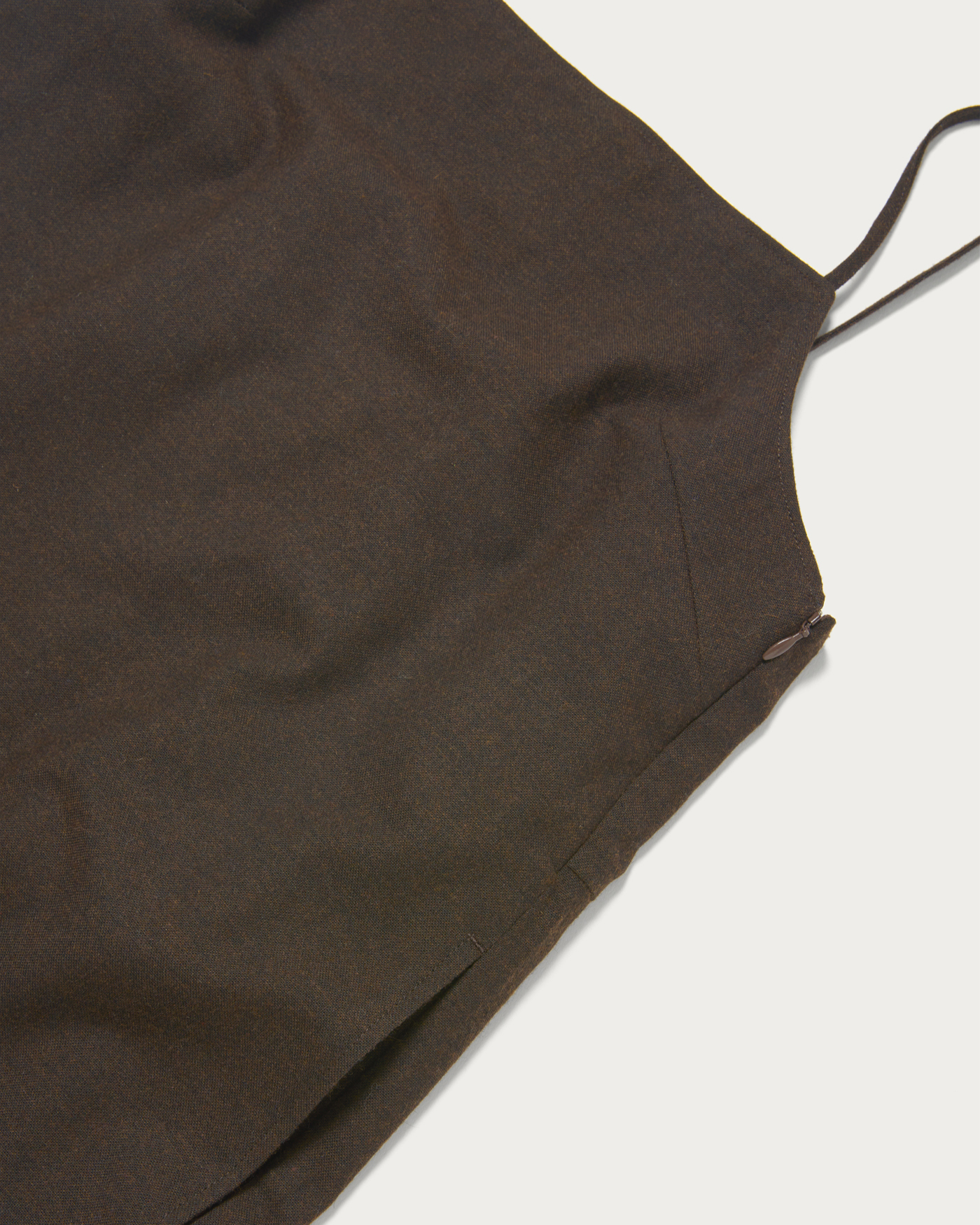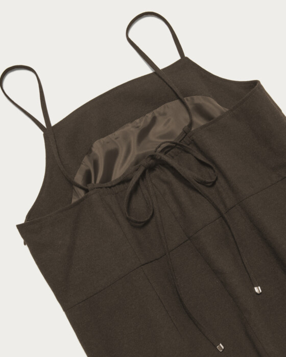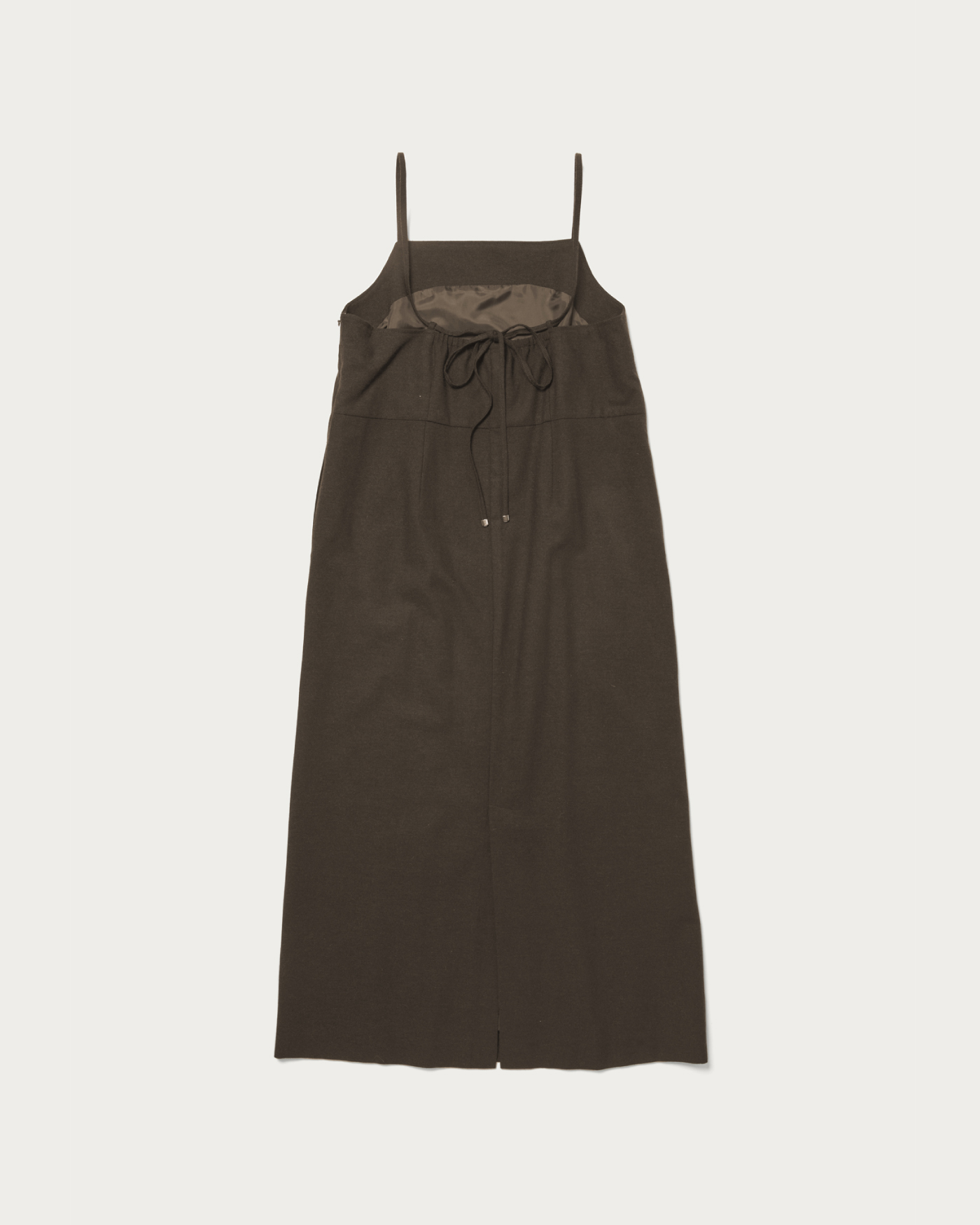 The camisole dress made from lightweight Saxony fabric features the high-quality warmth unique to wool, while its sharp I-line silhouette enhances femininity. Additionally, the back design incorporates trendy ribbon details for a subtle accent. It is recommended as a perfect item for winter outings. This piece combines elegance with a sense of trend, allowing you to enjoy a seasonally rich style.