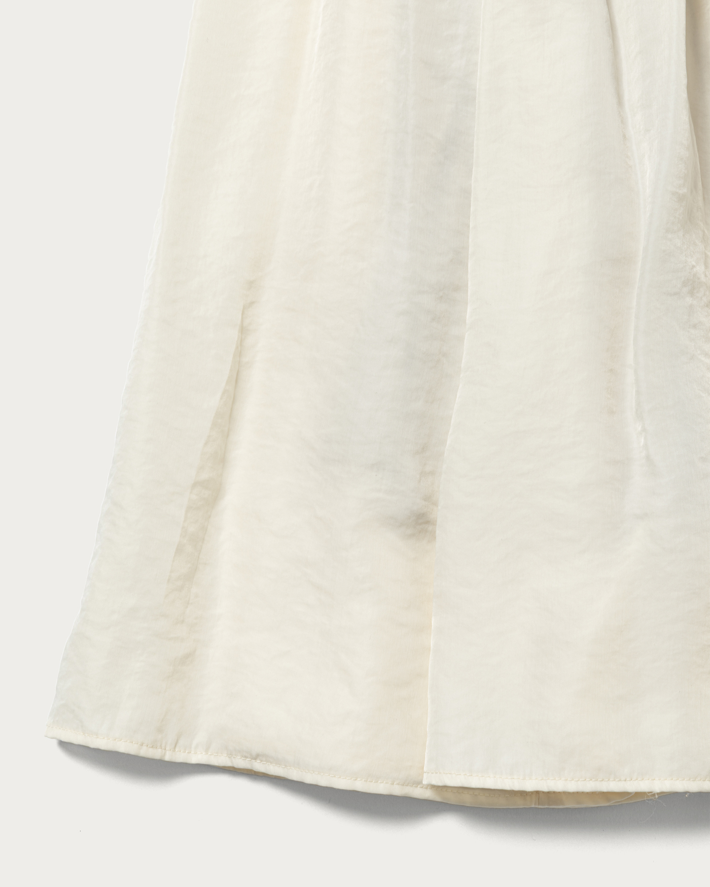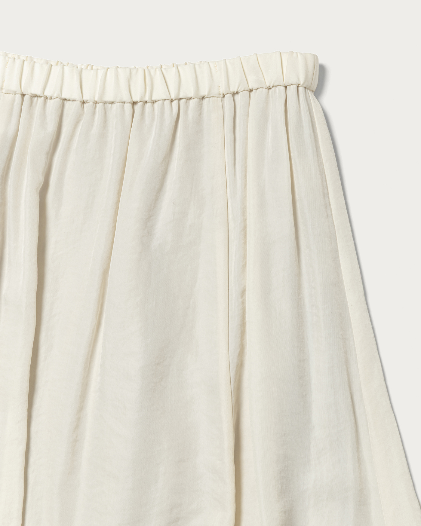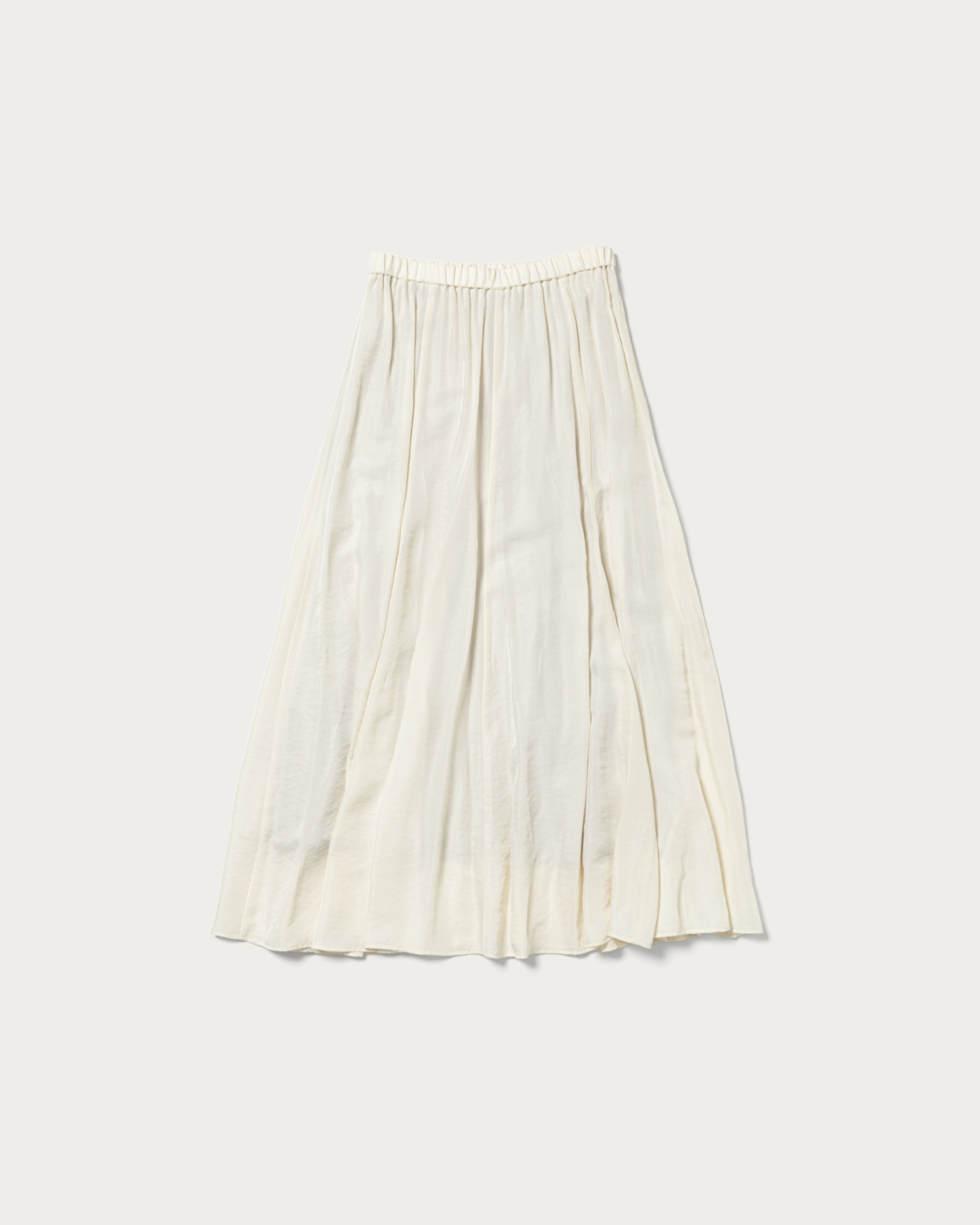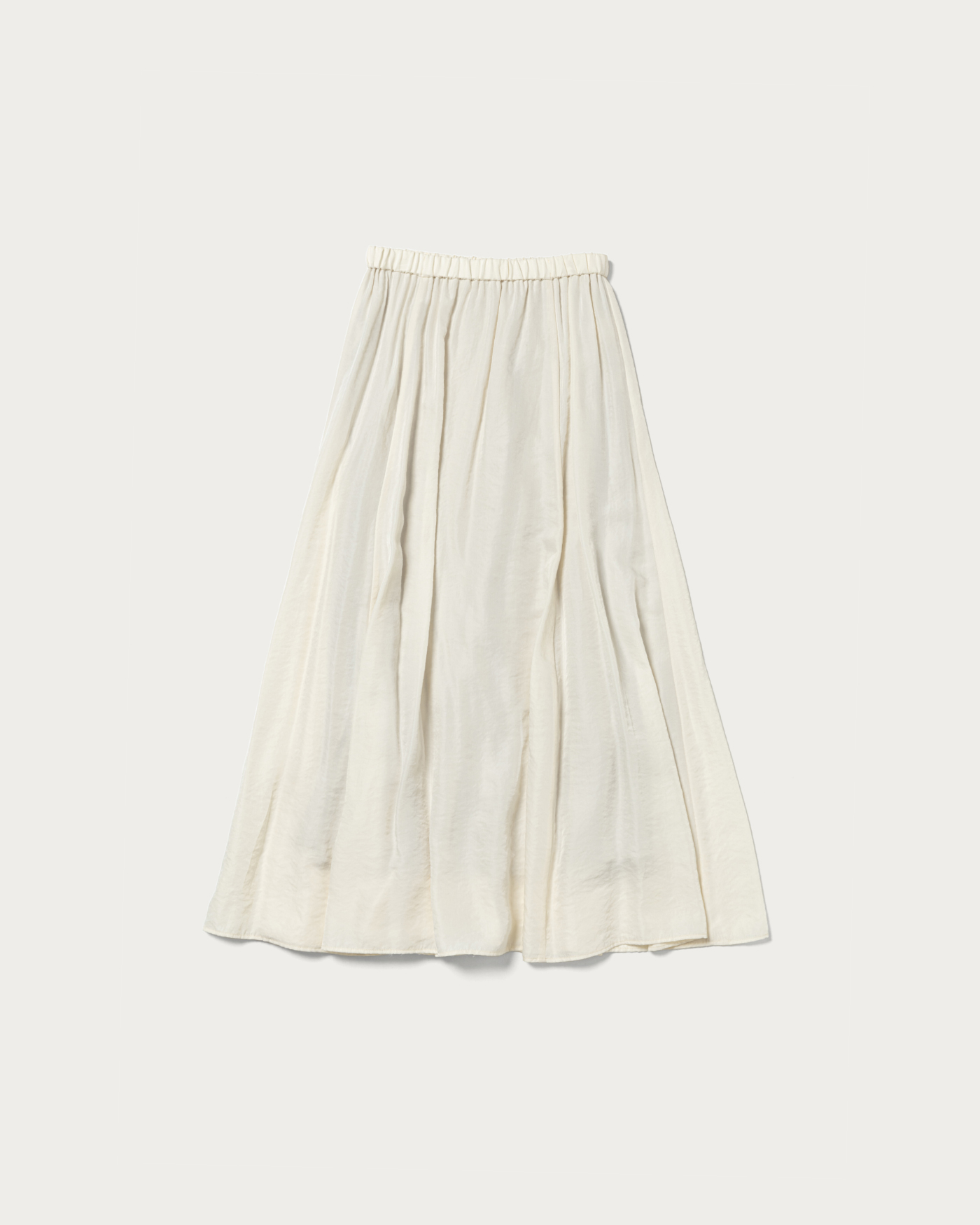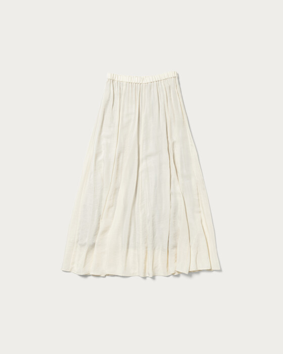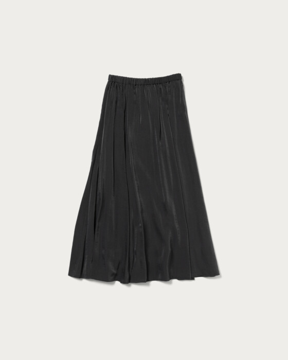 This is a narrow flare skirt with a moderate drape, perfect for winter styling. The flared silhouette is charming, creating a feminine and elegant impression even when paired with voluminous knits or outerwear. The waist features an easy elastic design, allowing you to enjoy a comfortable, relaxed fit.
