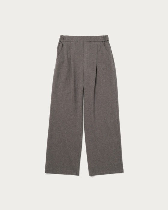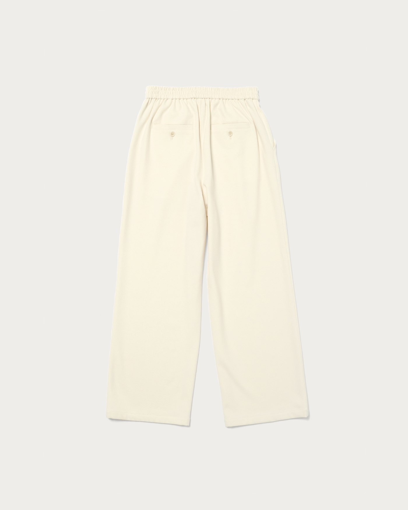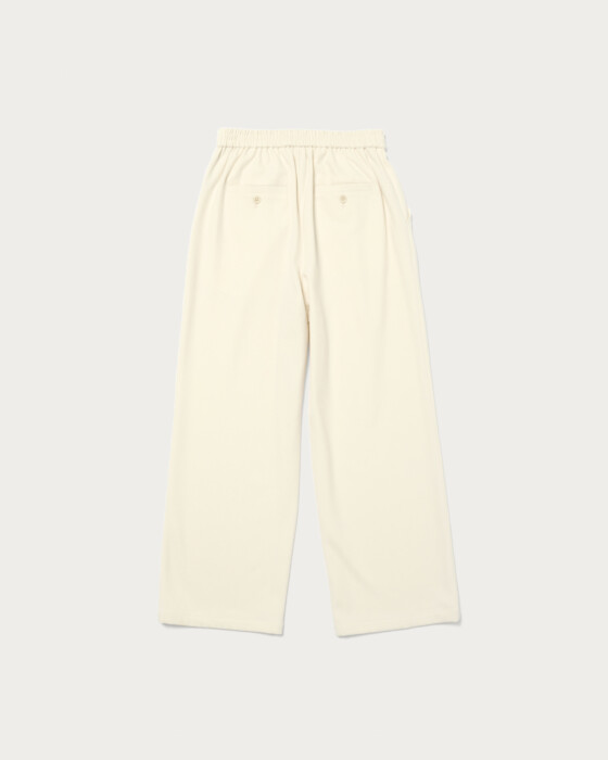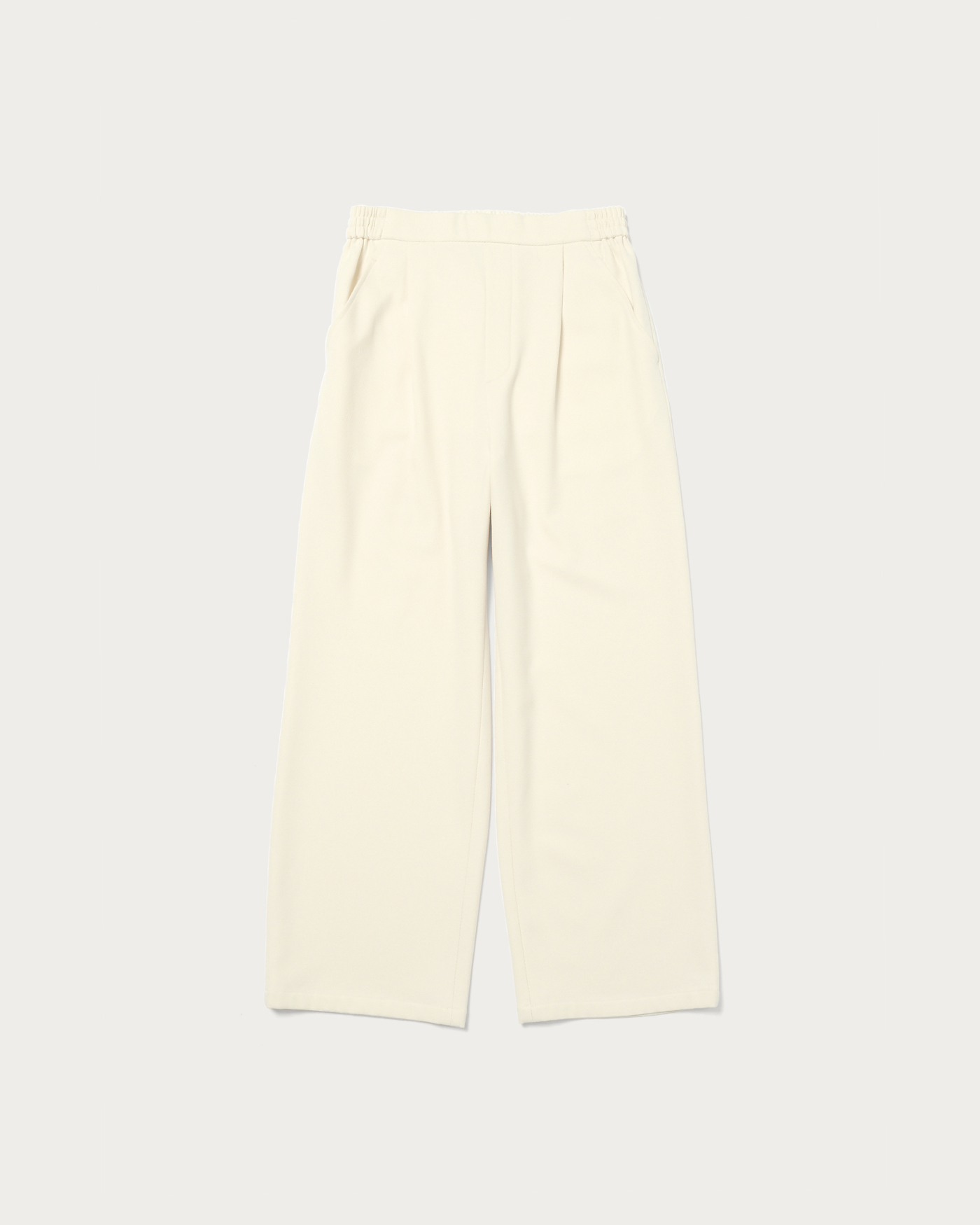 These wide pants are popular for their use of a soft, brushed-back material that feels great against the skin and their perfectly balanced straight-wide silhouette that isn't too baggy. The waist features a back elastic for a comfortable fit, while the details ensure a polished look even when tucked in. Additionally, the inclusion of an inner drawstring allows you to adjust to your preferred size, which is another delightful feature.