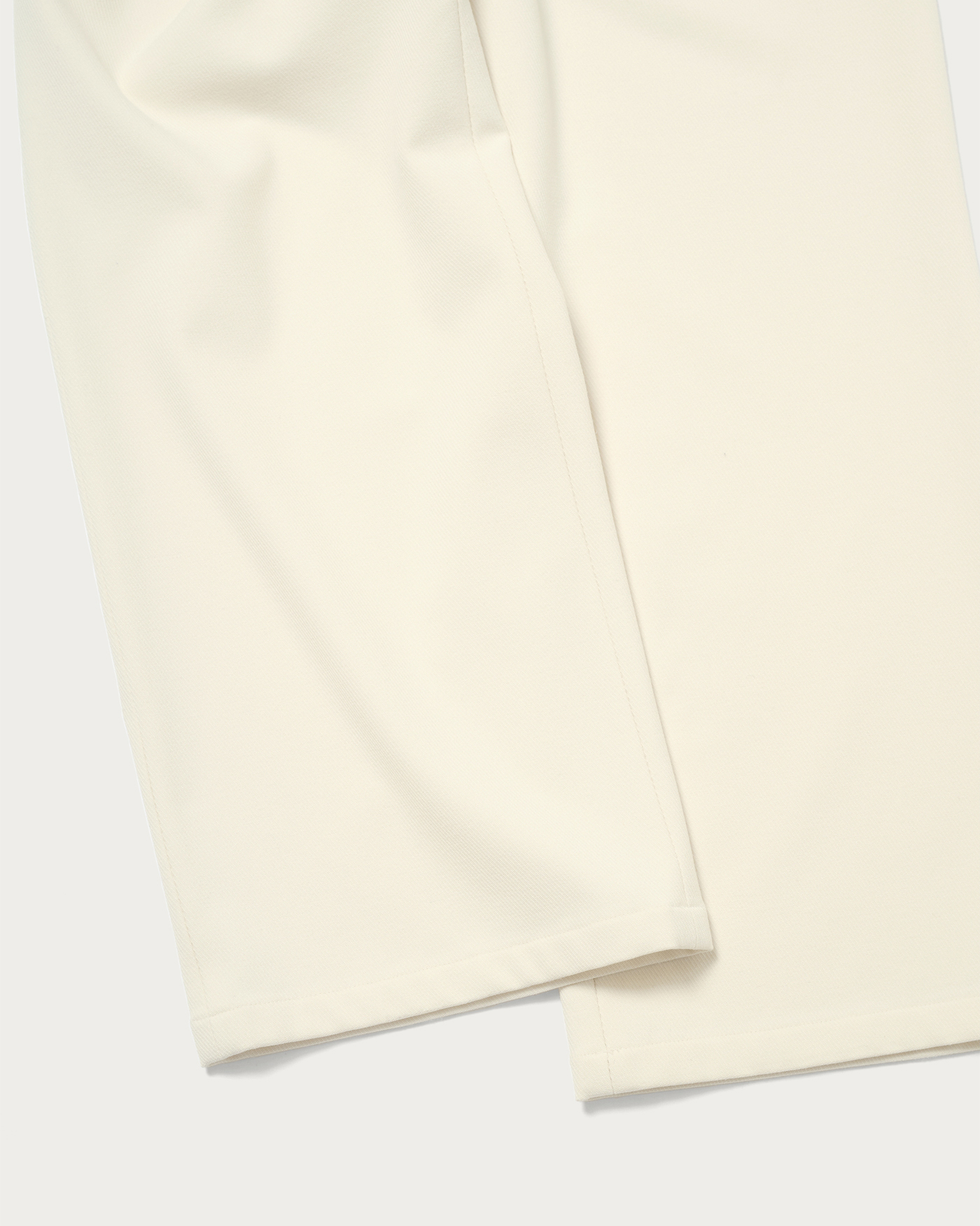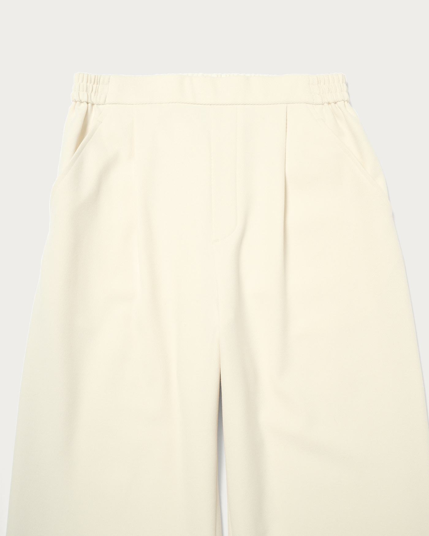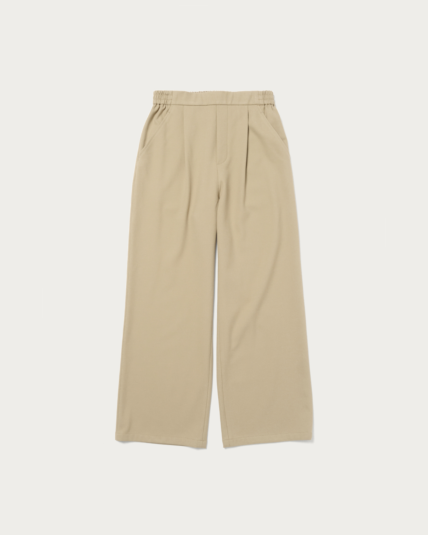 These wide pants are popular for their use of a soft, brushed-back material that feels great against the skin and their perfectly balanced straight-wide silhouette that isn't too baggy. The waist features a back elastic for a comfortable fit, while the details ensure a polished look even when tucked in. Additionally, the inclusion of an inner drawstring allows you to adjust to your preferred size, which is another delightful feature.