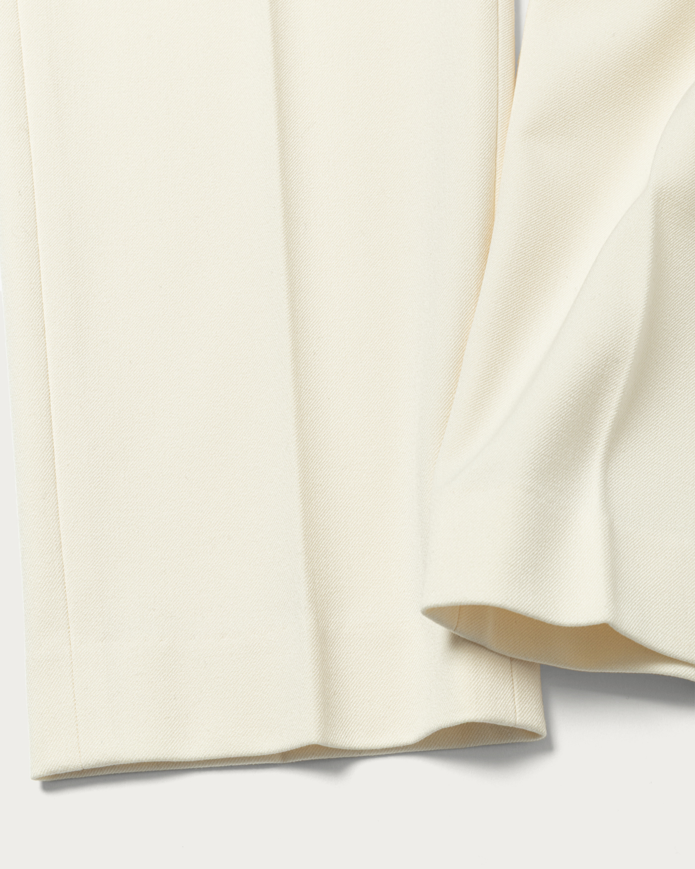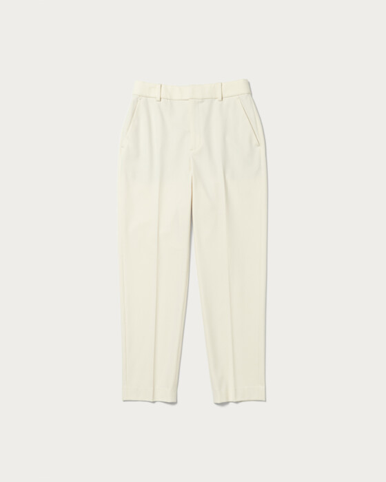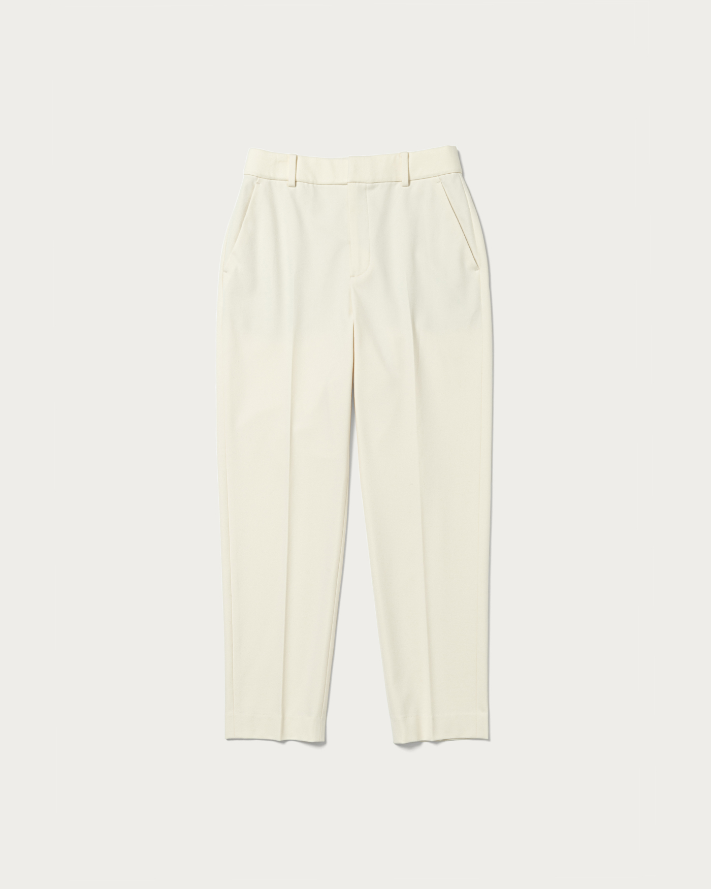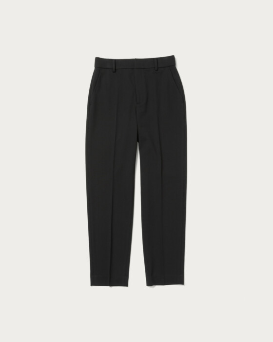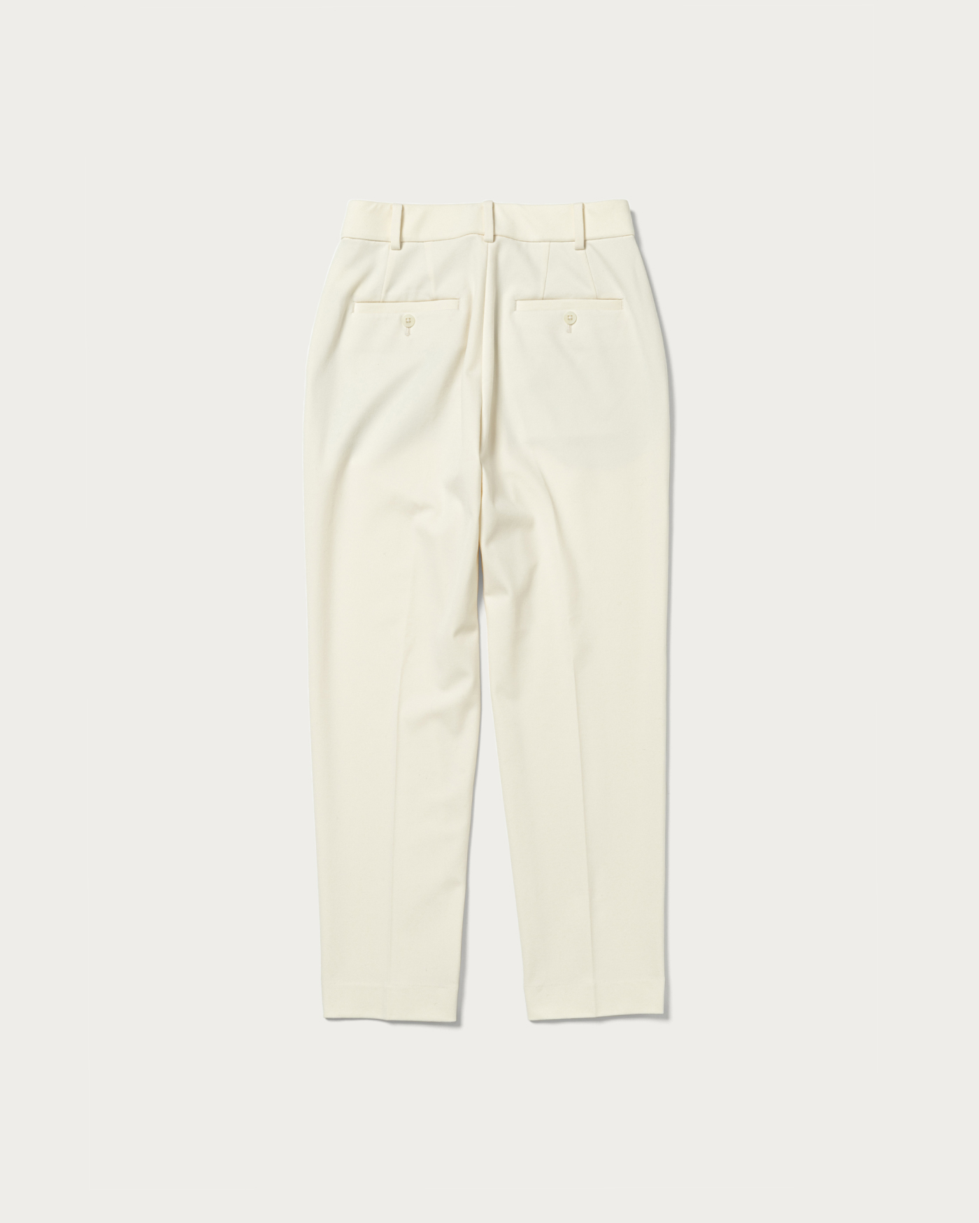 The "ALL FIT PANTS" are designed to fit any body type. The key feature is the perfectly tapered silhouette that isn't too tight. While the interior is lined with warm brushed fabric, the exterior has a sleek texture, allowing you to wear them with an elegant impression.