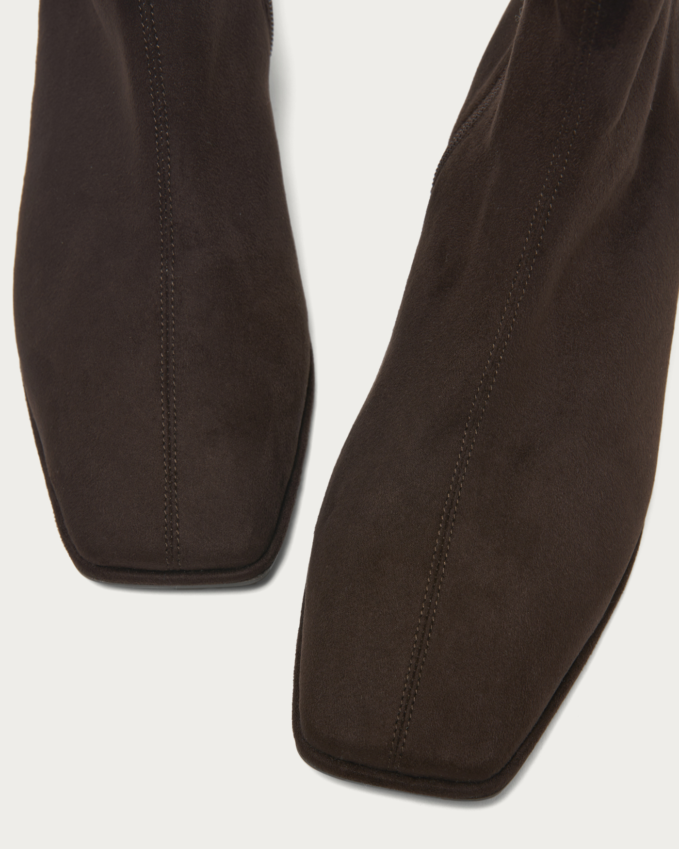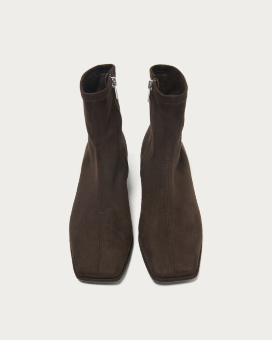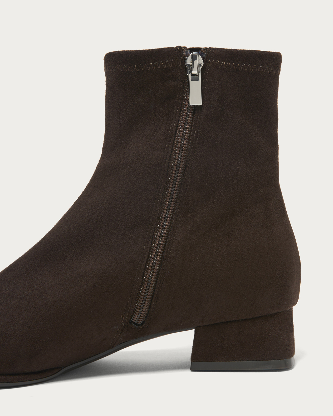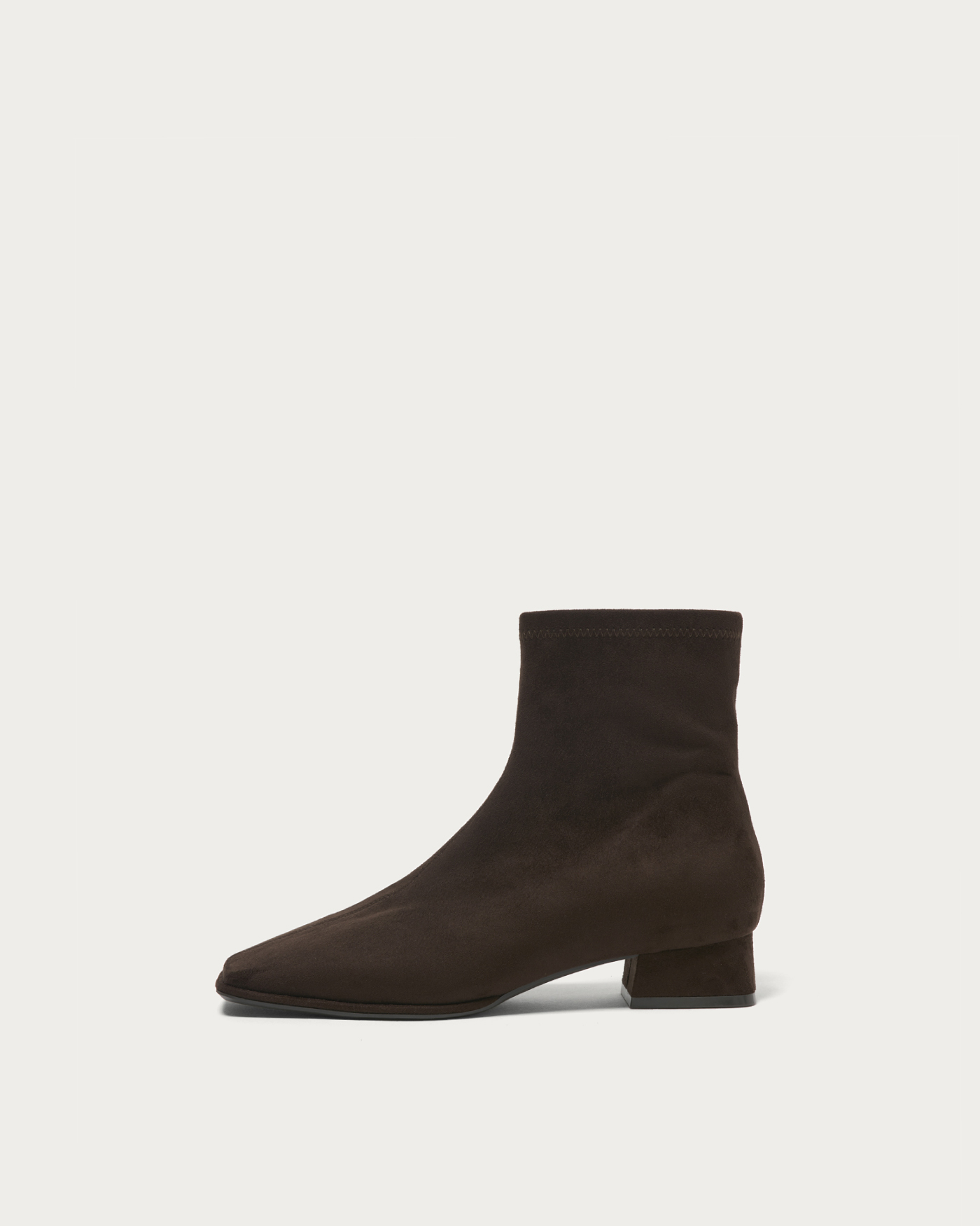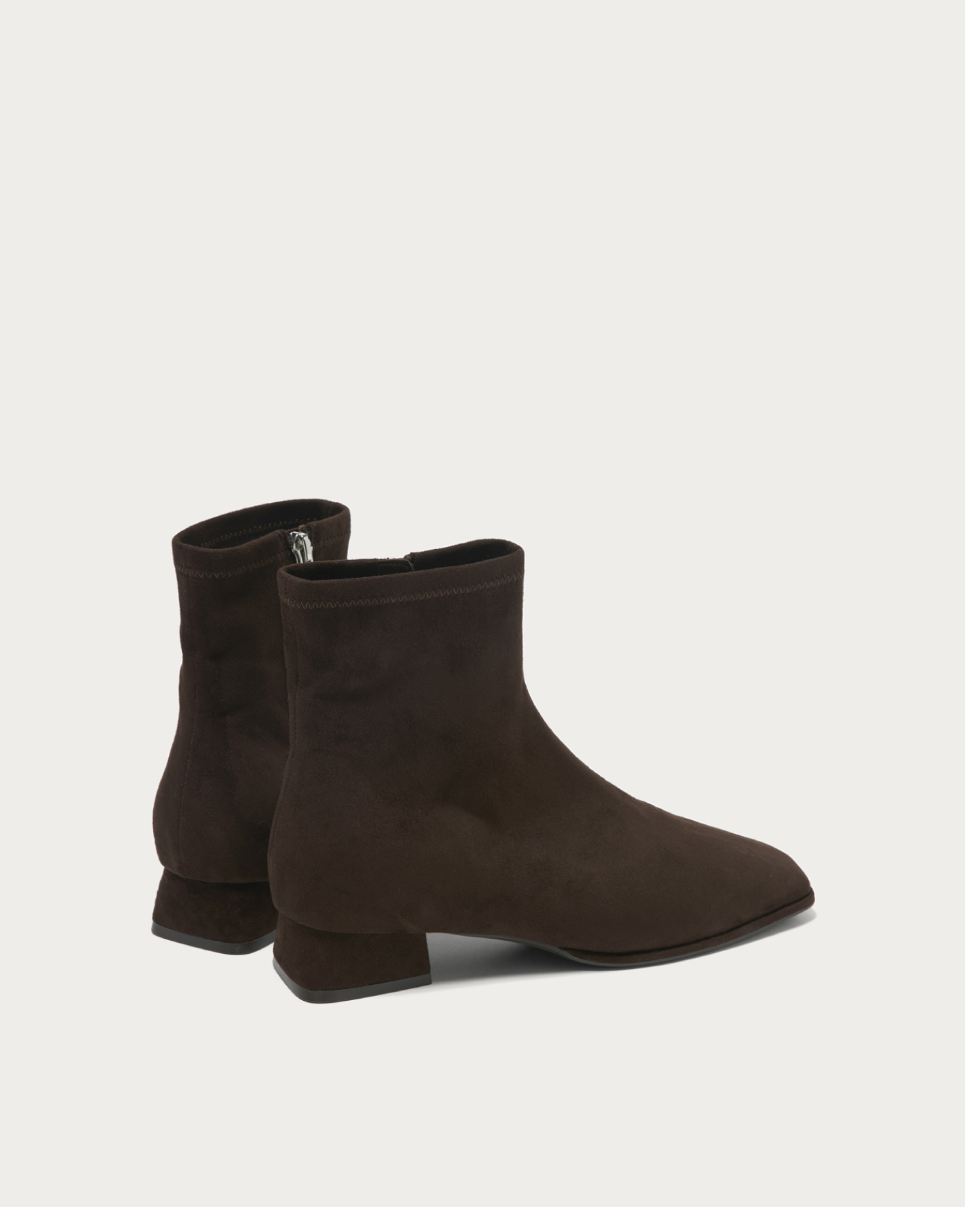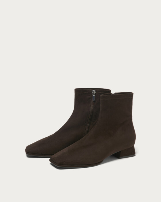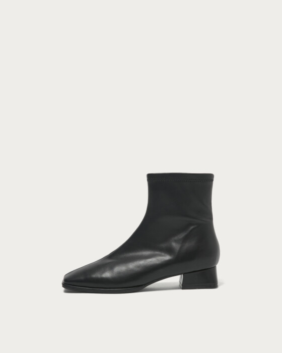 Comfortable stretch material short boots are a versatile item that can be worn not only in the fall and winter but also through spring. They feature a simple and polished finish, yet incorporate a trendy square-toe design for a casual feel. The 3cm heel adds to their appeal, offering both ease of walking and a sleek appearance.