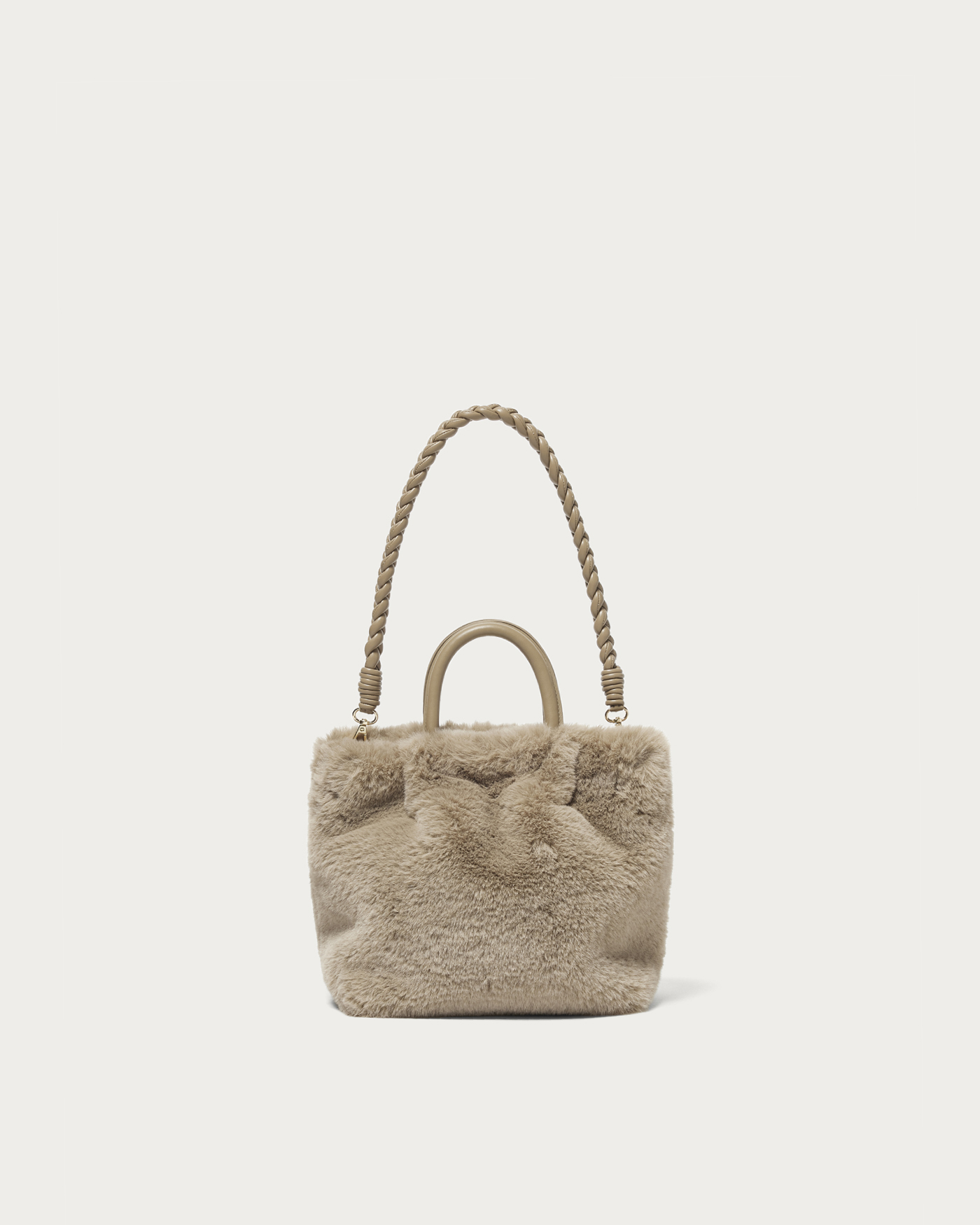 This is a tote bag made from a fluffy, fur-like material that has been well-received every year. In addition to a simple shoulder strap, it comes with a braided design shoulder strap that adds an accent, allowing you to switch according to your mood or style. It's a highly recommended item that combines a soft texture with a sense of design, overflowing with seasonal charm.