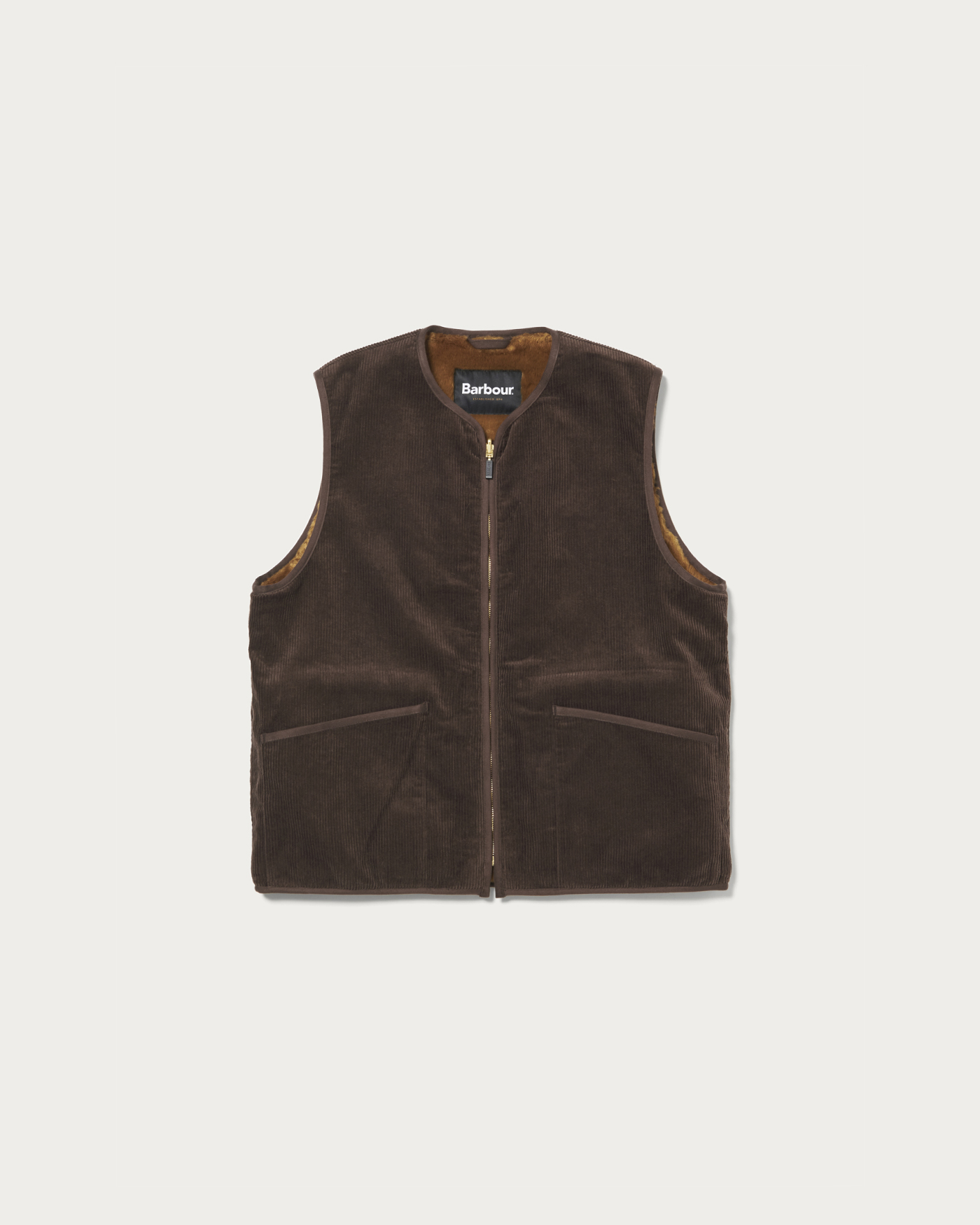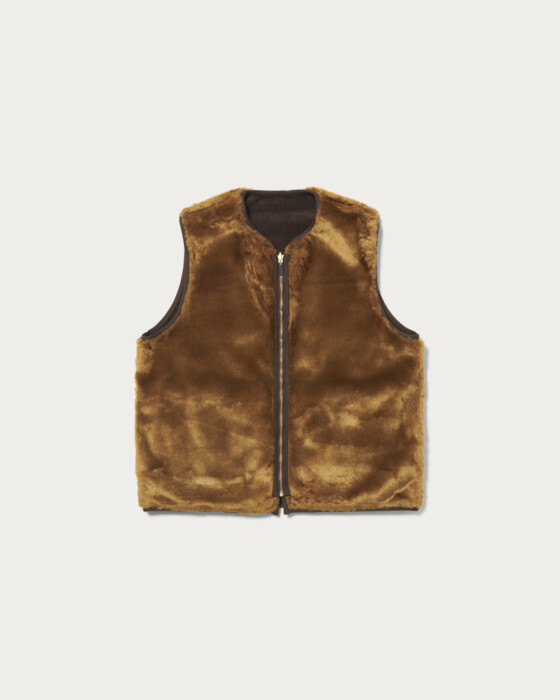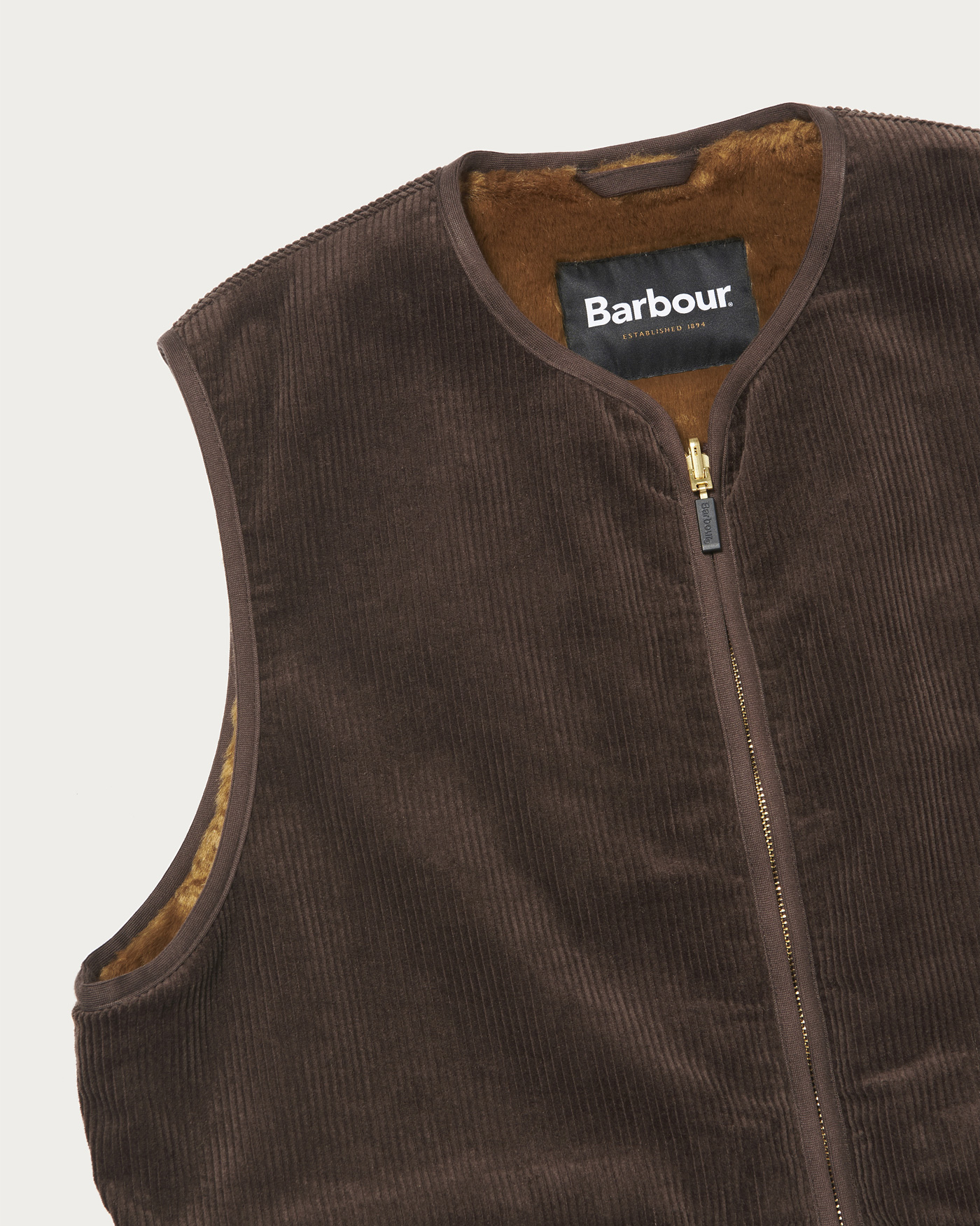 Green Label Relaxing has created a special edition of Barbour's classic model. The reversible fur vest features one side made of corduroy material, with both sides unified in a brown color scheme. This classic masterpiece has been transformed into a sophisticated piece that seamlessly fits various styles.
