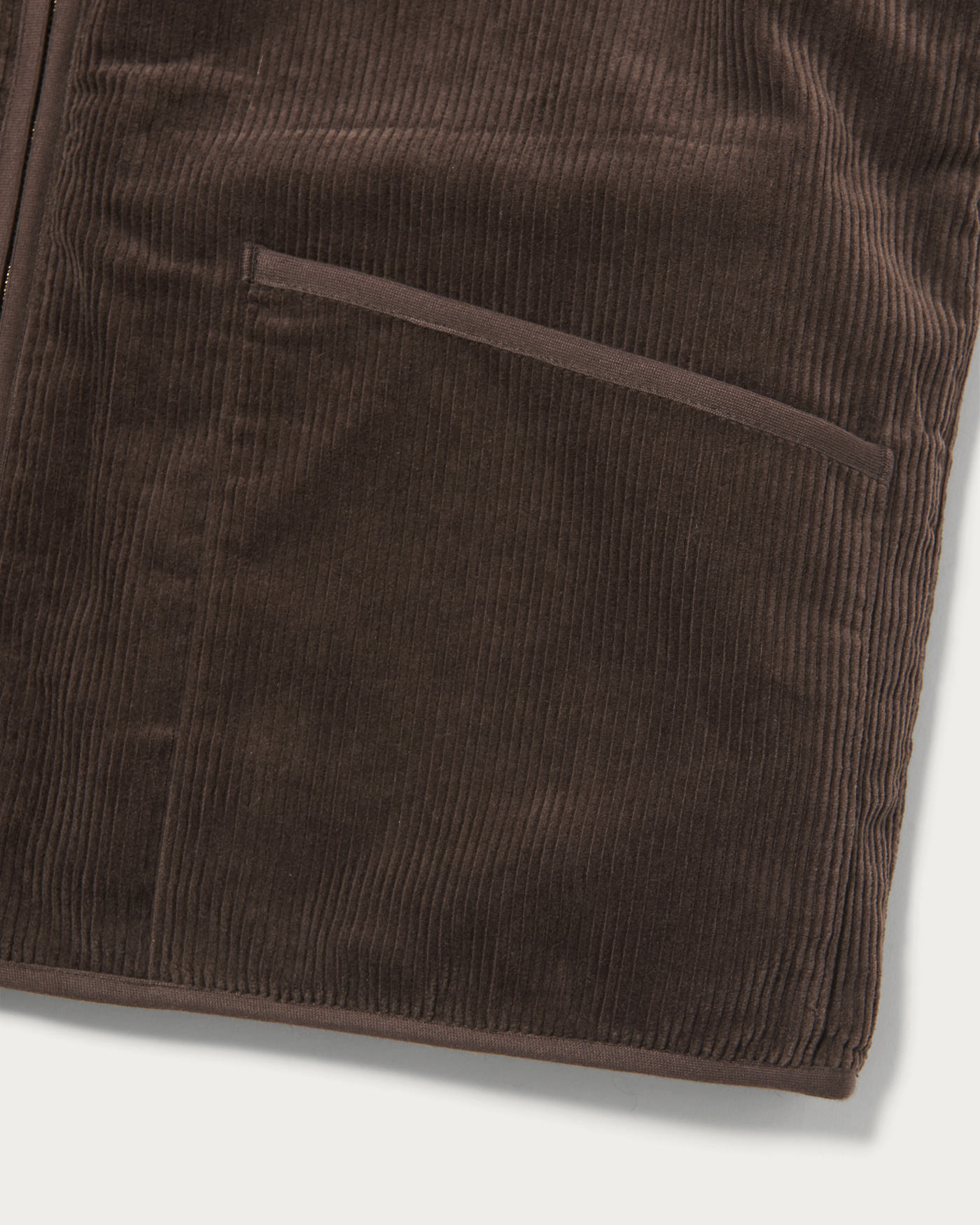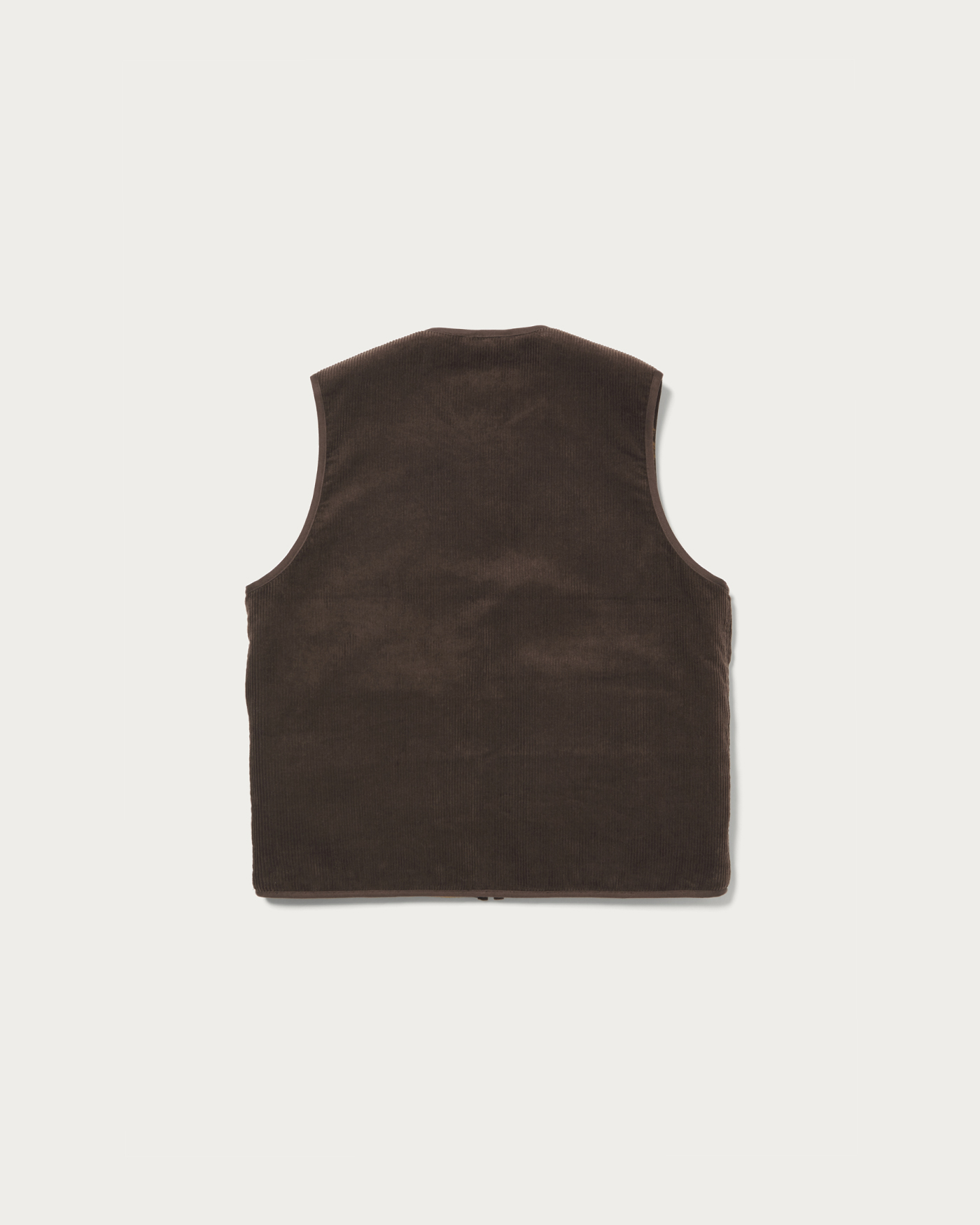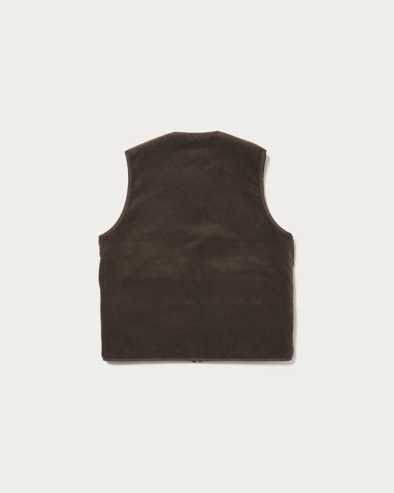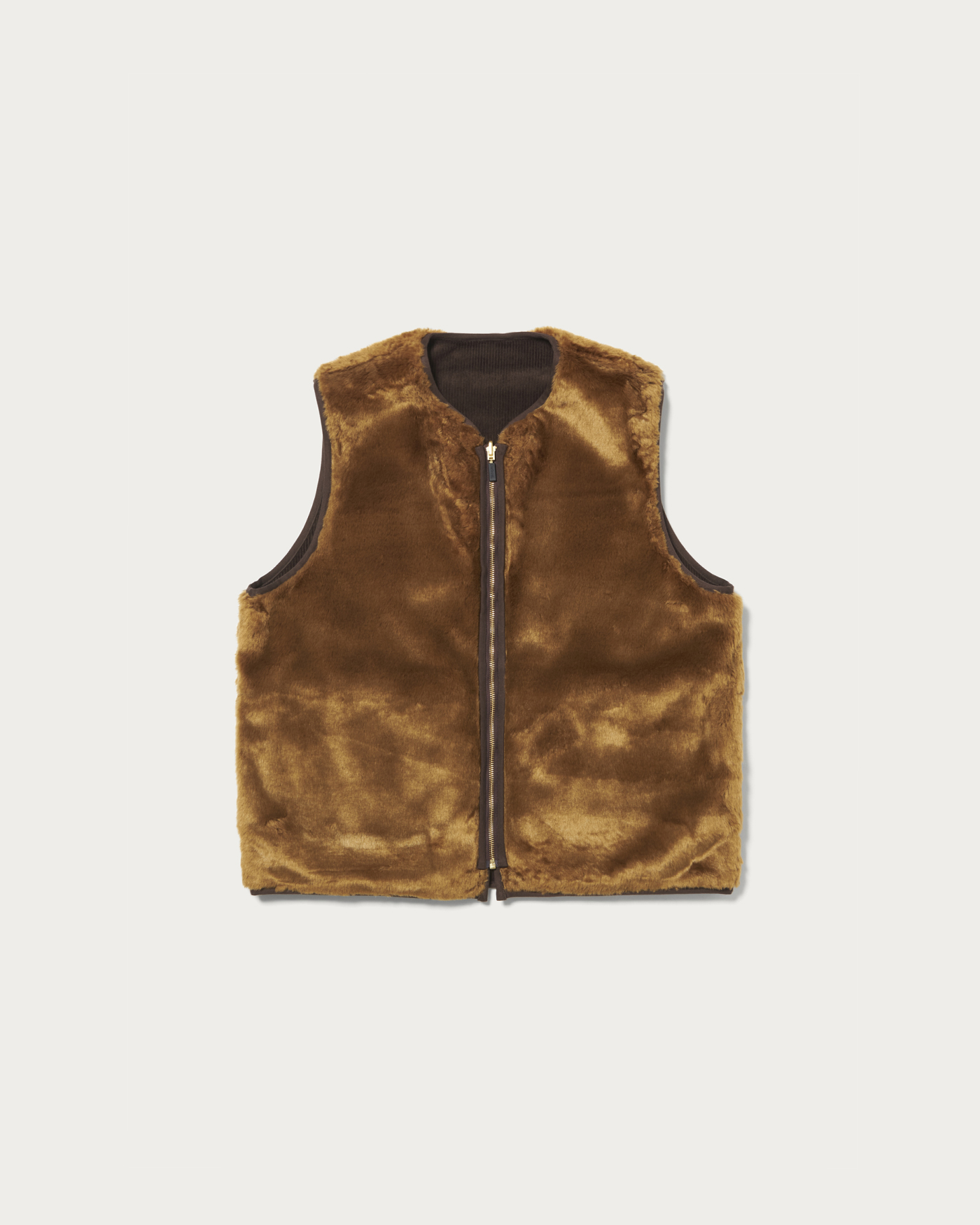 Green Label Relaxing has created a special edition of Barbour's classic model. The reversible fur vest features one side made of corduroy material, with both sides unified in a brown color scheme. This classic masterpiece has been transformed into a sophisticated piece that seamlessly fits various styles.