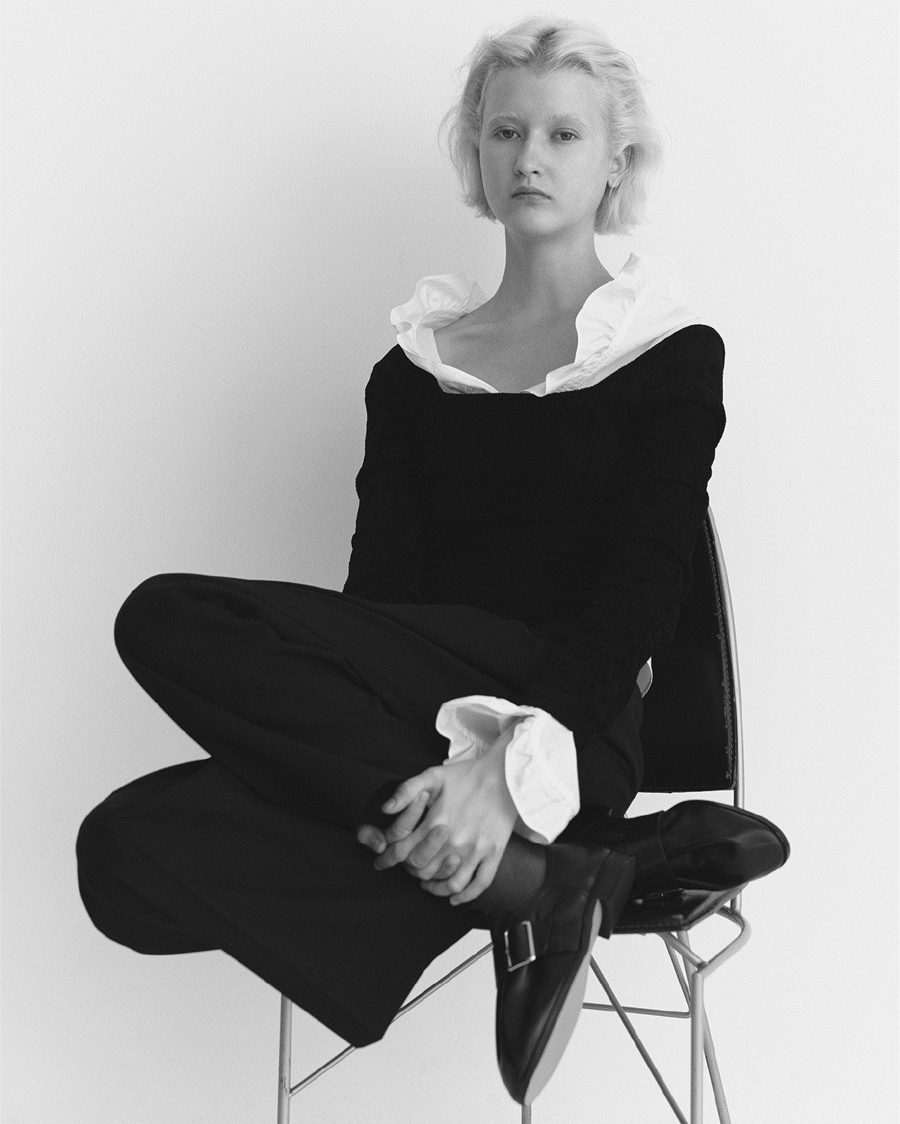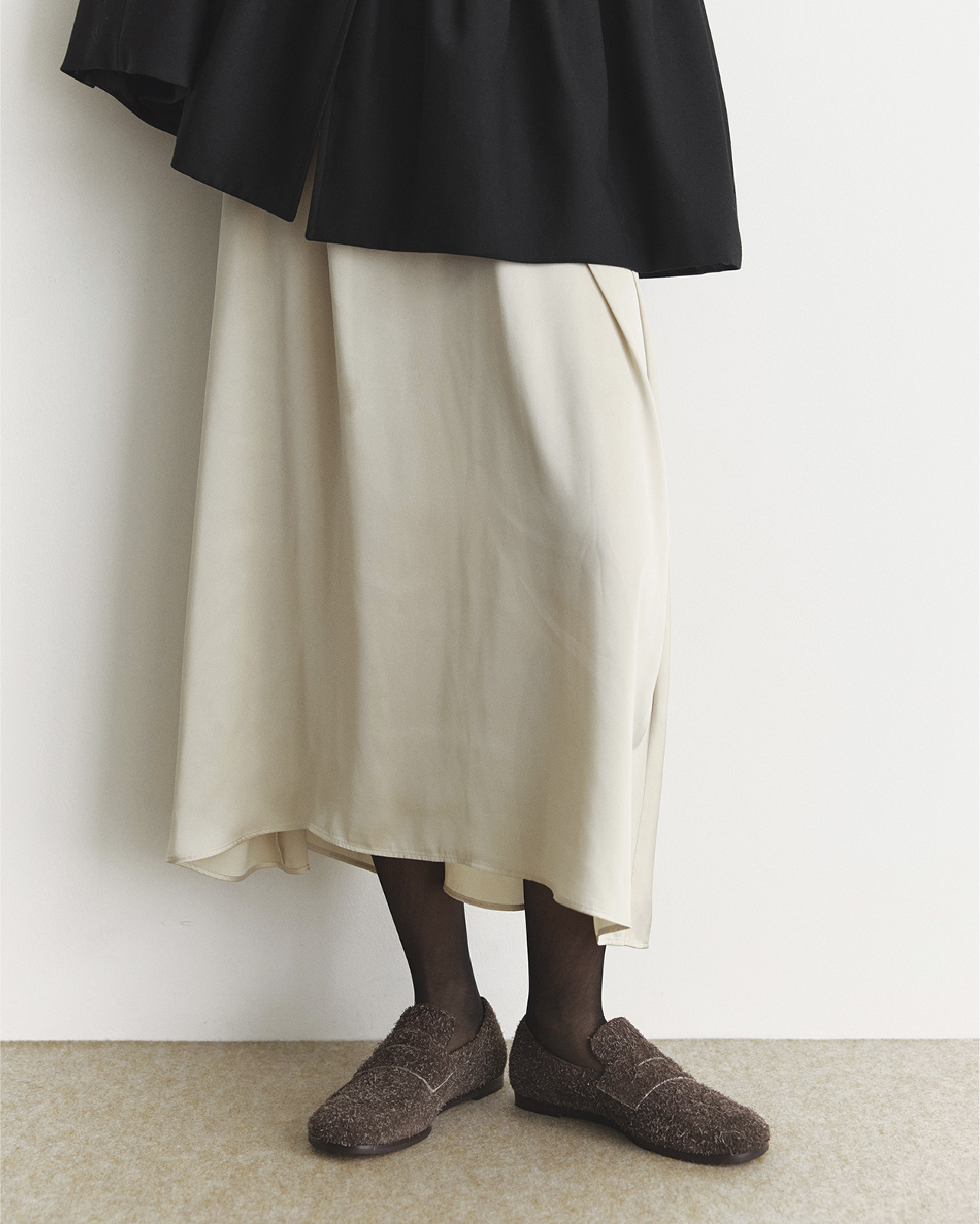 It features emotionally rich, imaginative pieces crafted from textures such as boa, fur, and lace.