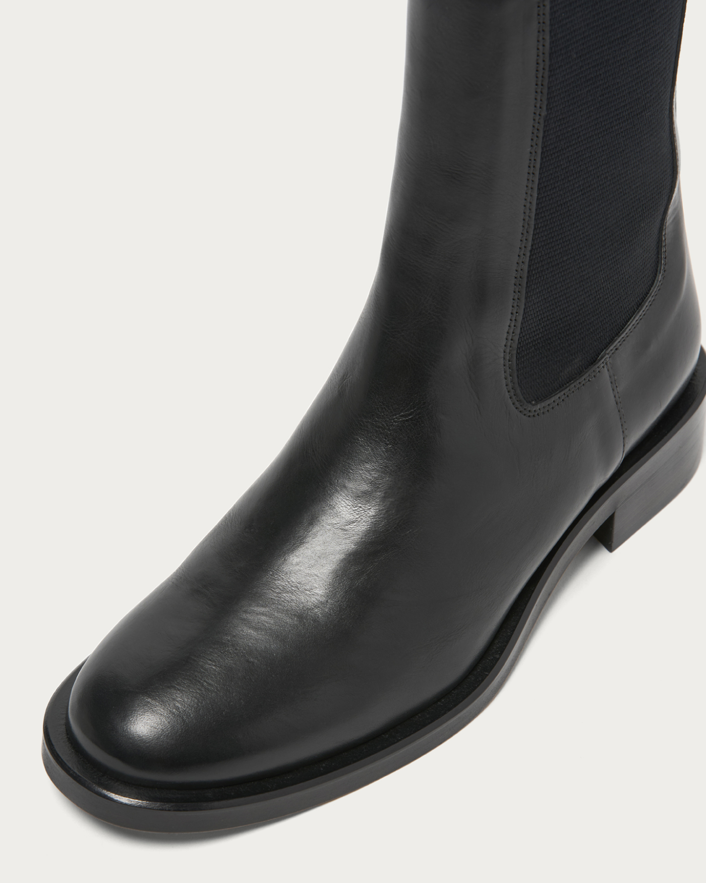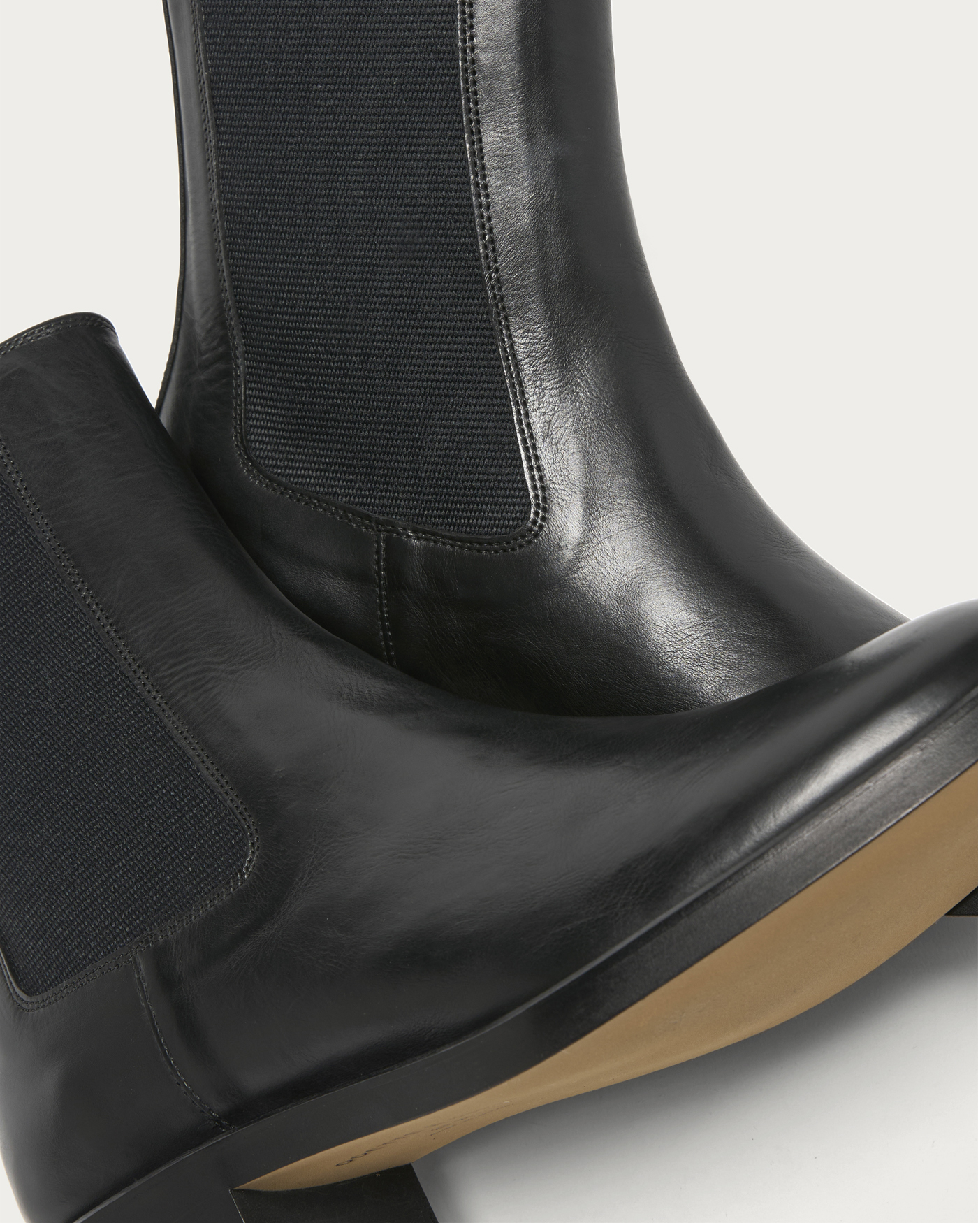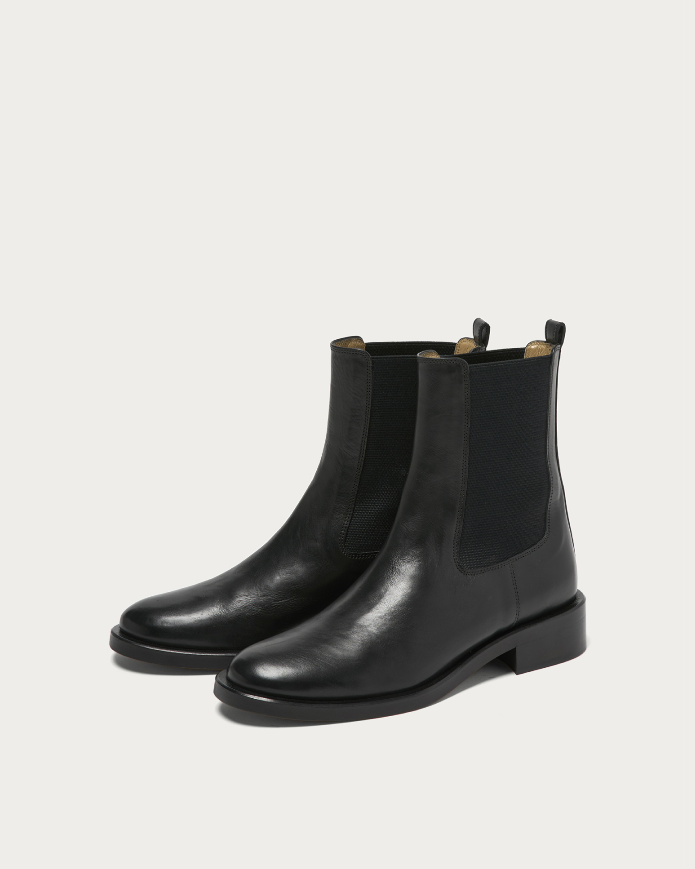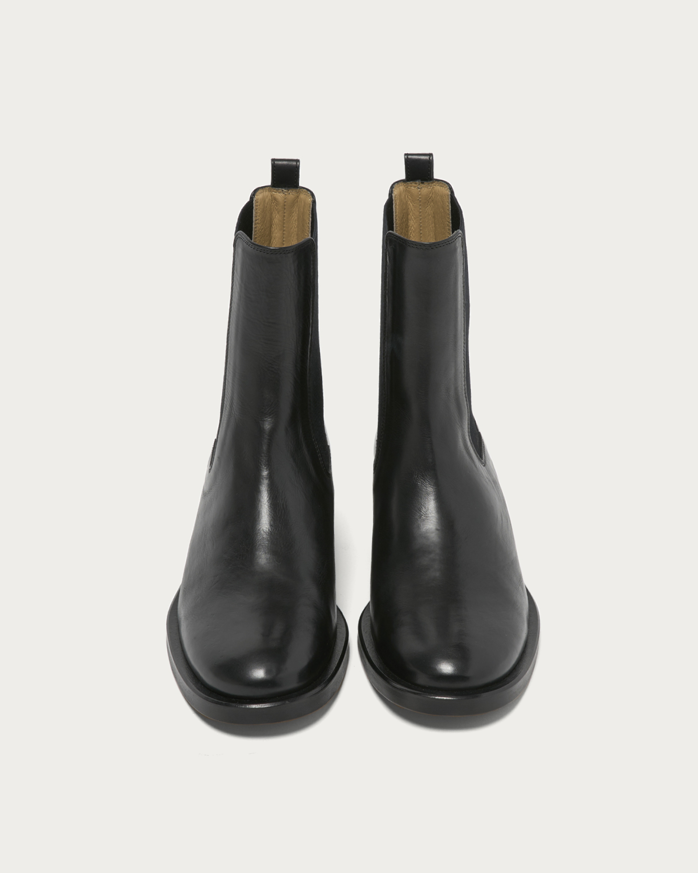 Side gore short boots from the New Classic series, crafted with high-quality materials. The sleek edging and slim ankle line add a touch of femininity to their masculine silhouette. These boots are versatile enough to complement both casual and smart outfits, and their genuine leather texture becomes more appealing with wear, making them a long-lasting favorite.