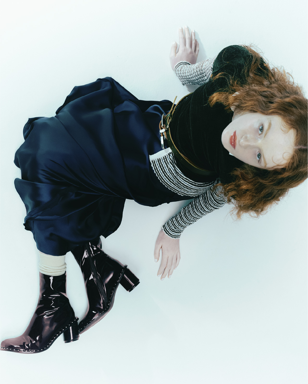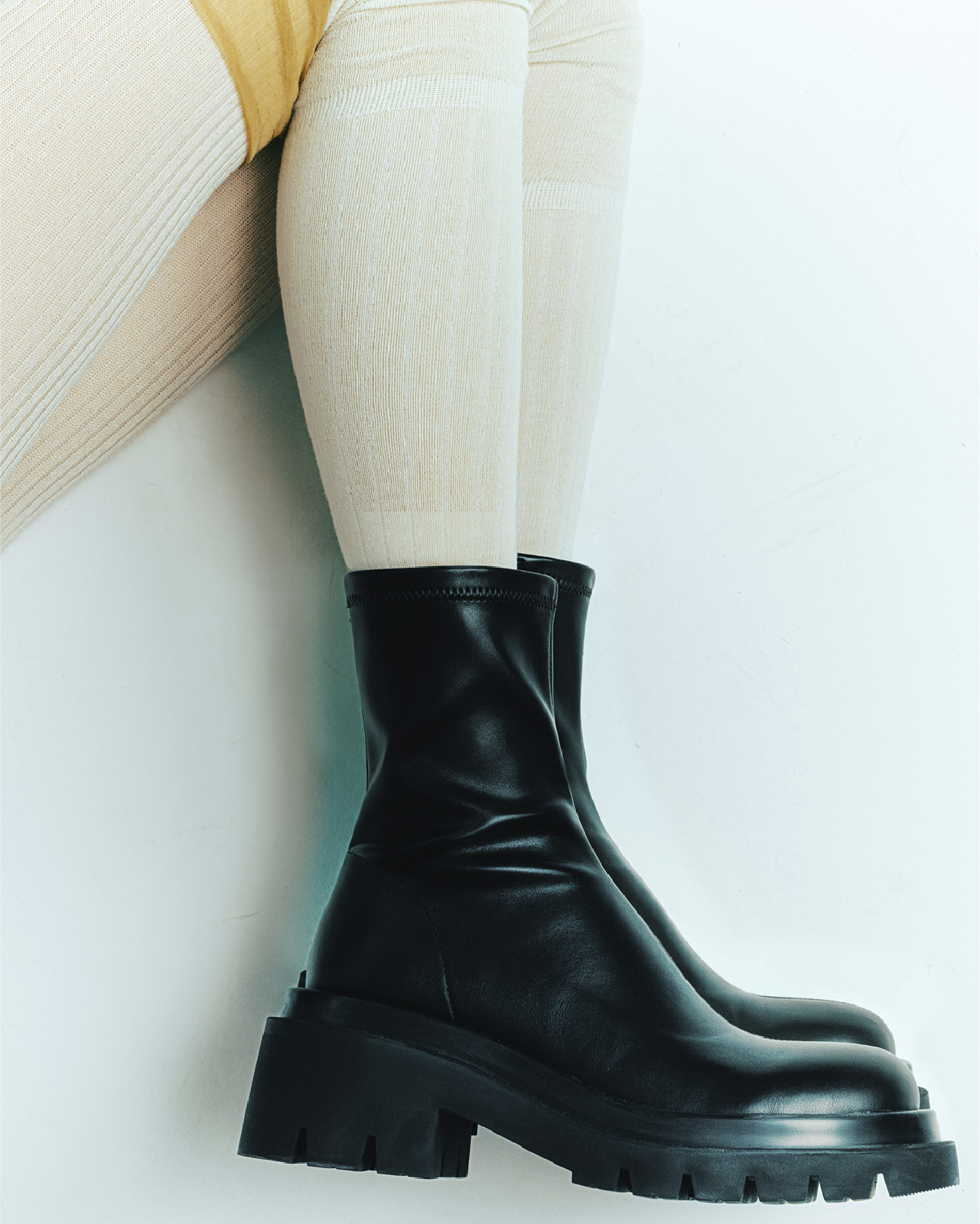 “Y2K,” expressed through stylings that balance bottoms and legwear;