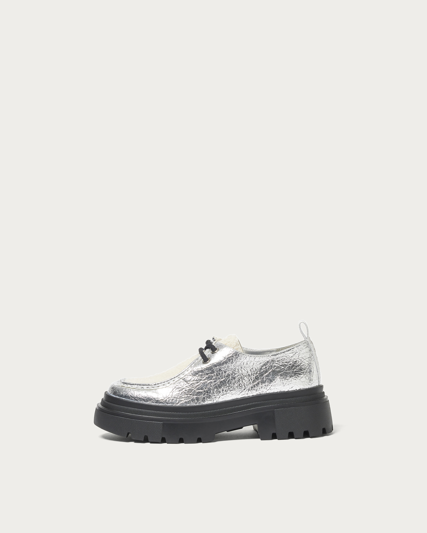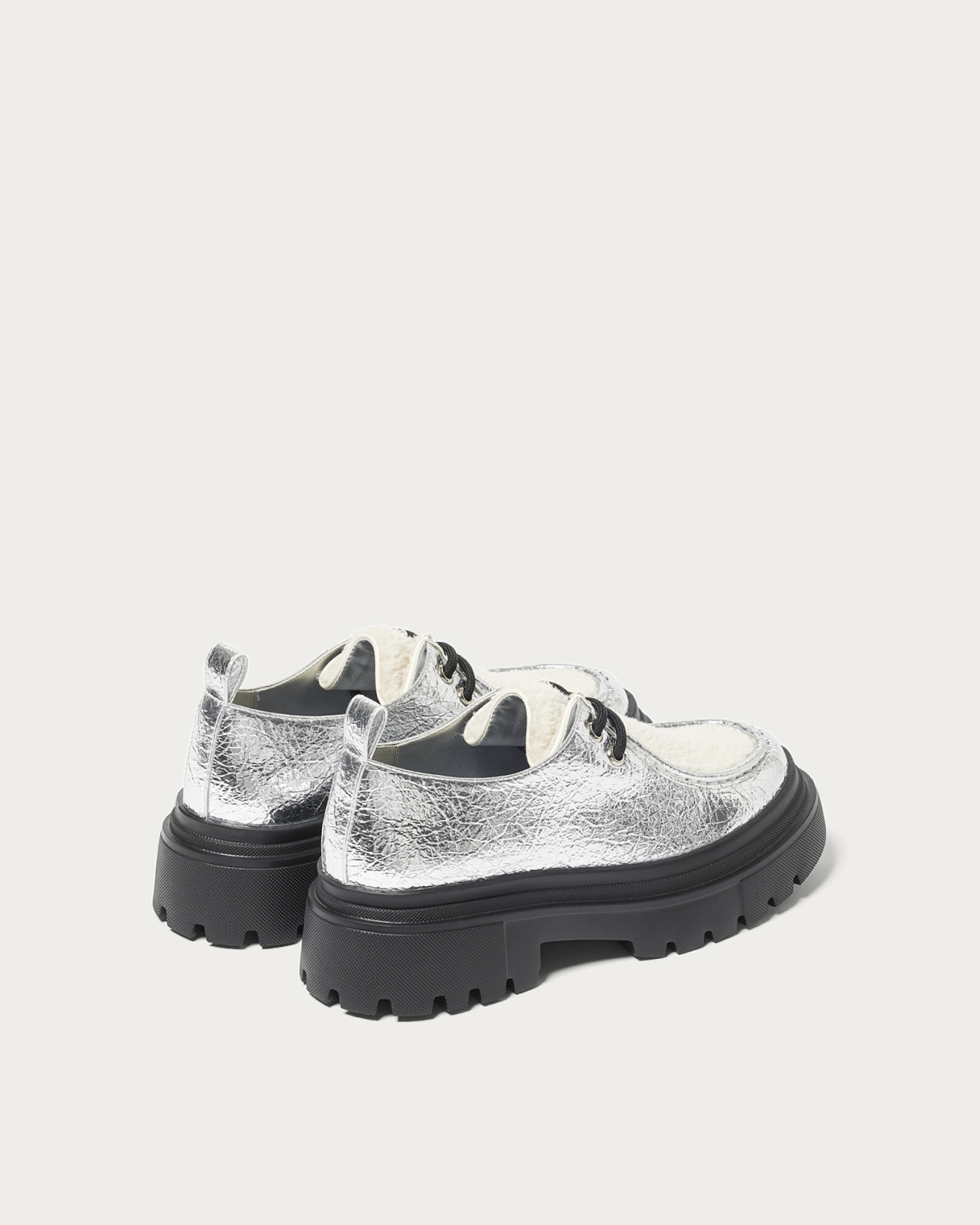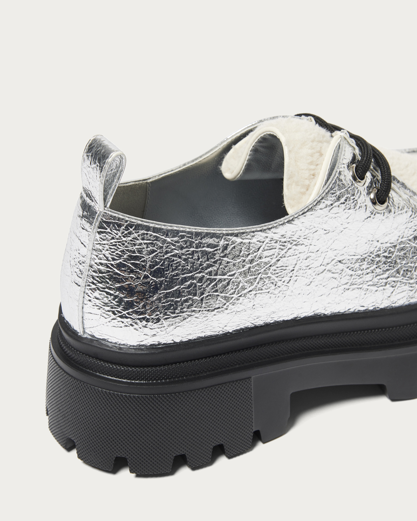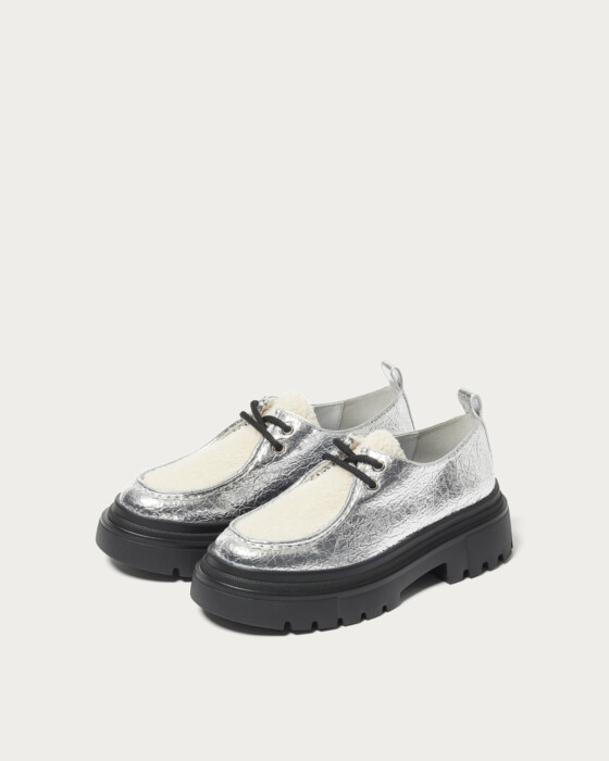A striking pair of shoes that combines a tank sole with a Tyrolean design. The glossy black and dark brown options serve as timeless staples, while the combination colors with boa add a playful touch. Pair them with a pleated skirt for a traditional vibe. They will enhance your winter outfits with a polished finish.