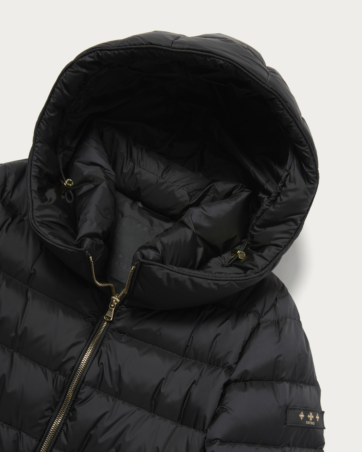 A down jacket specially ordered from 〈TATRAS〉, which made its Japan debut in the 2007-2008 Autumn/Winter collection as a functional and high-quality outerwear brand by blending high-quality European materials with sophisticated design. This piece is an updated version of 〈TATRAS〉's popular standard mid-length model "KOSAVA," with the outer fabric changed to a semi-shiny material for a more refined look. The zipper has been updated from black to gold to enhance its elegance.