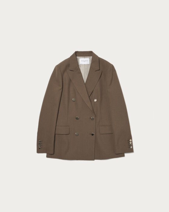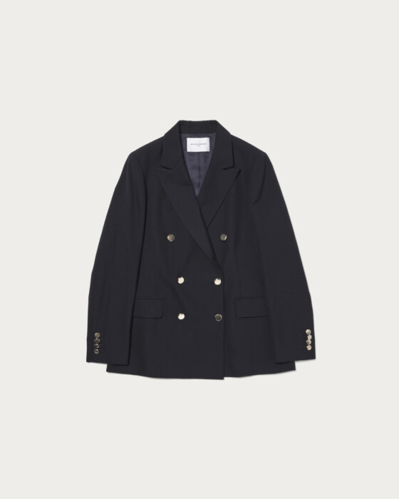 A blazer with a classic charm. This 6-button jacket features a sleek shoulder area and sharp peak lapels. The jacket, which has a masculine impression, is enhanced with soft gold buttons to add a touch of elegance. Simply wearing it gives a polished look, and it stands out on its own. It can be paired with shirts, blouses, or even lightweight knits, making it suitable for various occasions.