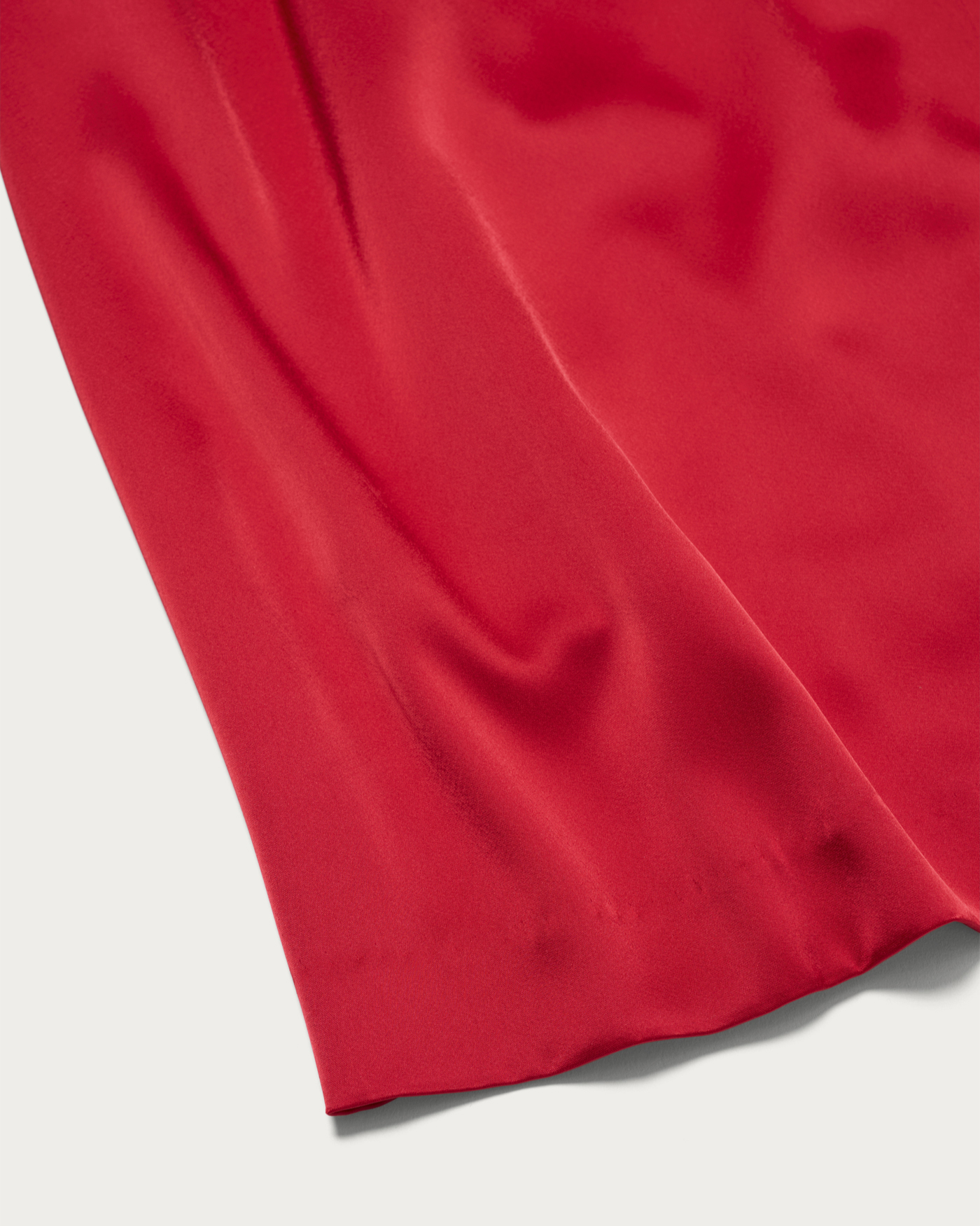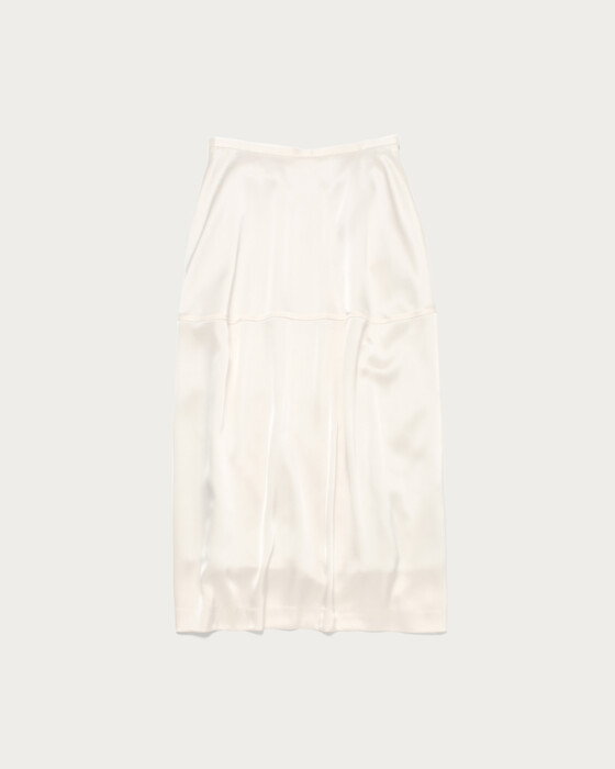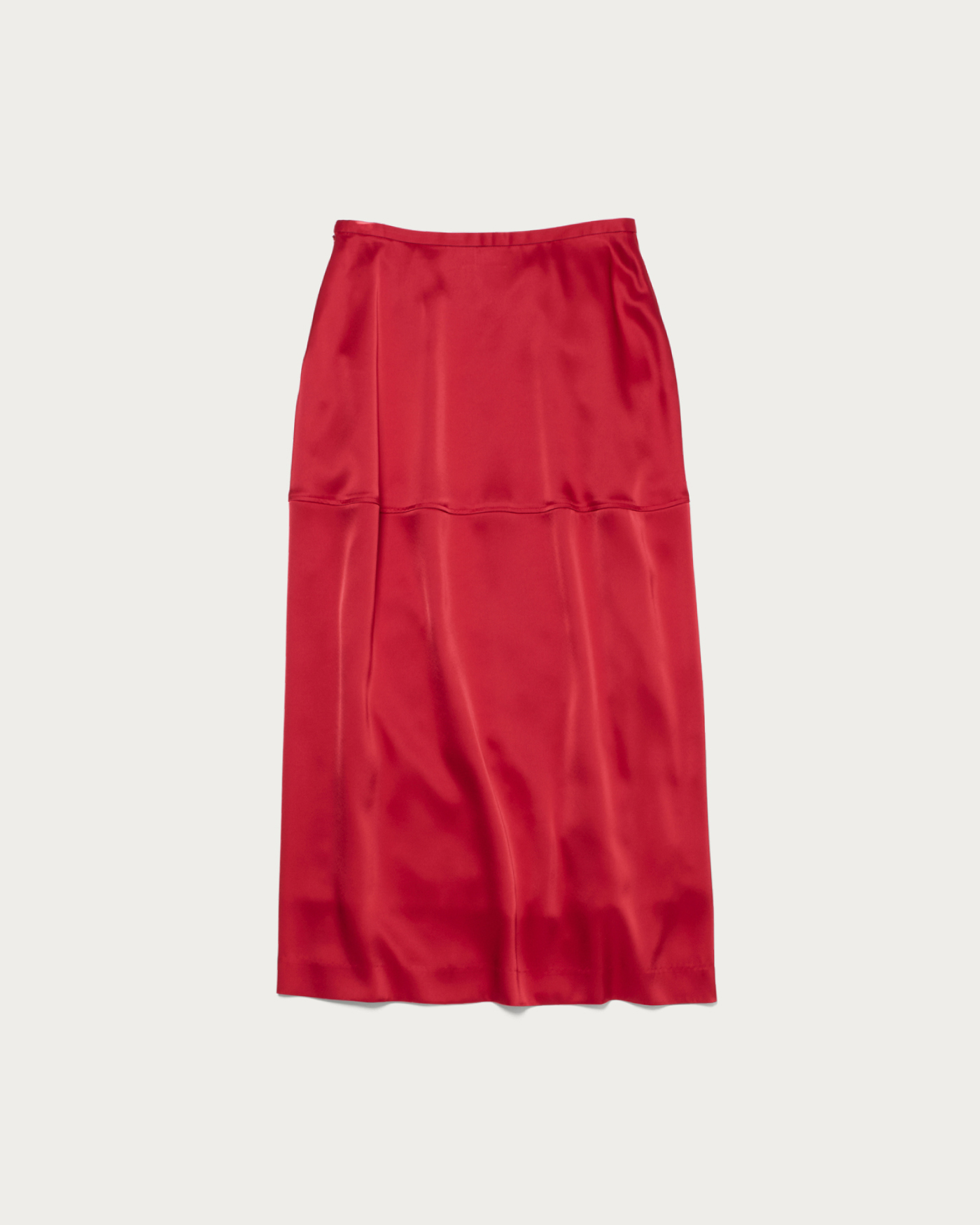 A satin skirt with a glossy material that adds an accent to your outfit. The paneling creates a slightly cocoon silhouette, making it a trendy piece. It features pockets and a lining, allowing you to wear it without worry, which is a delightful point. Pair it with textured knits or thick tops for a recommended coordination that combines materials with different textures.