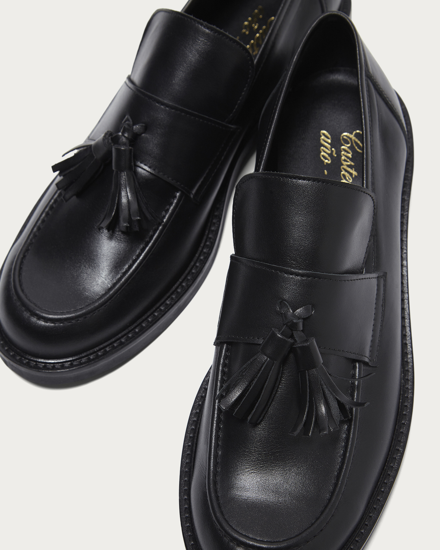 Founded in 1920 in Madrid, Spain, the shoe brand 〈CASTELLANO〉 is renowned for its gentle and soft construction that wraps around the foot. Its style and quality have received high praise both domestically and internationally. The tassel loafers, suitable for both on and off-duty occasions, feature a longer nose that gives a mannish impression. With their formal appeal, they are a standout item for the fall and winter seasons.