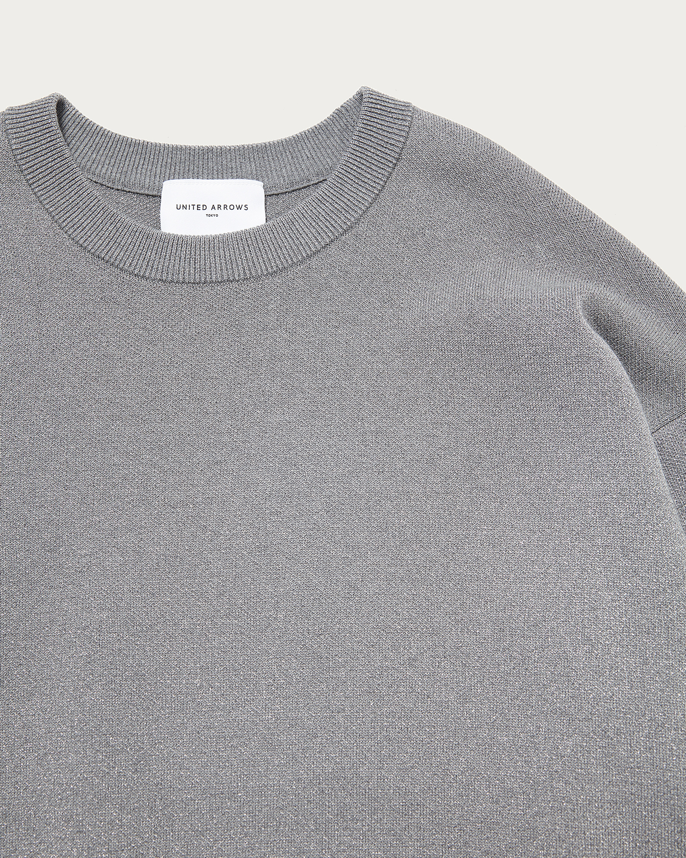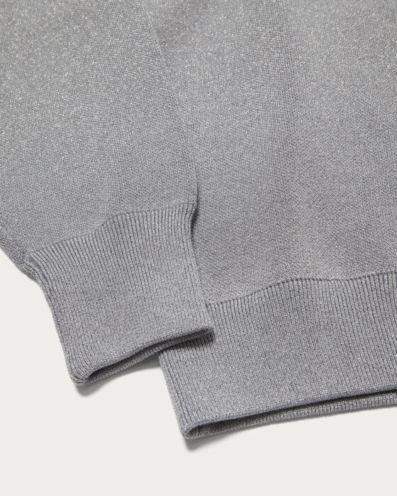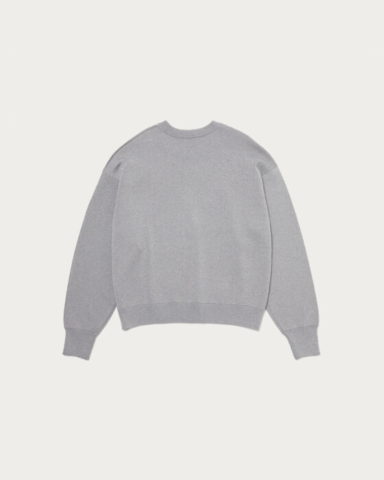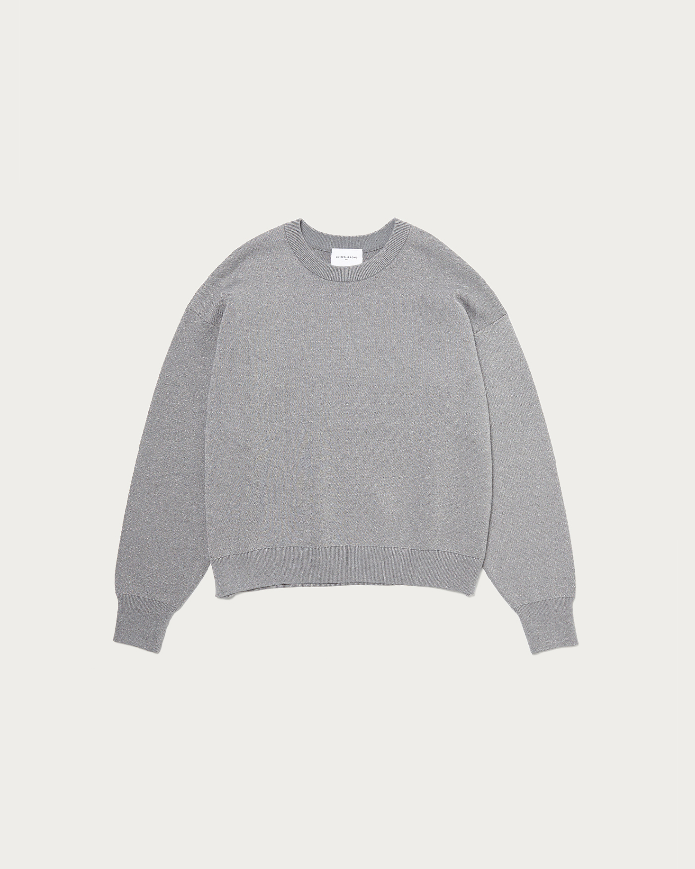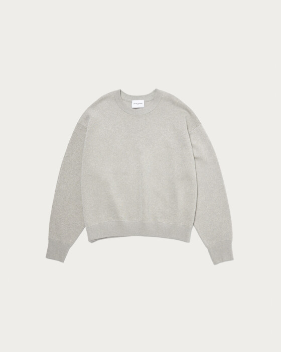 A stylish knit sweatshirt with a relaxed fit, made from a popular classic material at United Arrows. It features a fine, elegant lamé that adds a touch of sophistication without feeling stiff, combined with the smooth texture of cotton. This piece blends the casual feel of a sweatshirt with a subtle lamé for an elegant impression.