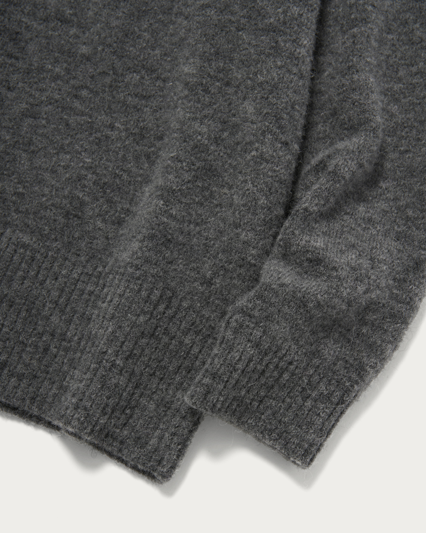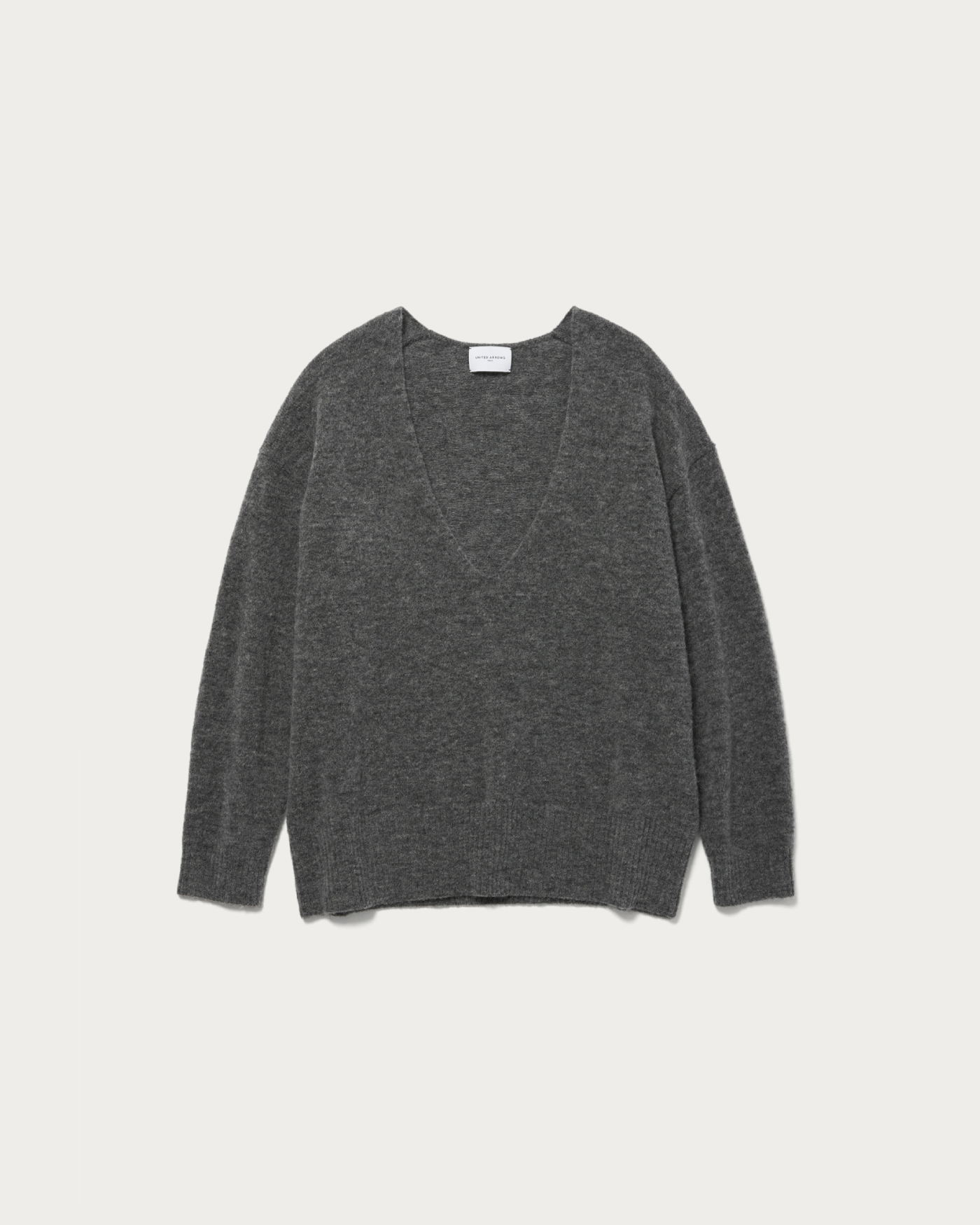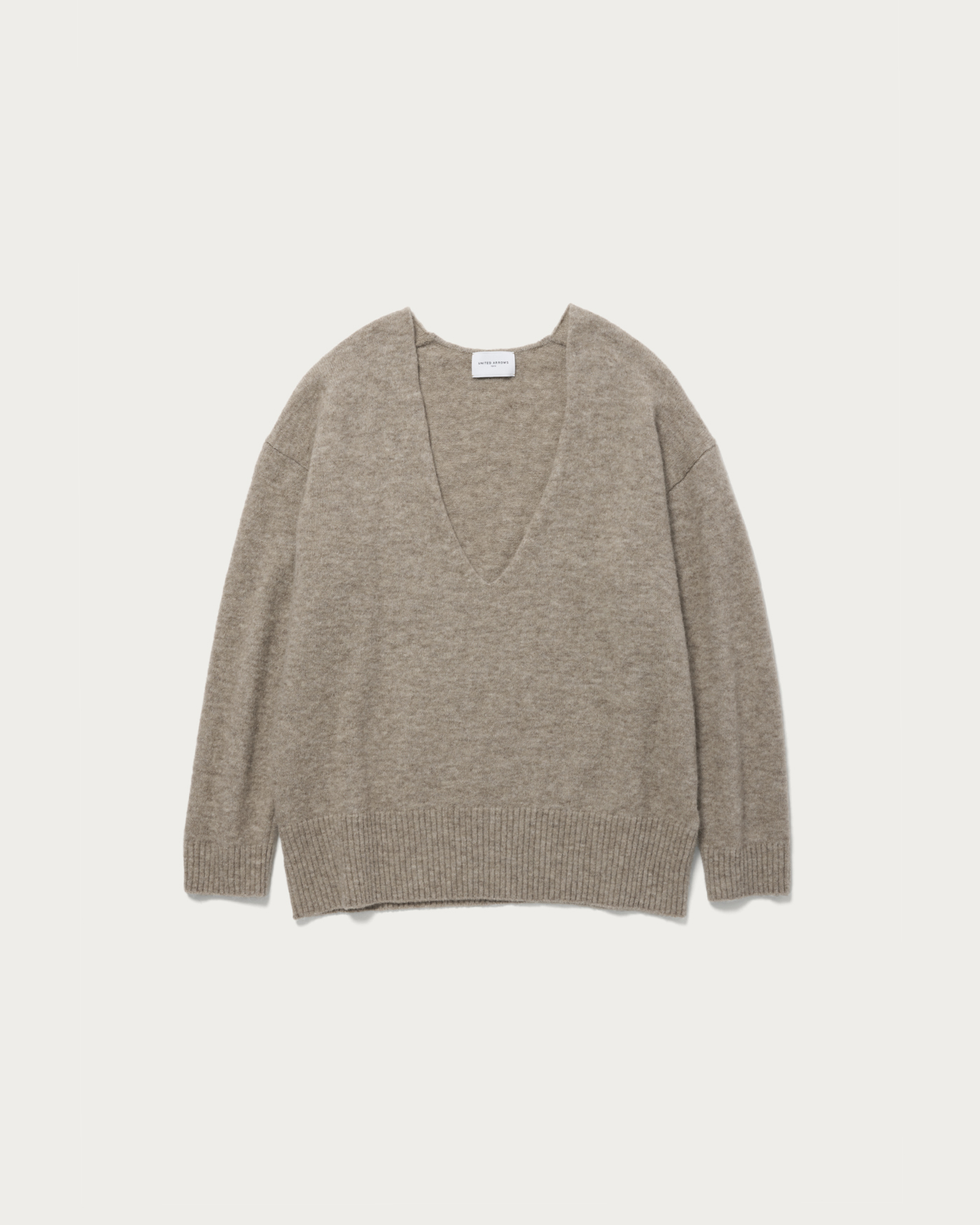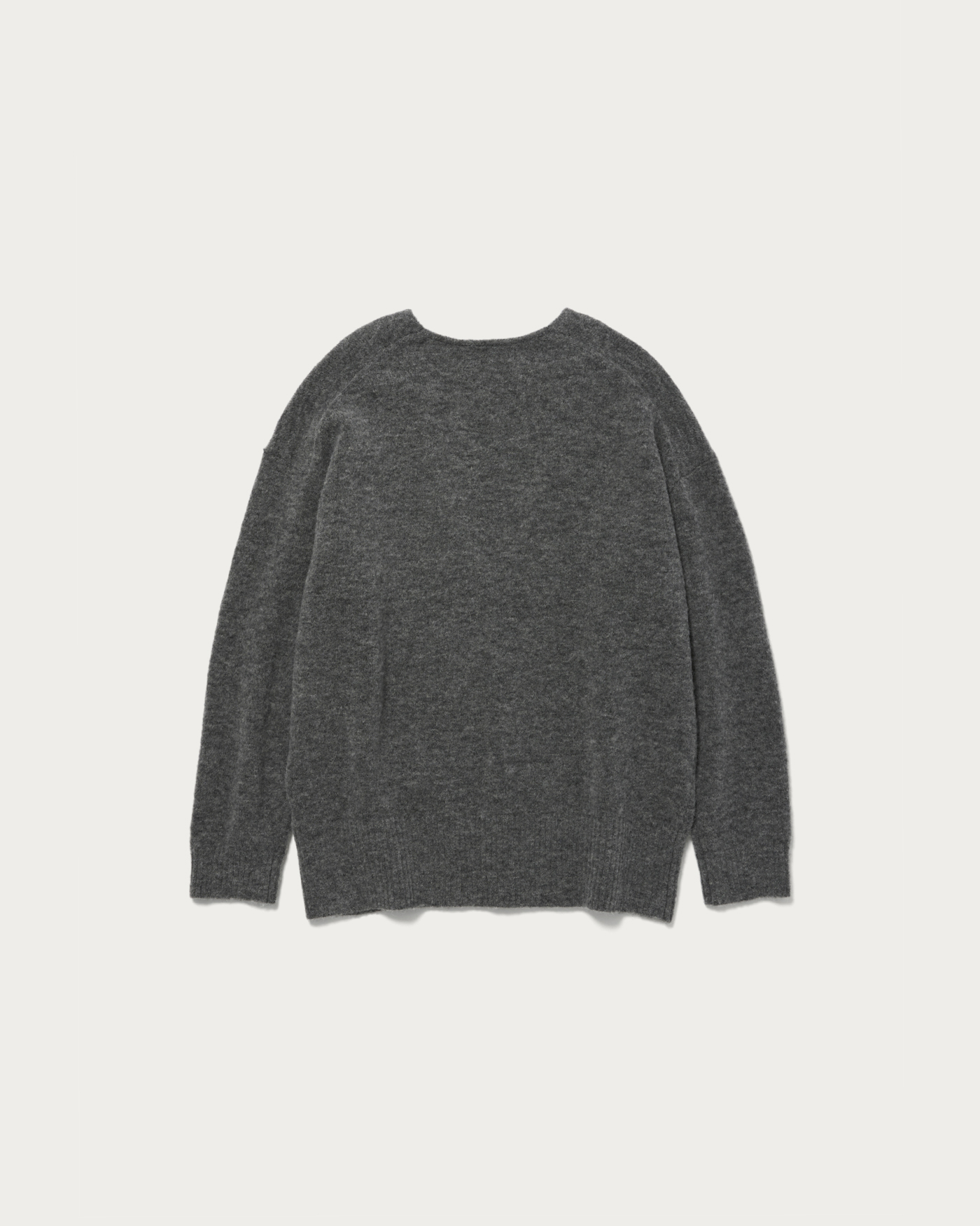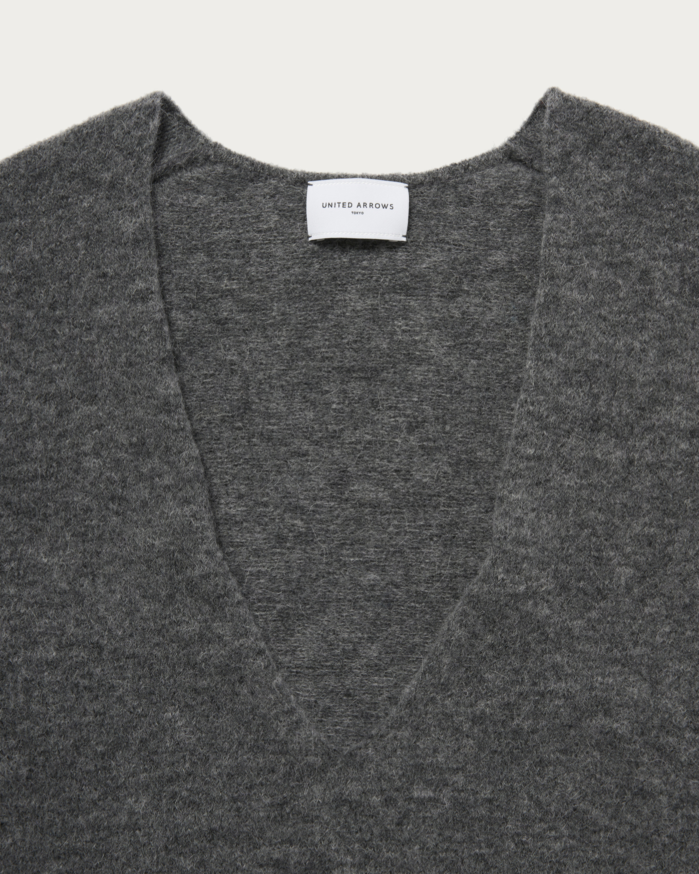 A knit with a deep V-neck design that makes pairing with inner layers enjoyable. The fun lies in how the impression changes depending on the innerwear and coordination you choose, while its soft, warm, yet lightweight texture adds to its appeal. It's a perfect piece for winter's signature layered style.