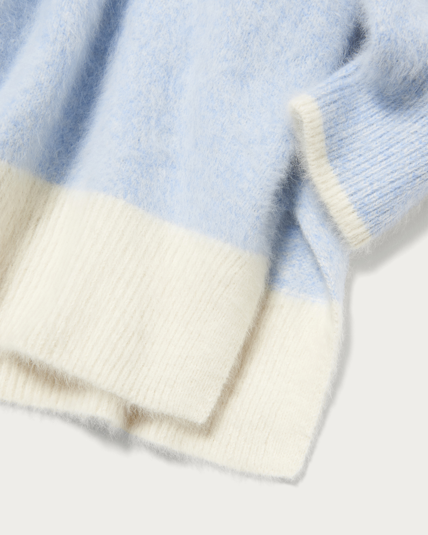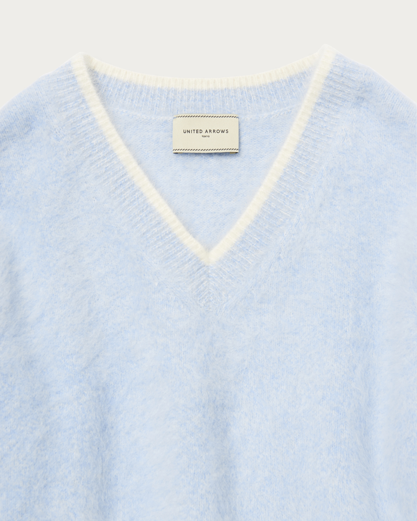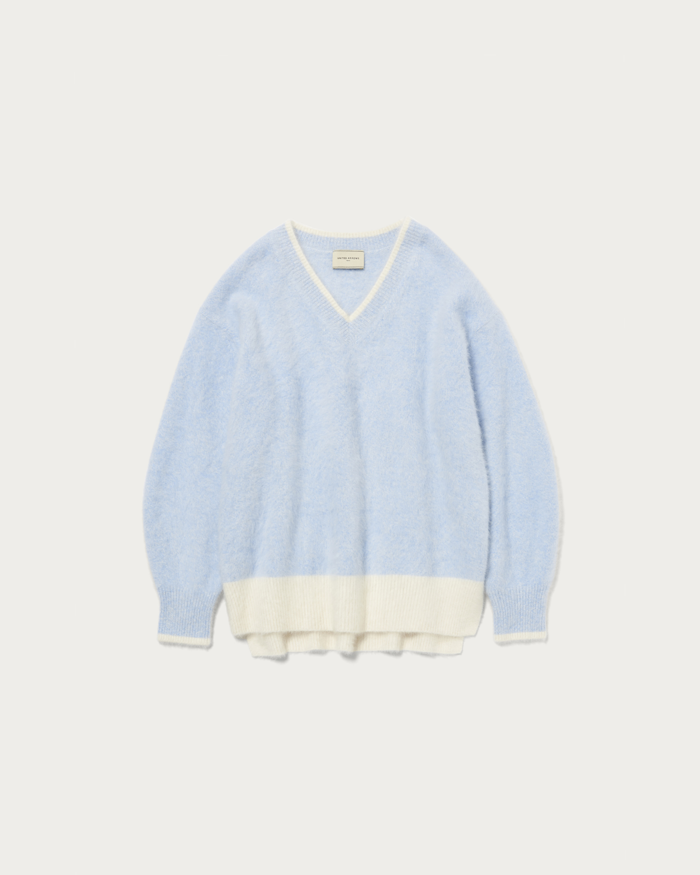 The Fox Cashmere series, which has been highly praised every season, features a V-neck knit that beautifully accentuates the décolletage. This piece stands out on its own, offering a light, soft, and warm feel. Its luxurious, fluffy texture boasts a rich sheen and luster, making it incredibly appealing. The easy-to-wear box silhouette, rounded sleeves, and side slits add a stylish touch when worn. With a perfect balance of relaxed elegance, this piece is a refined addition to your daily wardrobe.
