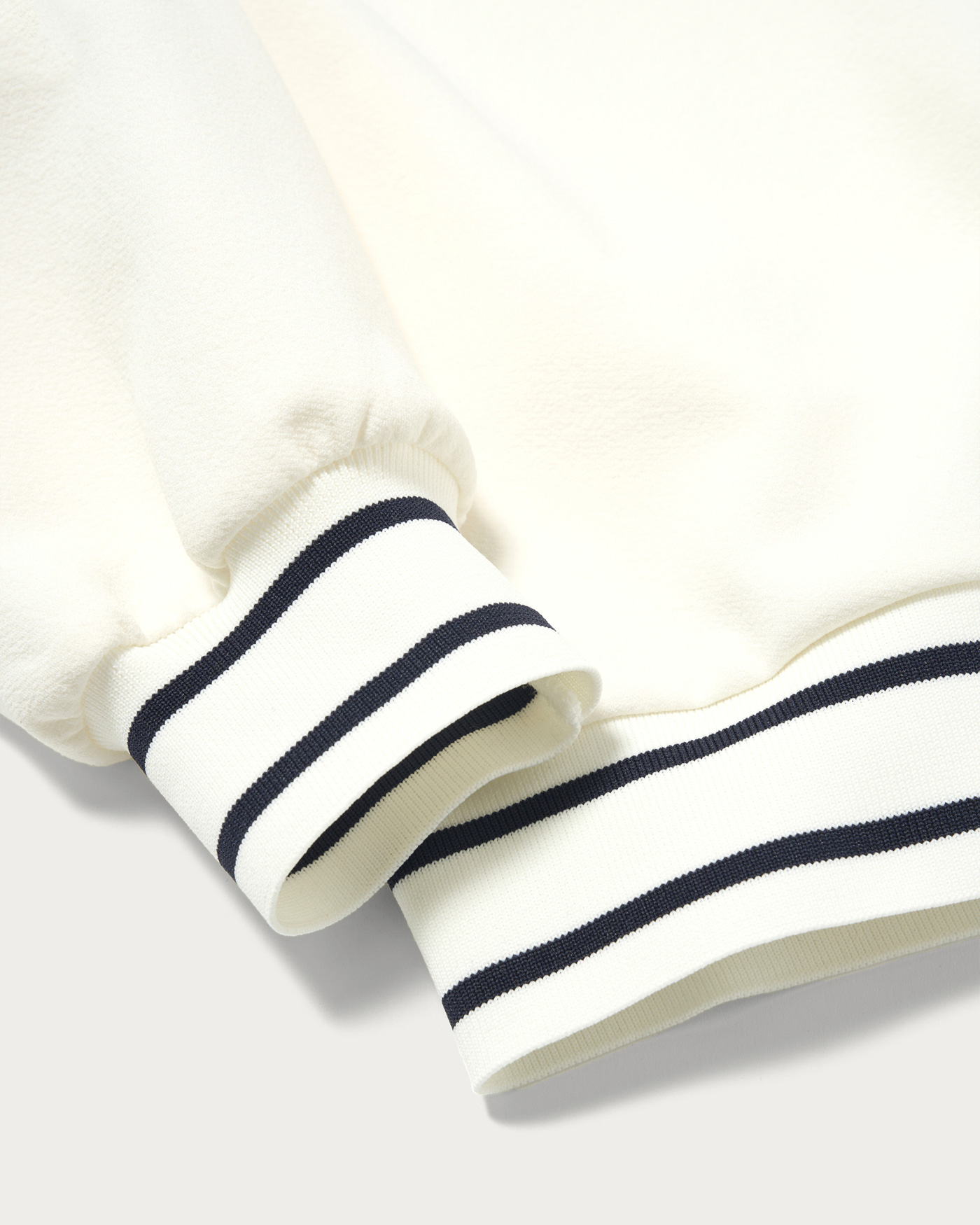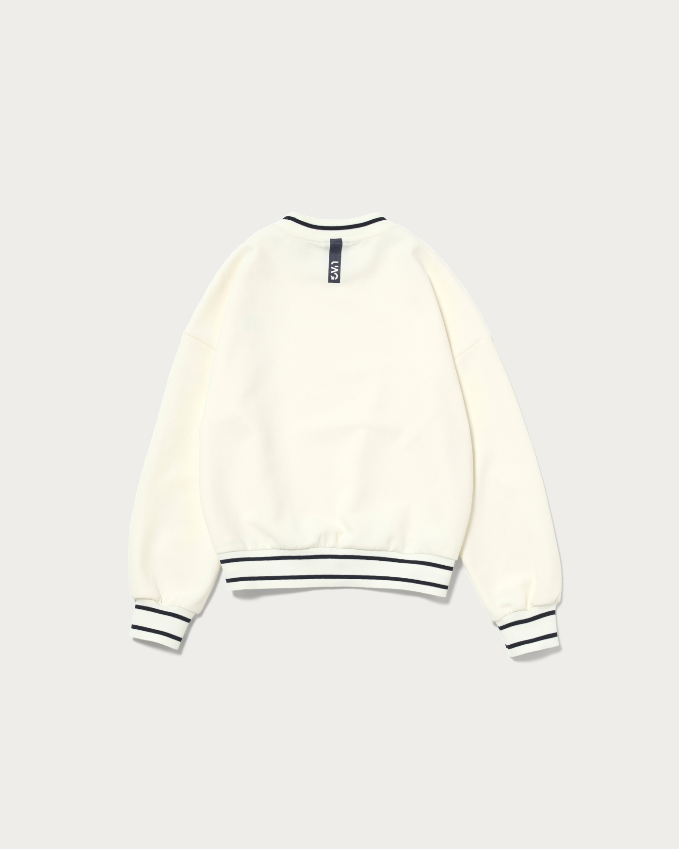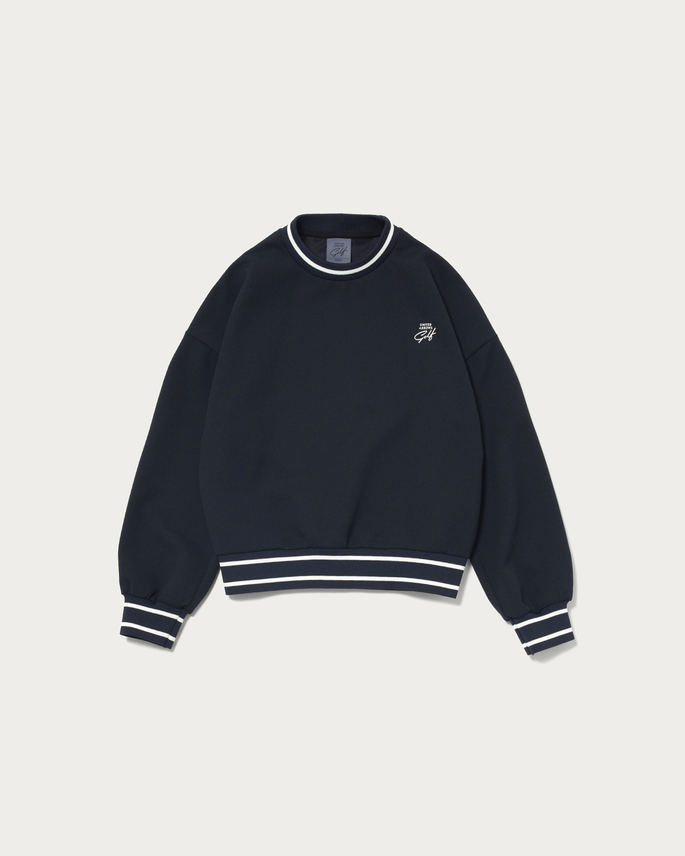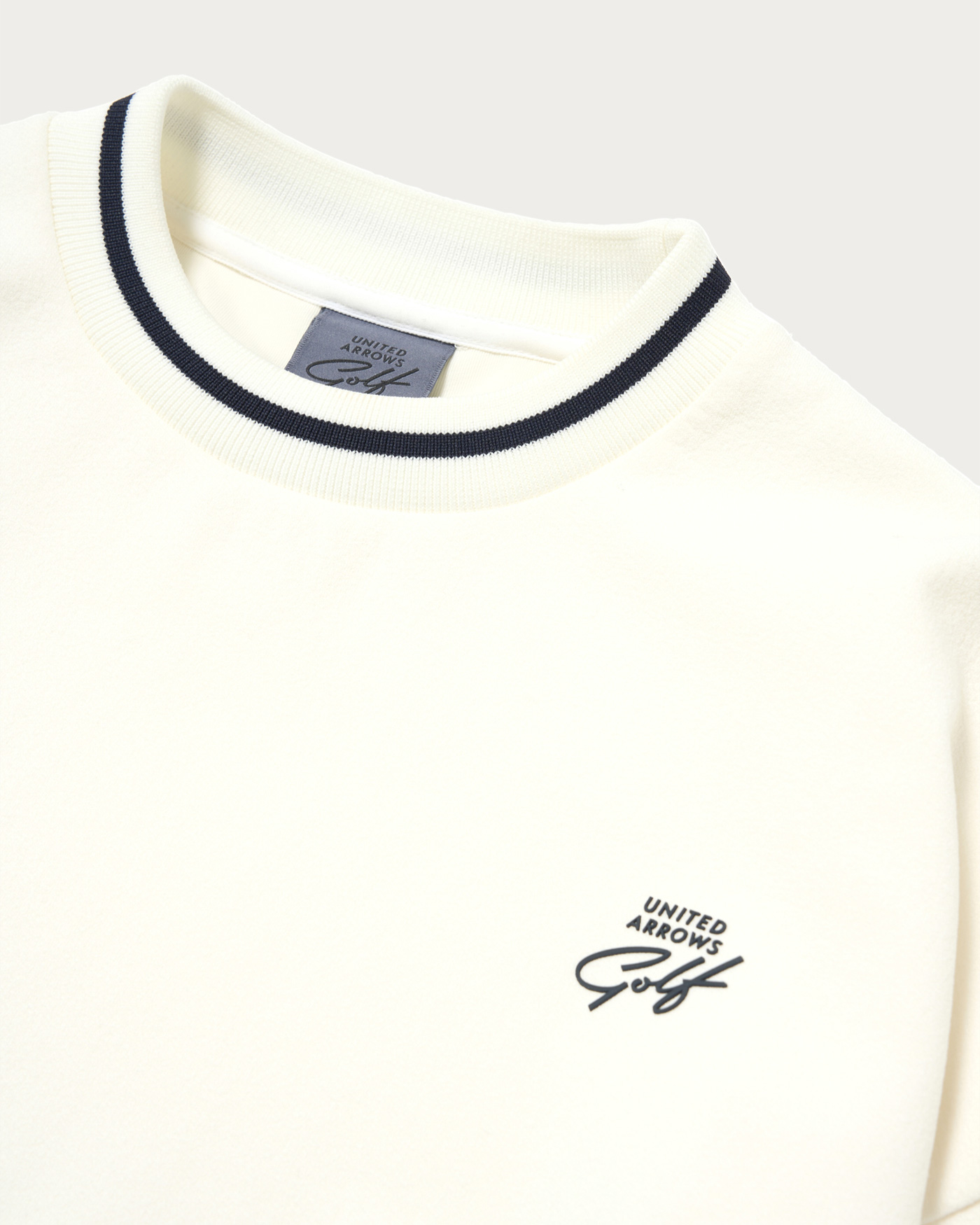 Short-length crew neck pullover. Featuring lines on the neck and sleeves, it looks stylish even when worn on its own. With a moderate thickness, it's an item that can be worn from early fall to winter.