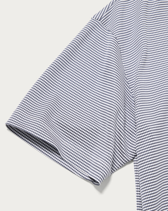 The Mijin BORDER PL Shirt. This item features fine-striped borders that add style even when worn alone, making it a great addition to summer outfits that tend to become monotonous.