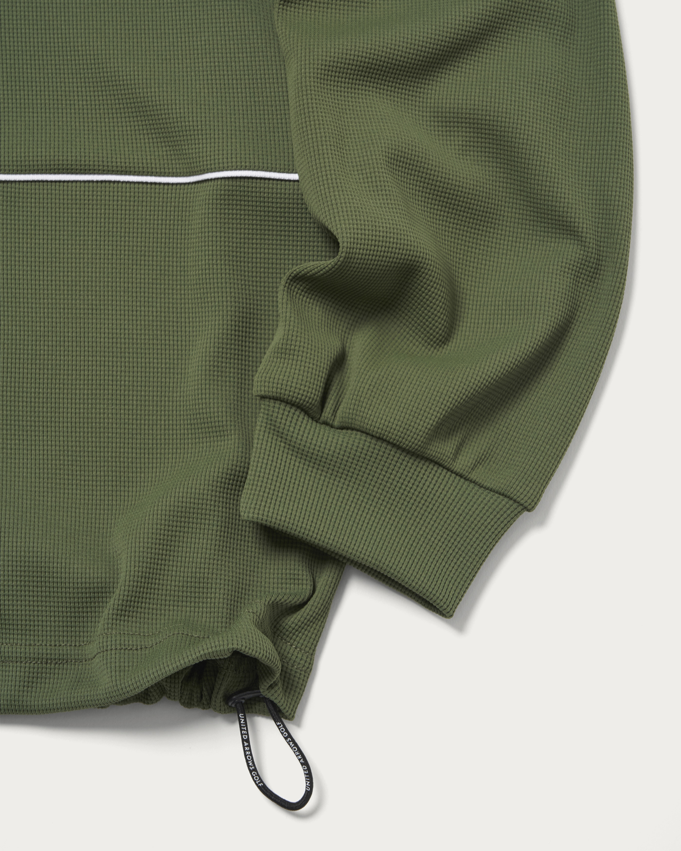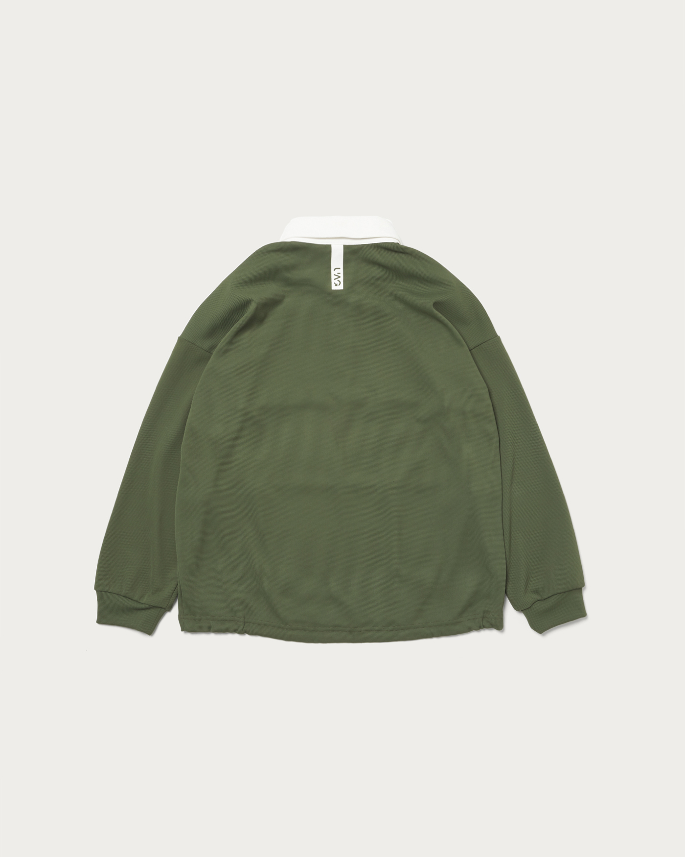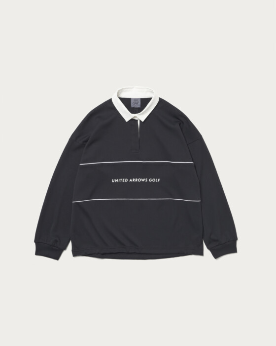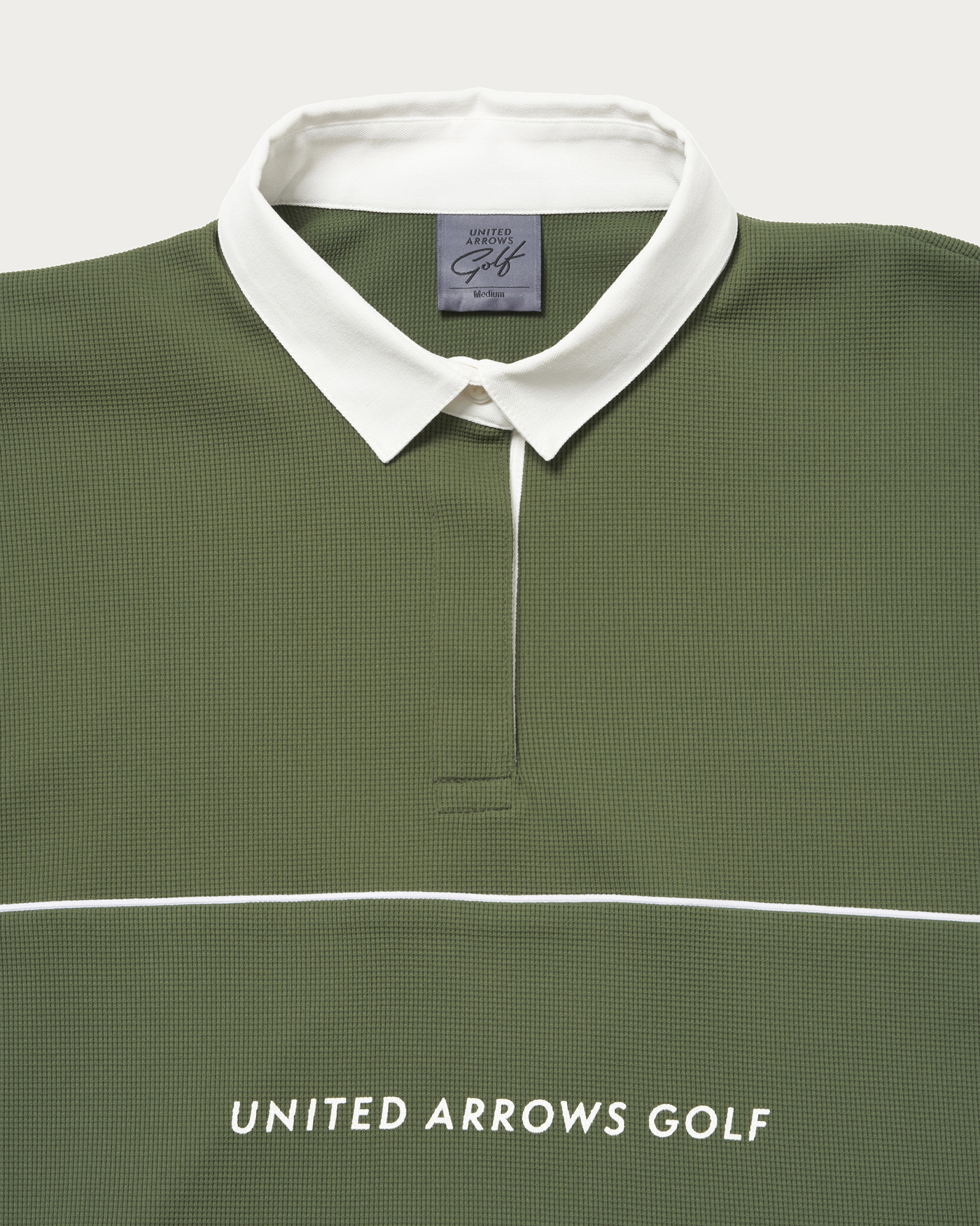 Waffle-textured dry-touch rugby shirt. Designed to be worn on its own, it features only a chest panel and logo for decoration. Can be worn alone in early autumn and layered as an inner piece in winter.