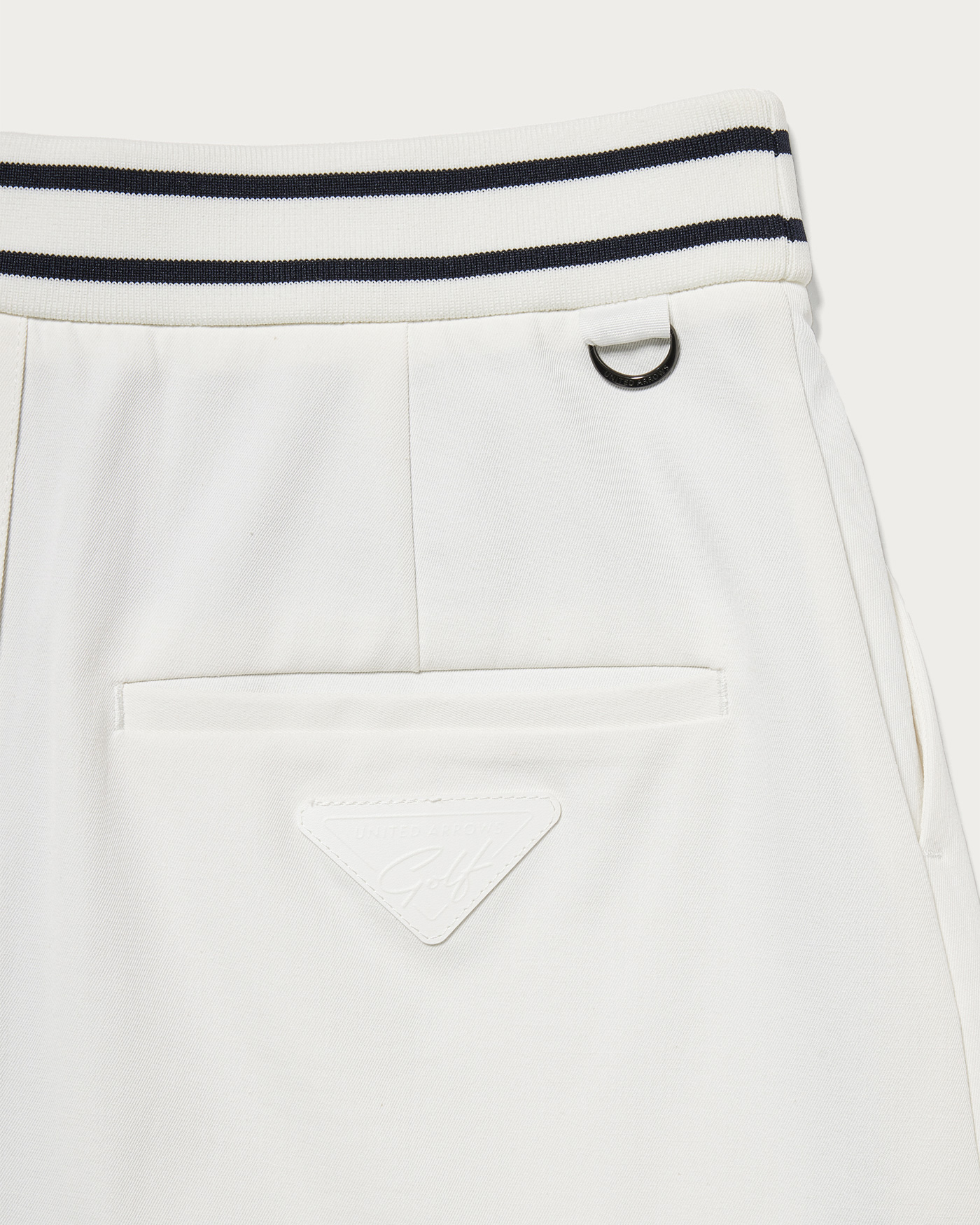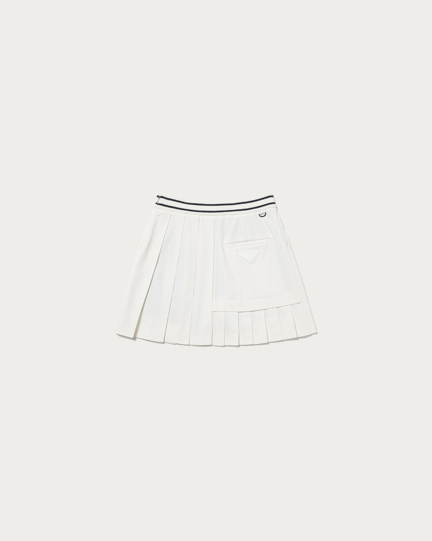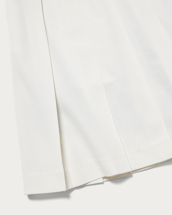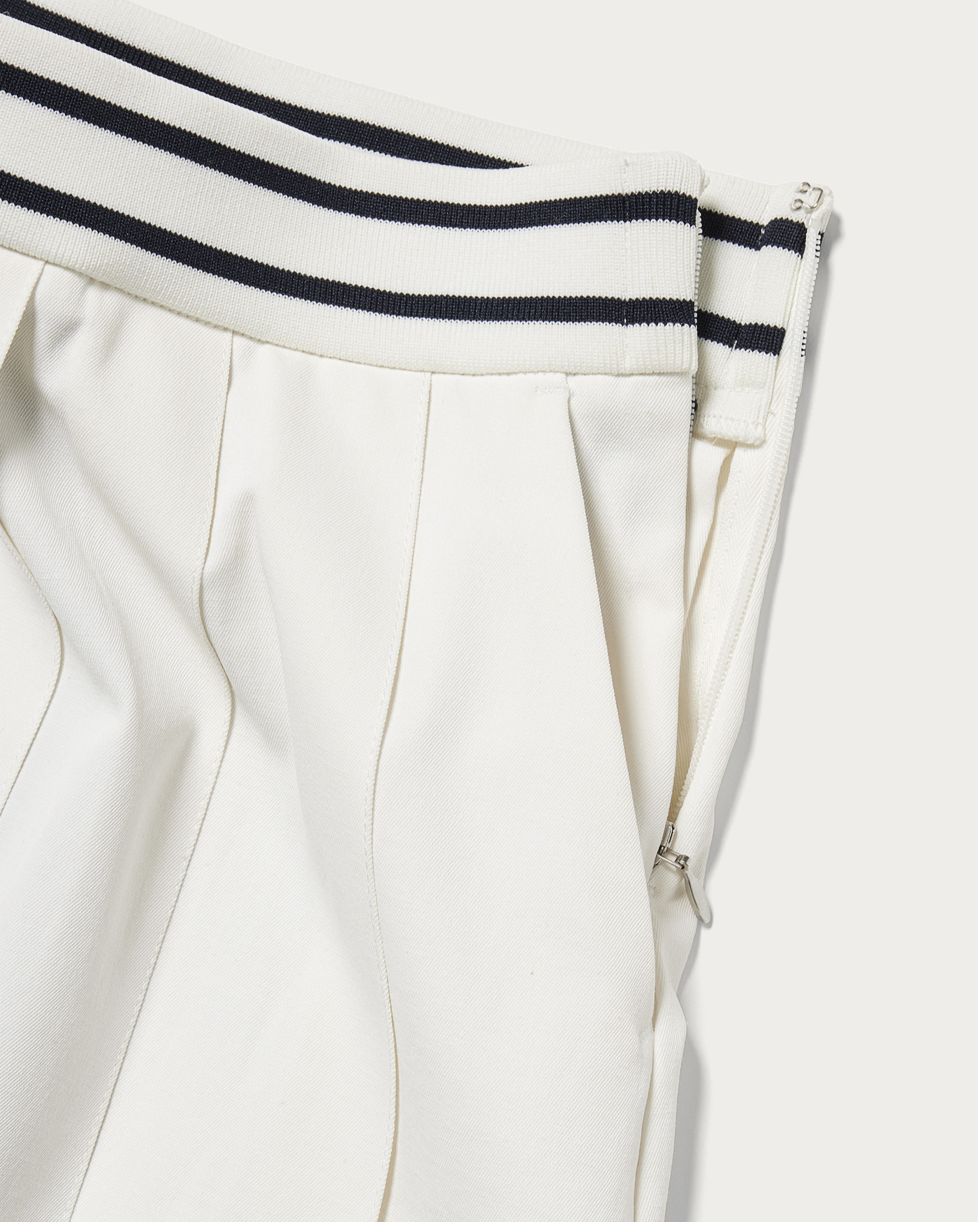 Pleated skirt made from high-performance twill fabric that excels in durability and water repellency. The integrated inner shorts provide both ease of movement and a sense of security. The ribbed waistband features a line design, adding a sporty accent that evokes the essence of club sports. The back style has an asymmetrical cut for a modern impression, and a brand icon patch is subtly placed below the left pocket for a discreet accent.
