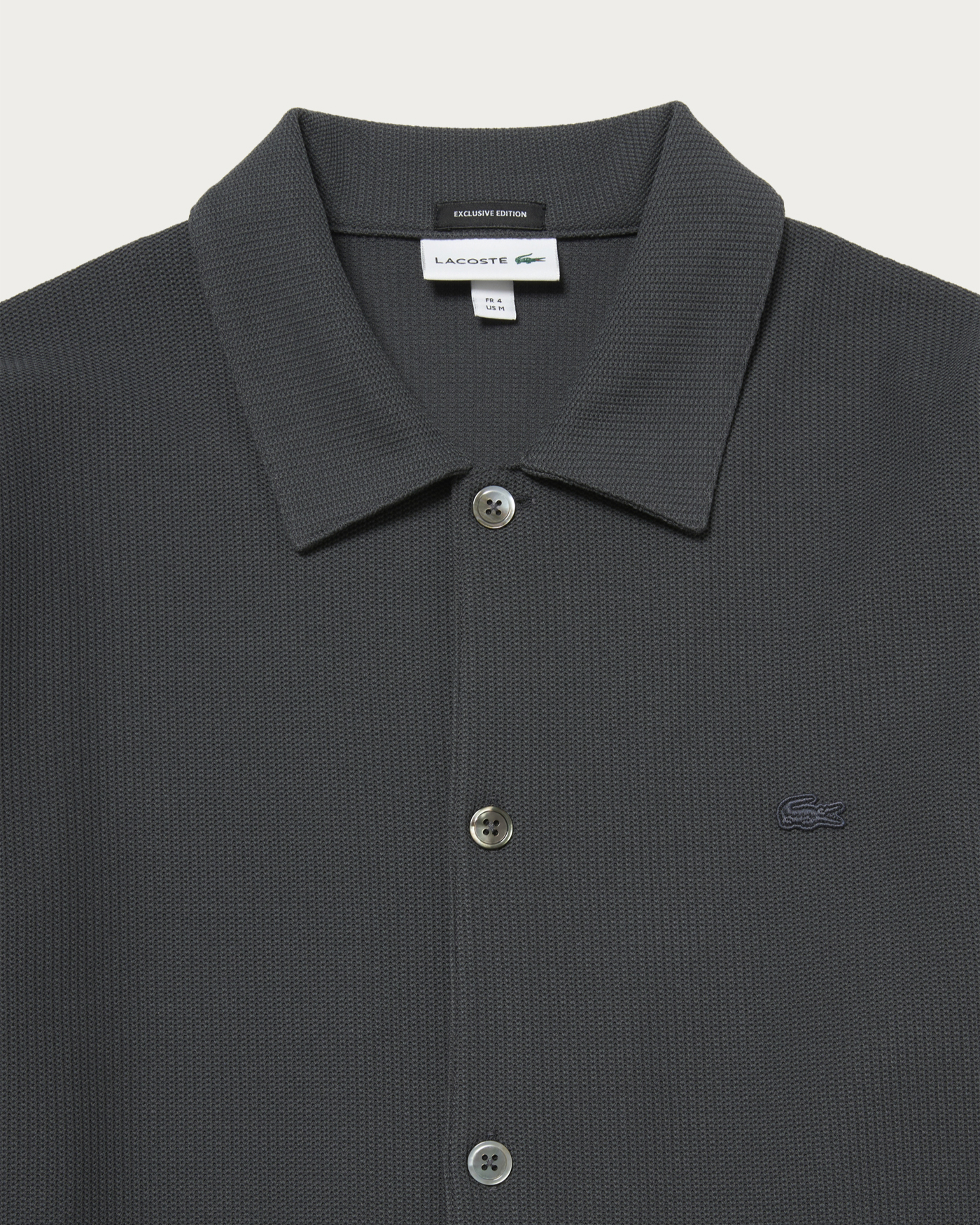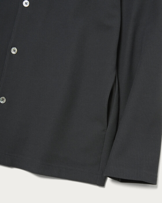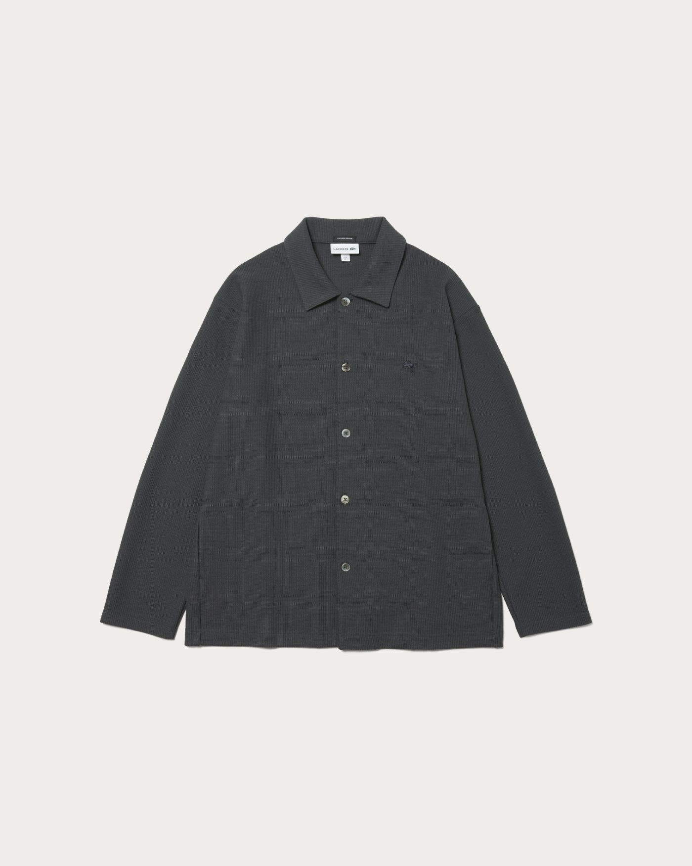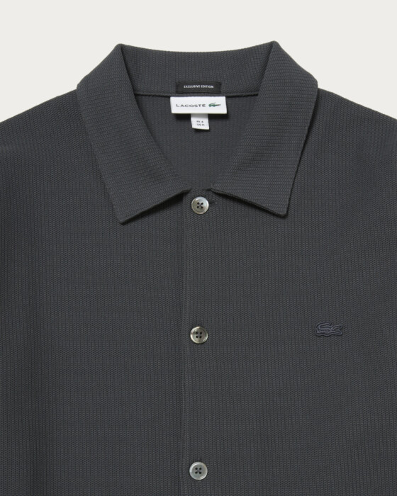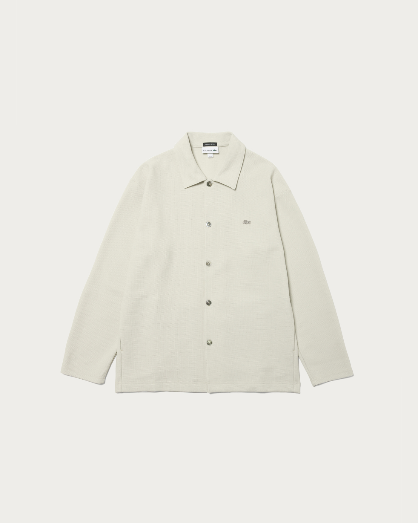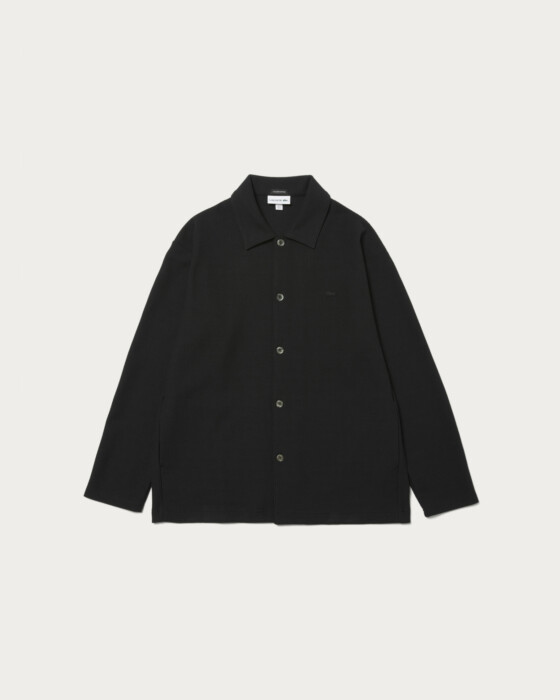 From the popular exclusive series with Lacoste, a new shirt jacket made from knit-like jersey material has arrived. Featuring an original pattern with a comfortable fit, the monotone body is basic and easy to wear. The subtle embroidered crocodile logo in the same color and convenient side pockets add to its appeal.